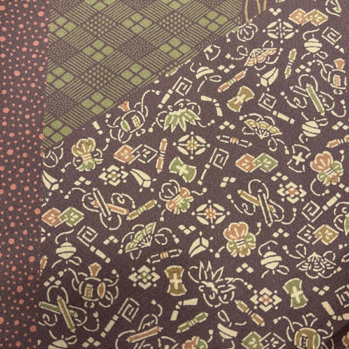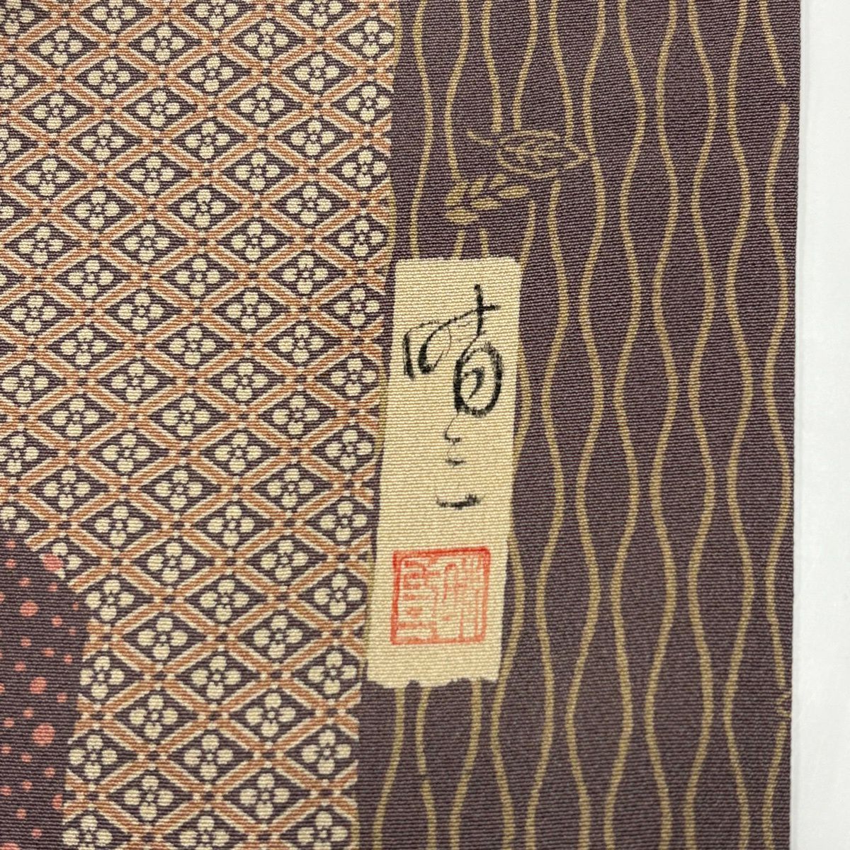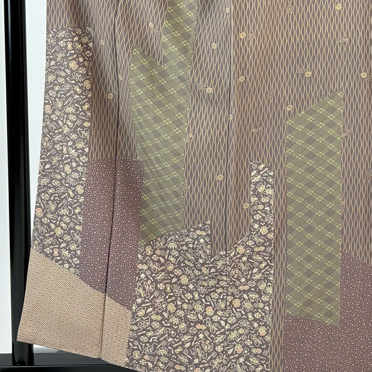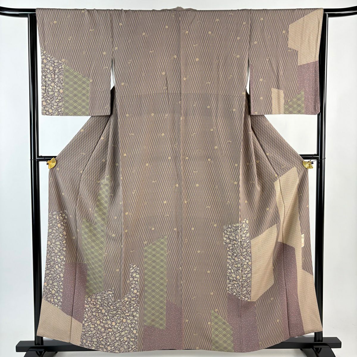 【最終値引き】 70%OFF 小紋 身丈162cm 裄丈64.5cm M 袷 菱 市松 縮緬 灰紫 正絹 秀品 K70