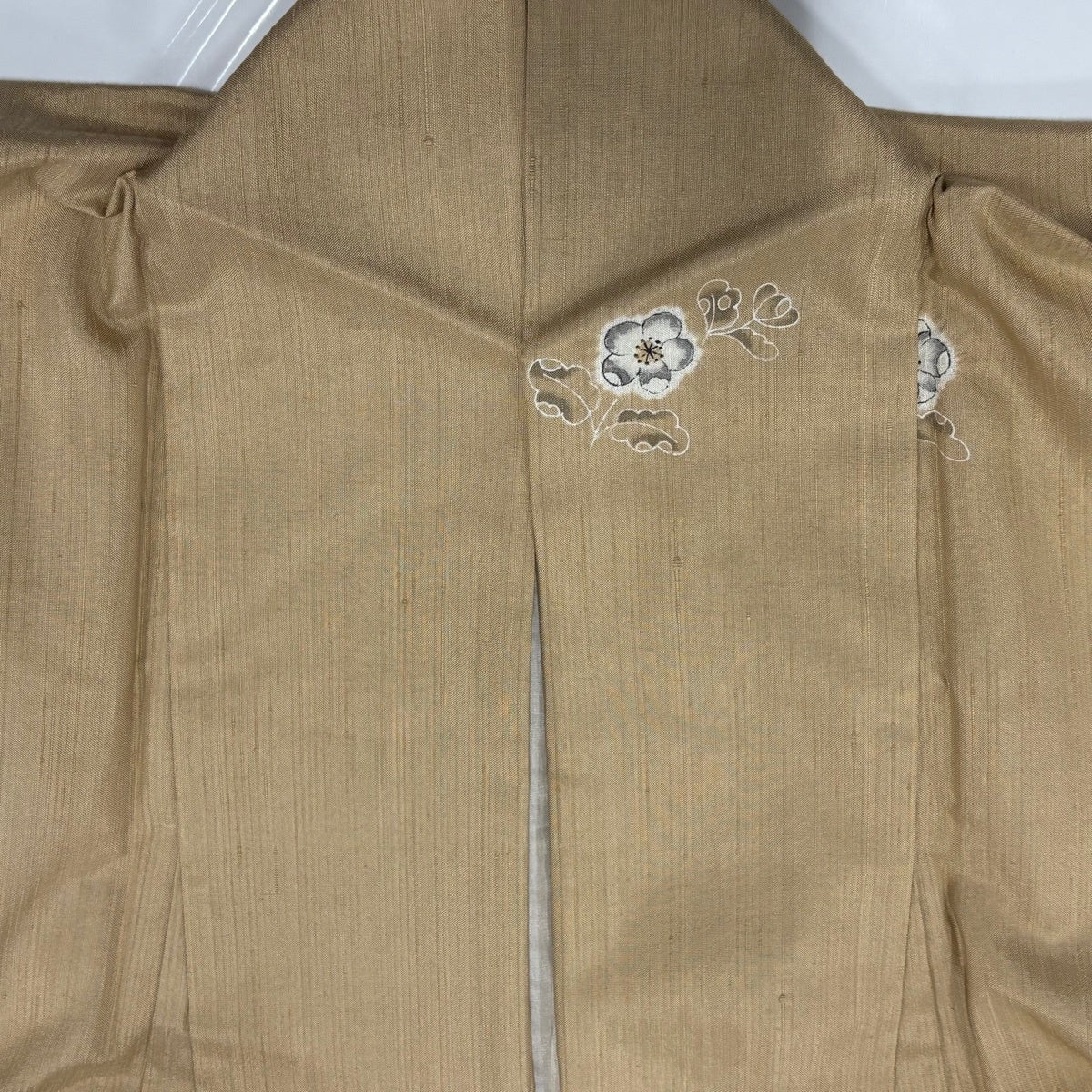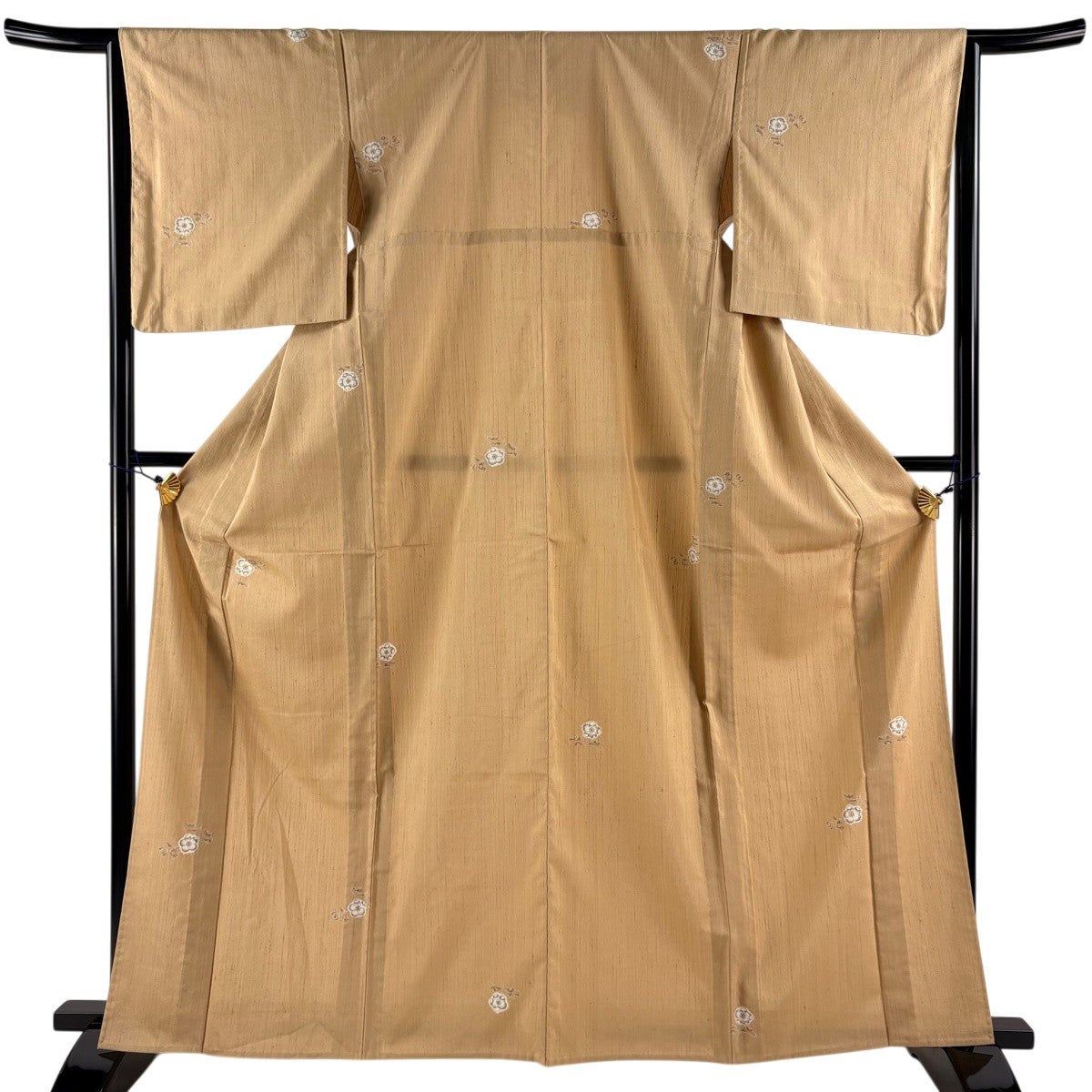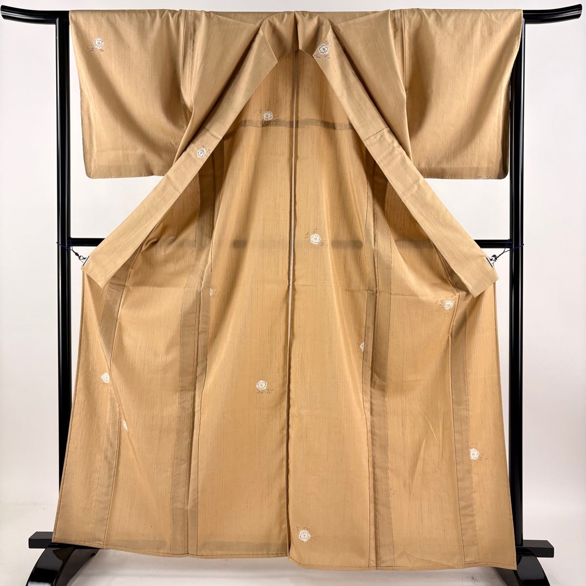 30%OFF 【美品】 小紋 身丈163.5cm 裄丈64.5cm M 単衣 紬地 草花 薄茶色 正絹 秀品 K30