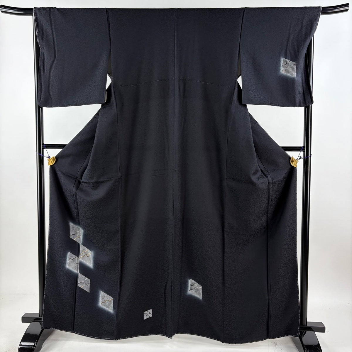 【美品】 付下げ 身丈165.5cm 裄丈67cm M 袷 袋帯セット 雪輪 疋田 金銀彩 金糸 墨色 正絹 秀品