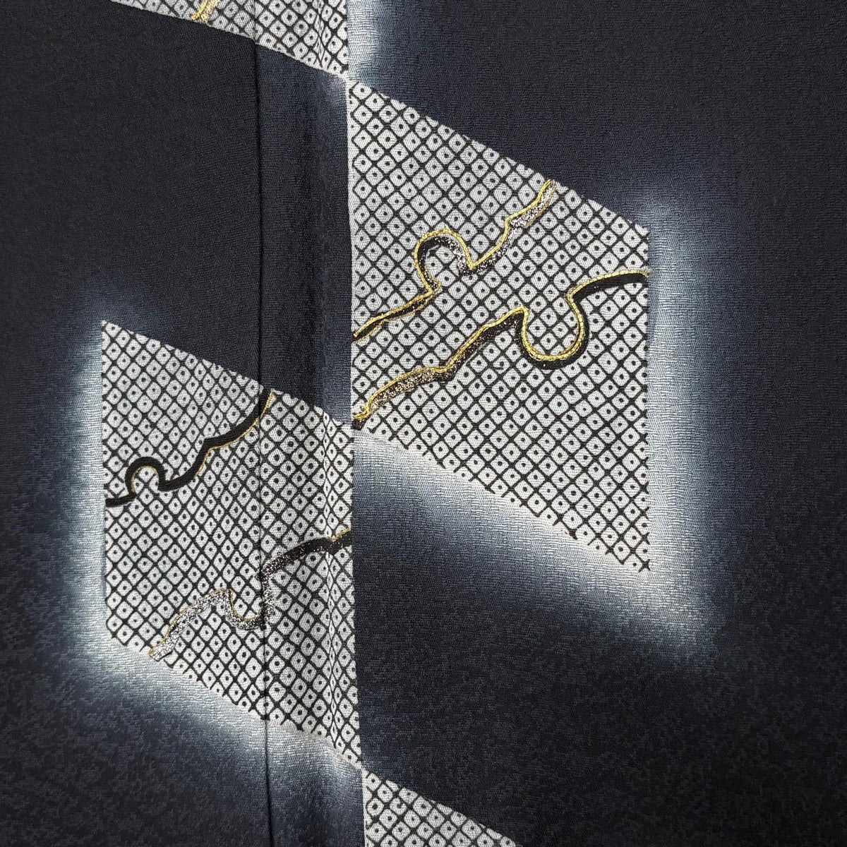 30%OFF 【美品】 訪問着 身丈166.5cm 裄丈66cm M 袷 紬地 幾何学 灰色 正絹 秀品 K30