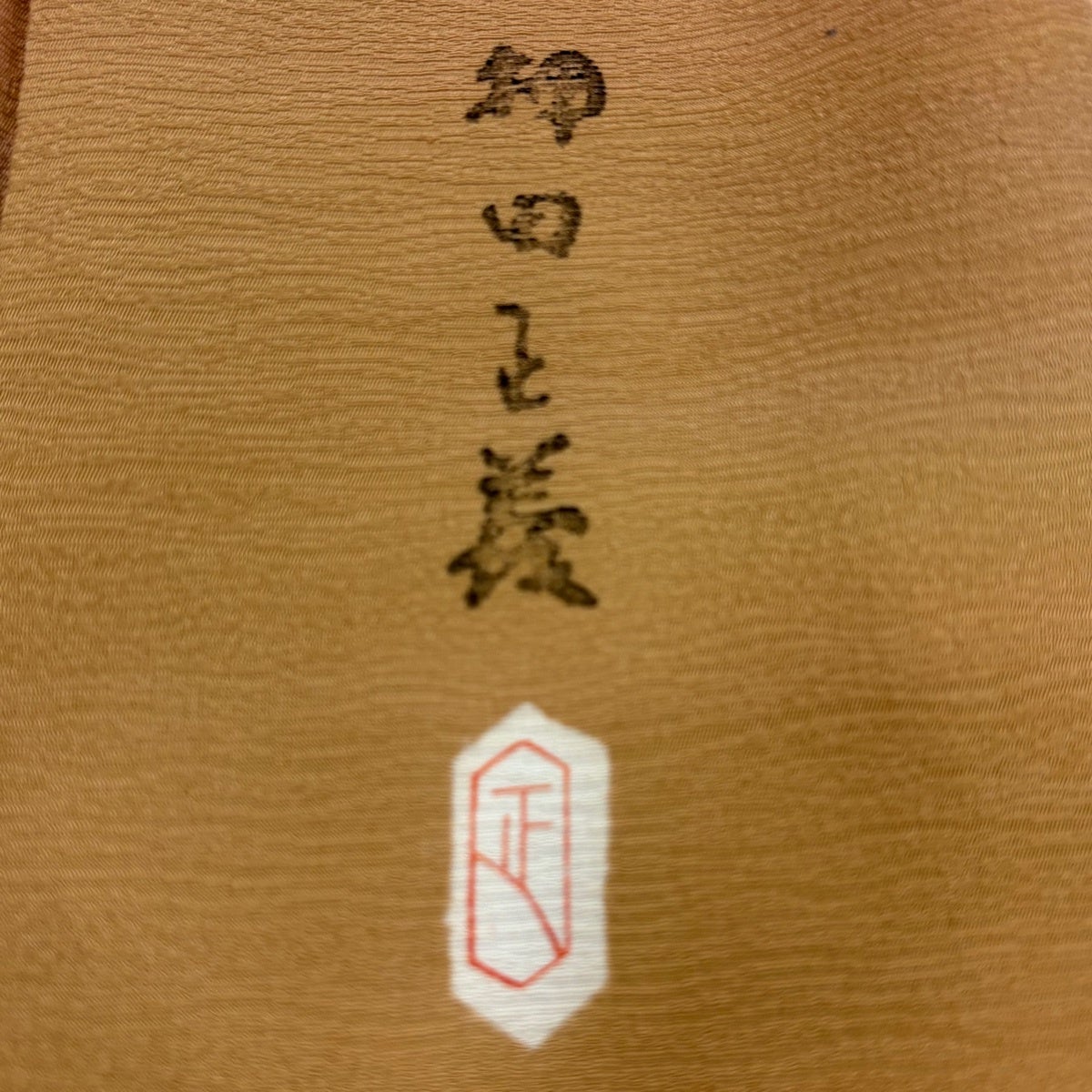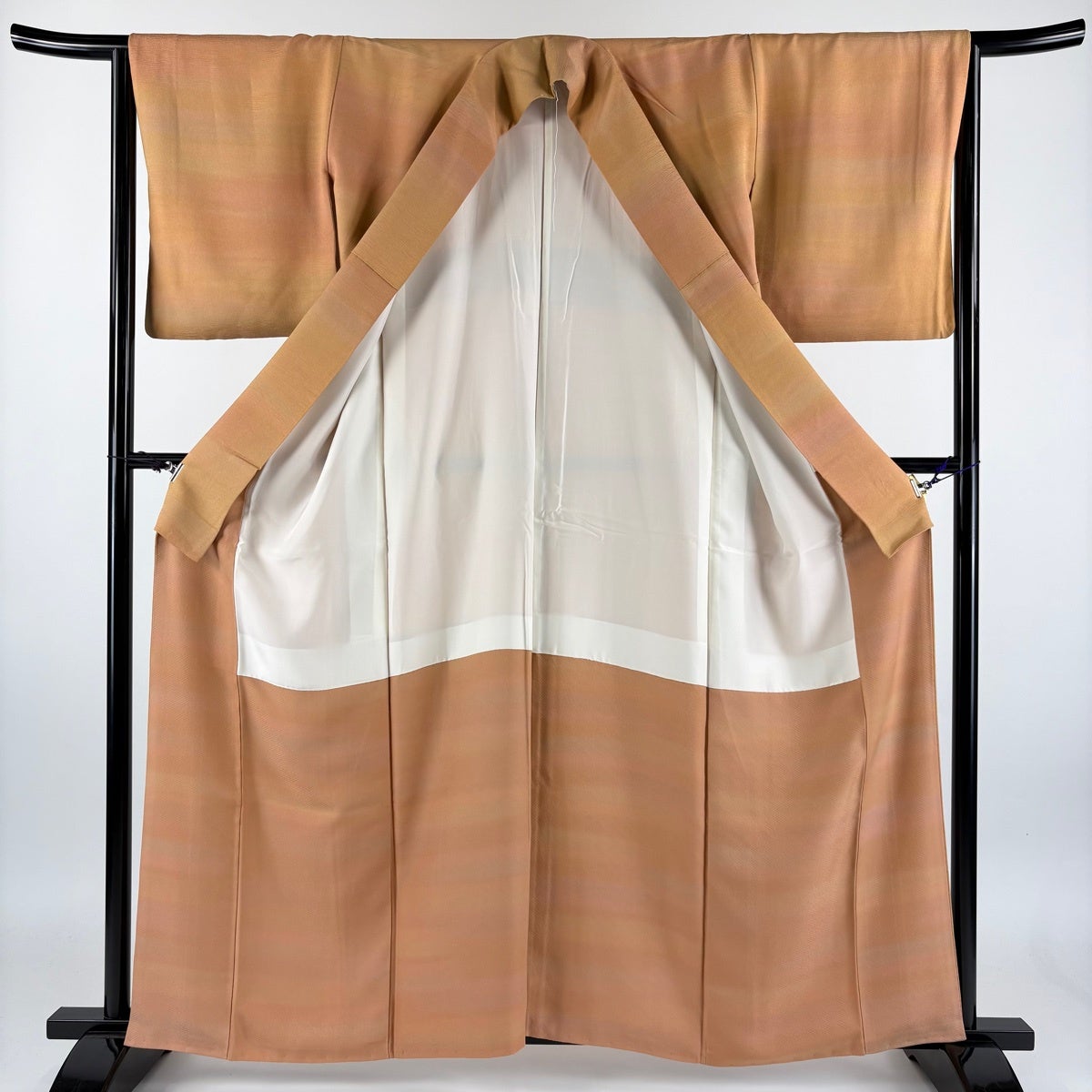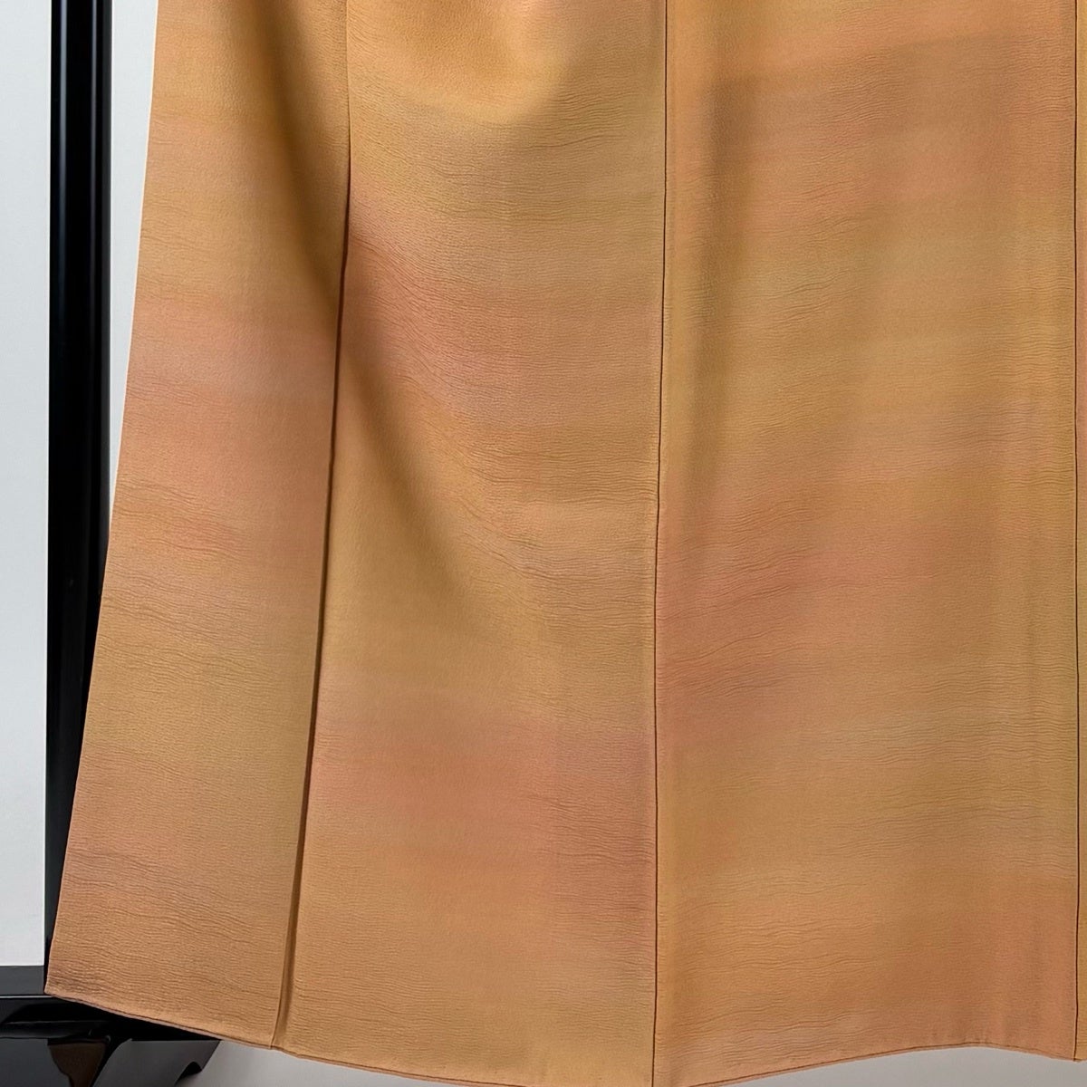 小紋 身丈160cm 裄丈65cm M 袷 押田正義 落款あり 霞 地紋 ぼかし オレンジ 正絹 秀品 一つ紋