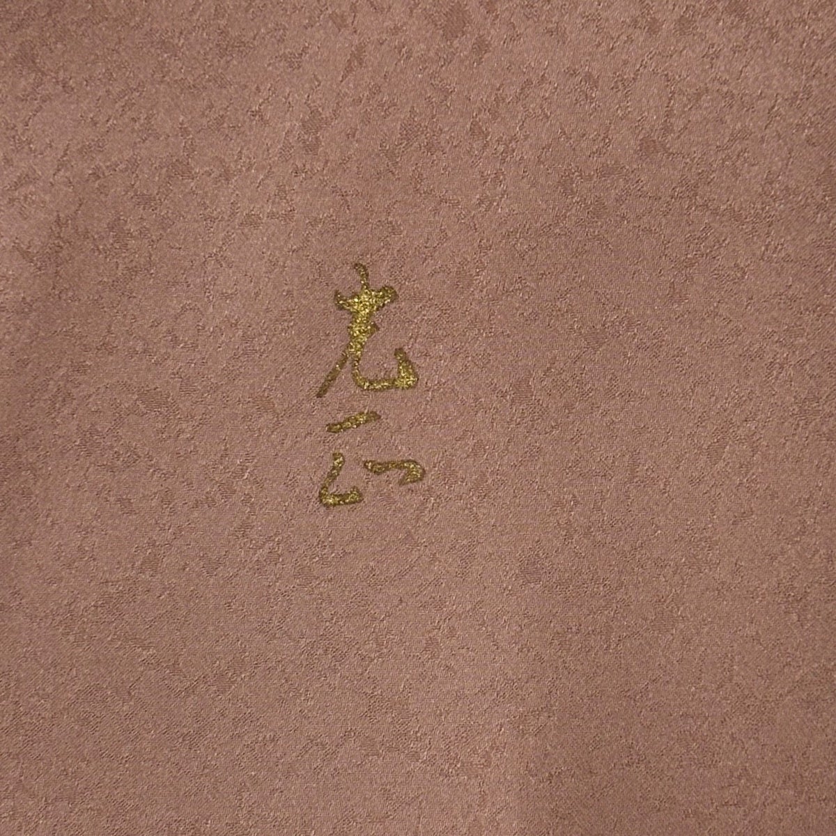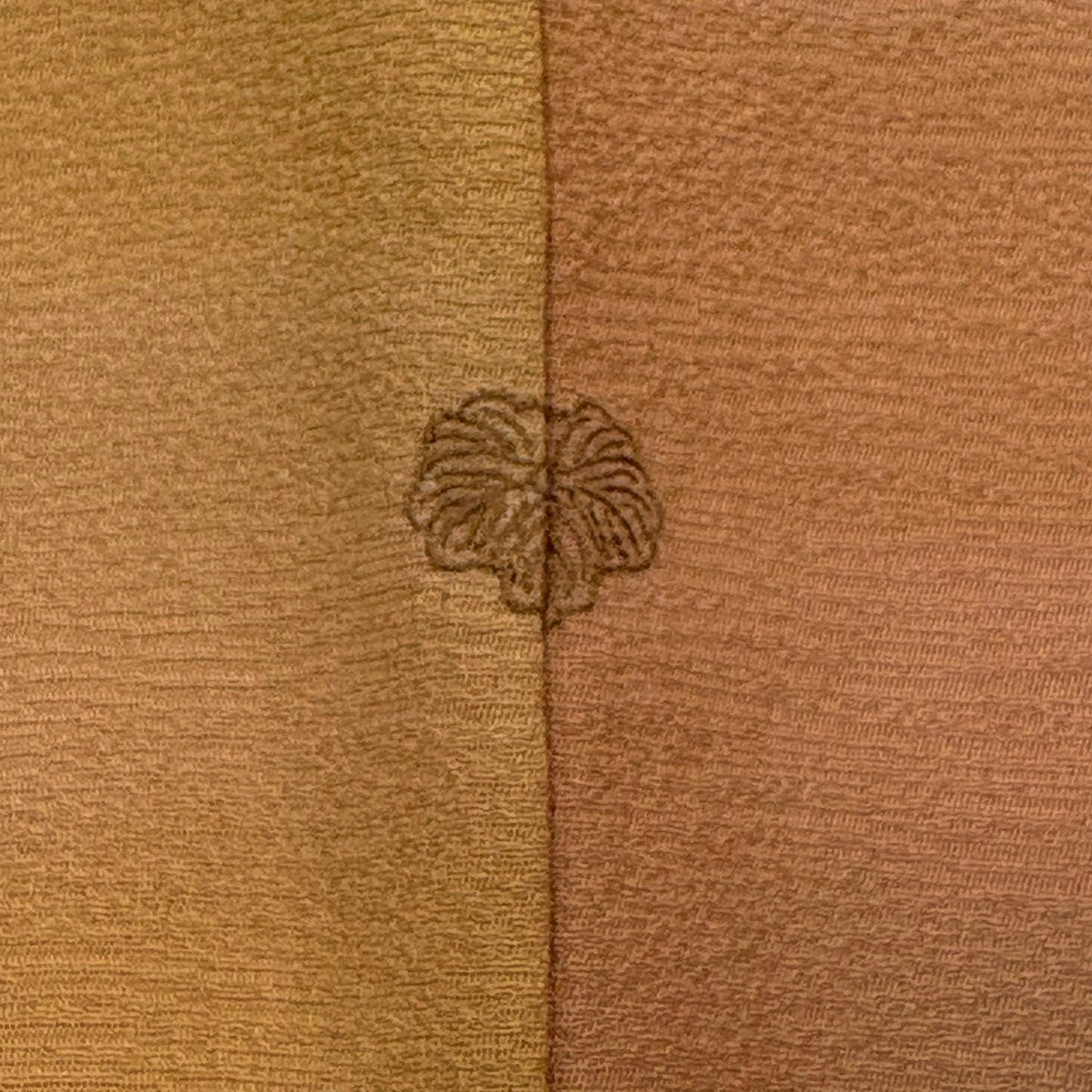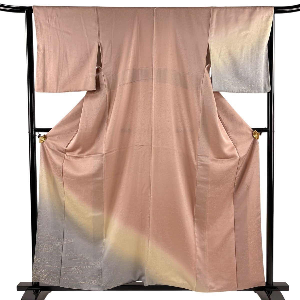 小紋 身丈160cm 裄丈65cm M 袷 押田正義 落款あり 霞 地紋 ぼかし オレンジ 正絹 秀品 一つ紋
