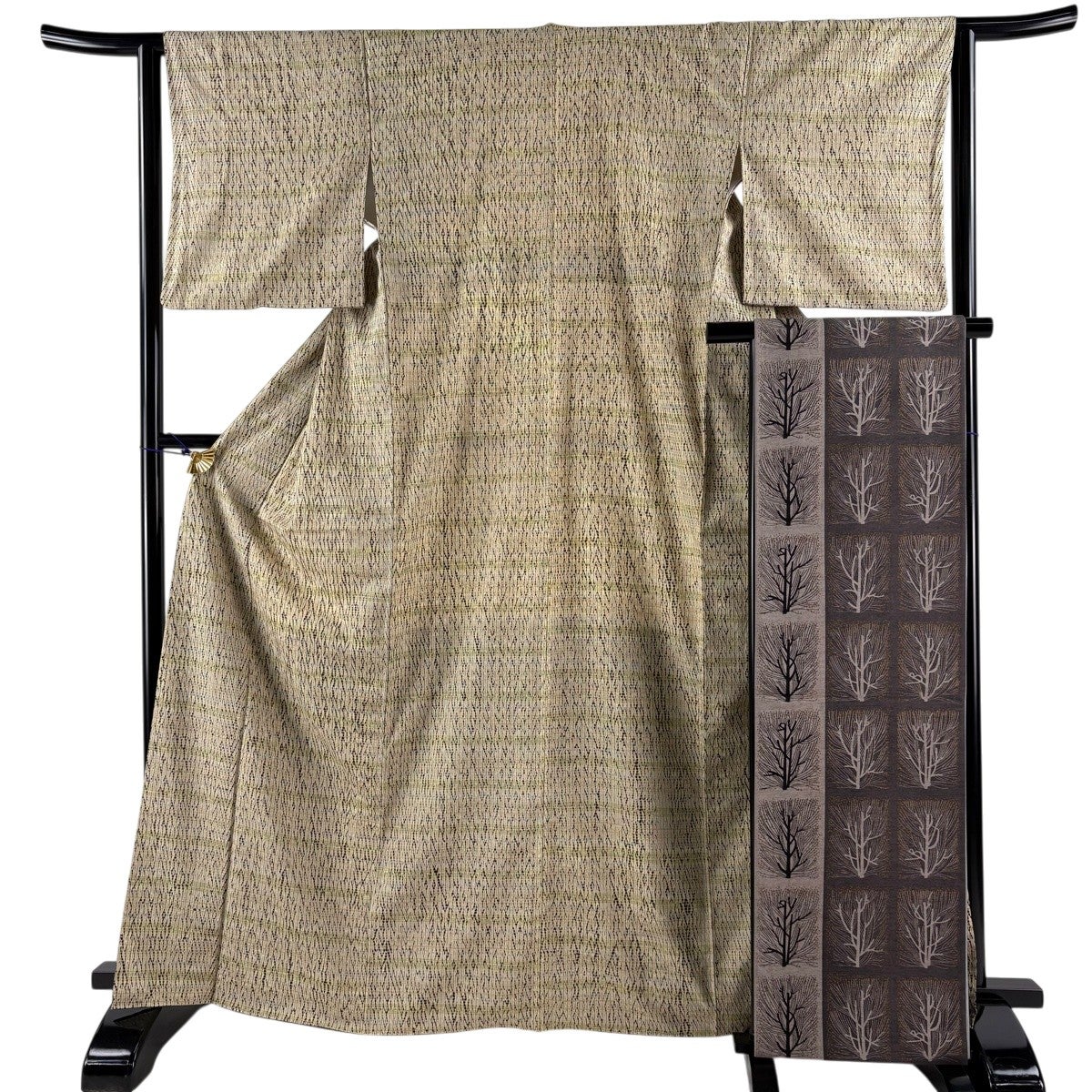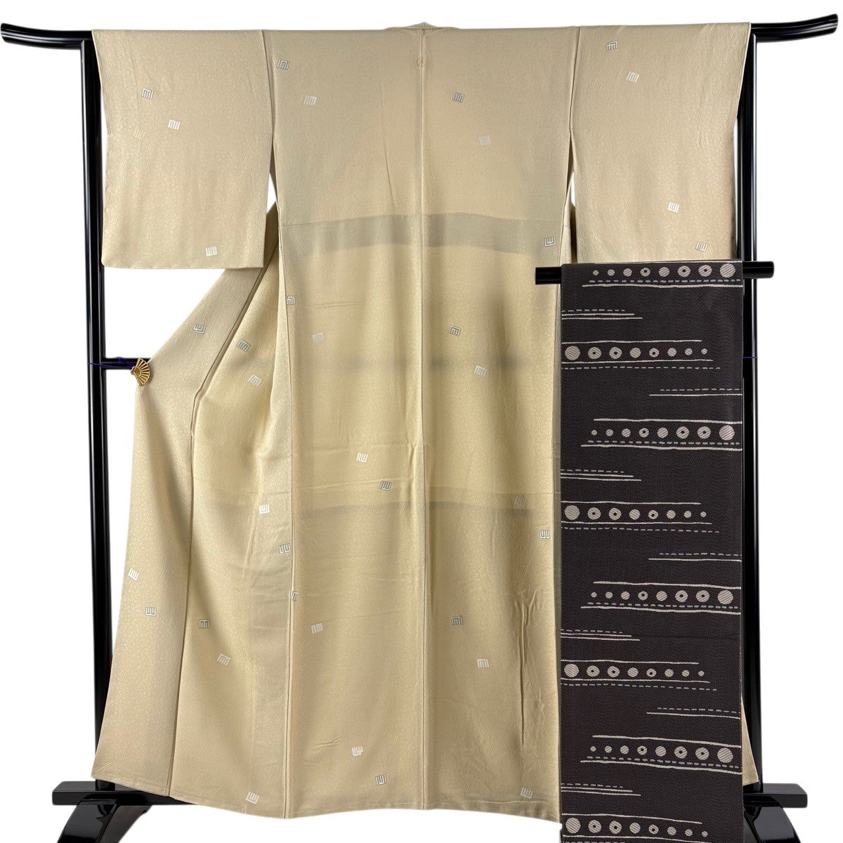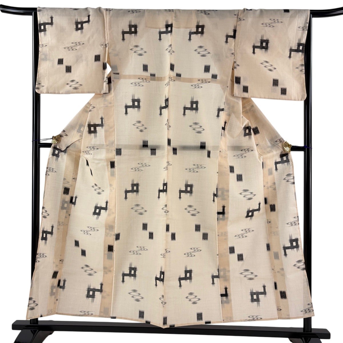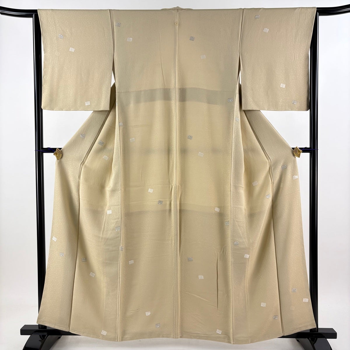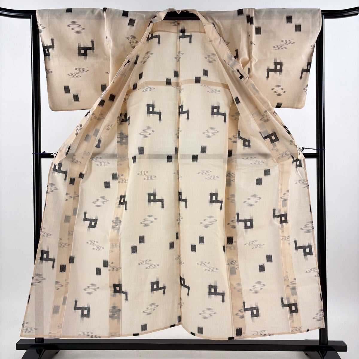 30%OFF 紬 身丈151cm 裄丈62.5cm S 薄物 夏紬 菱 幾何学 ベージュ 正絹 秀品 K30