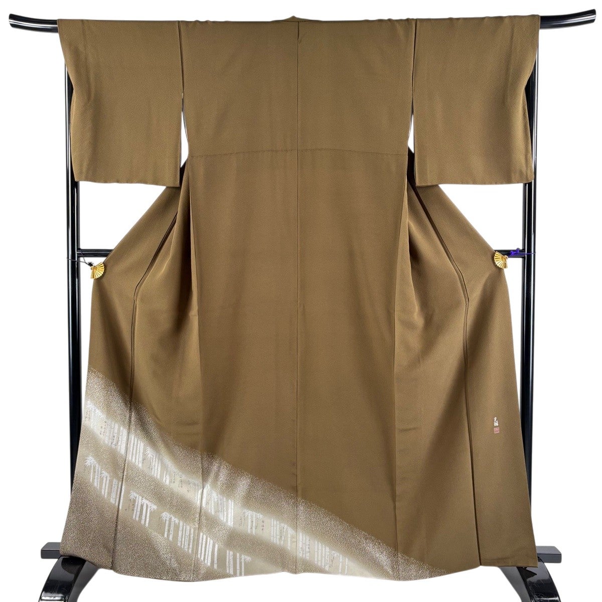 30%OFF 【美品】 訪問着 身丈155cm 裄丈62cm S 薄物 紗 草花 金糸 灰茶 正絹 秀品 K30