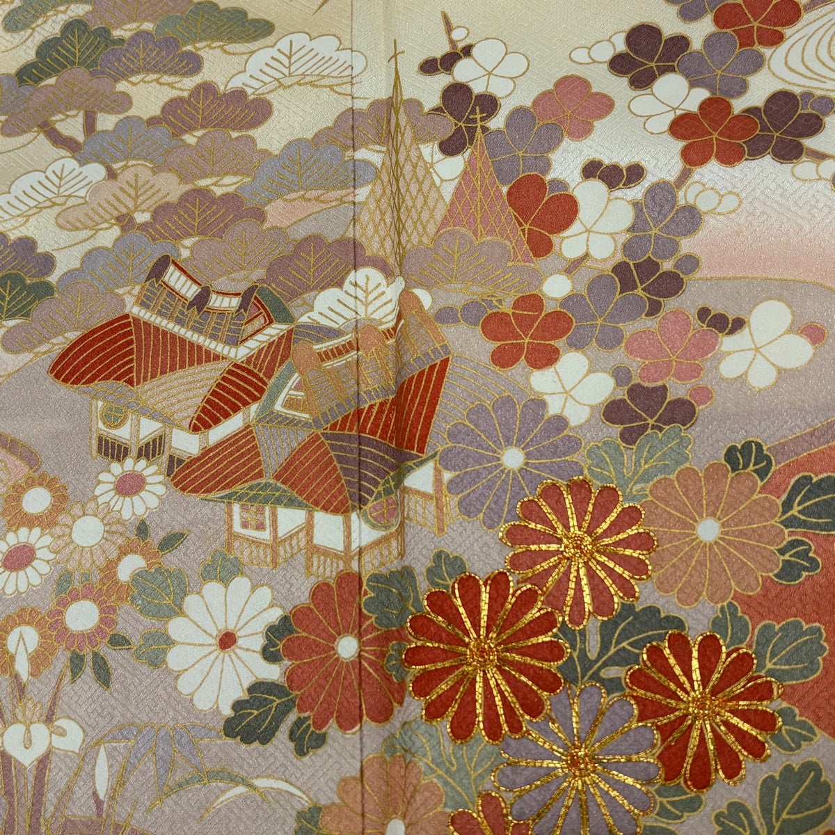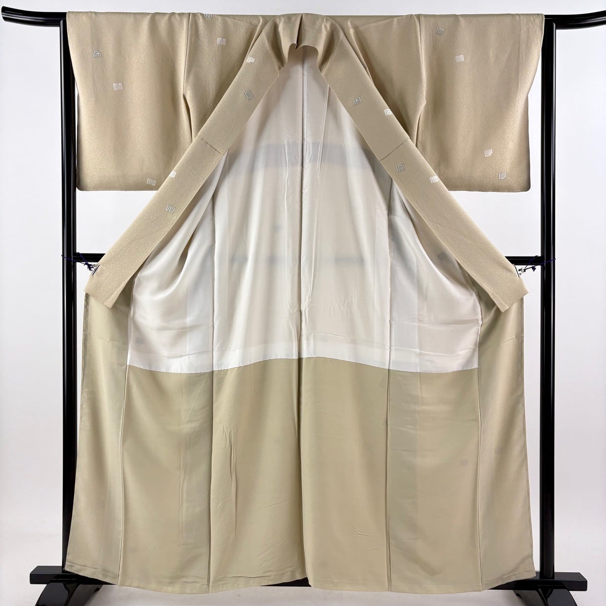 30%OFF 訪問着 身丈160.5cm 裄丈62.5cm S 袷 草花 金糸 金彩 ベージュ 正絹 秀品 K30