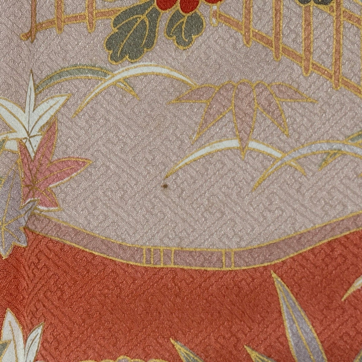 30%OFF 付下げ 身丈156.5cm 裄丈63.5cm S 単衣 蝶 花 金通し 金糸 小豆色 正絹 秀品 K30