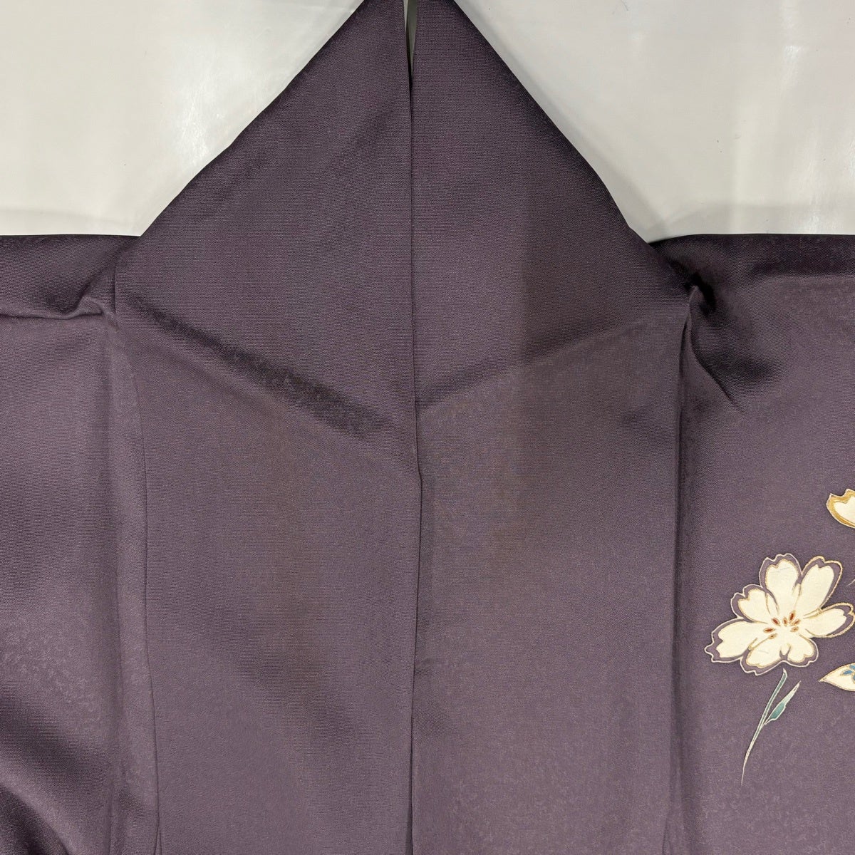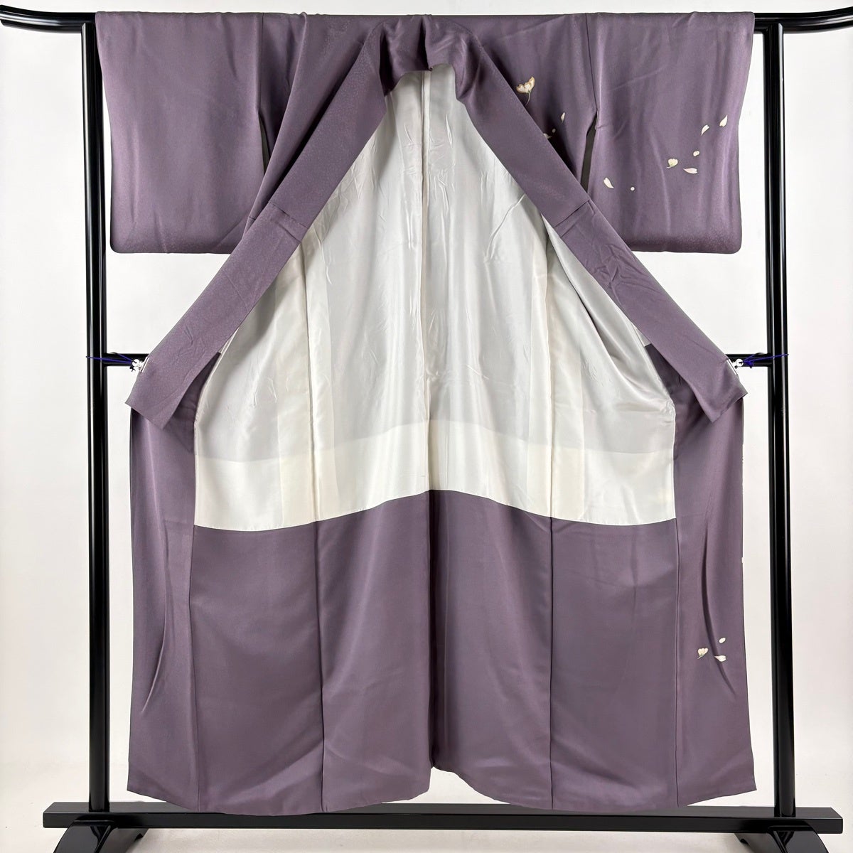 30%OFF 【美品】 色無地 身丈156.5cm 裄丈63cm S 袷 地紋 灰紫 正絹 秀品 一つ紋 K30