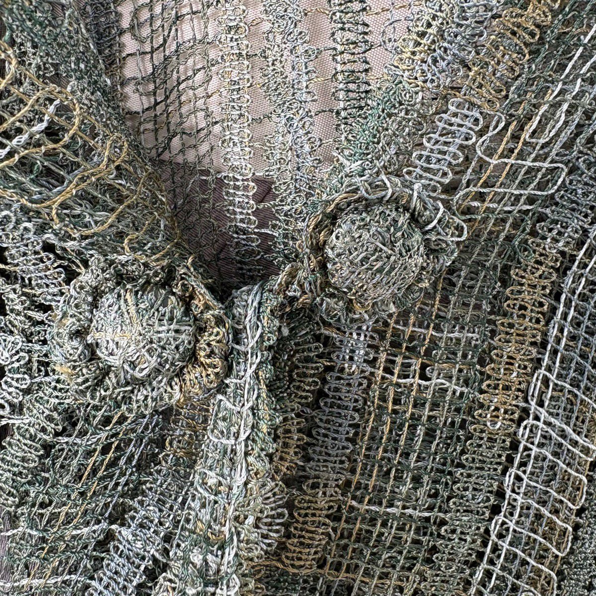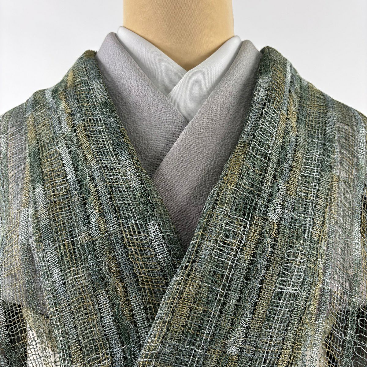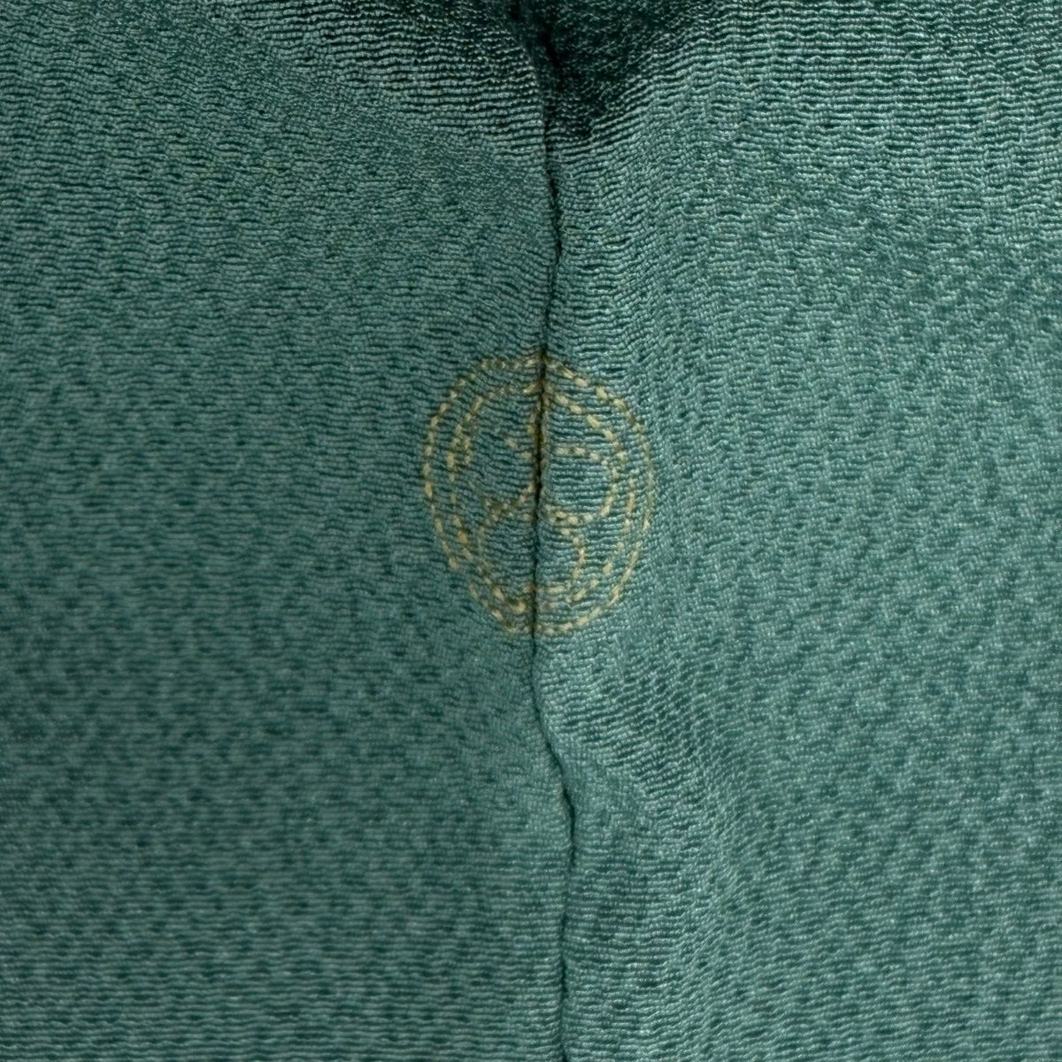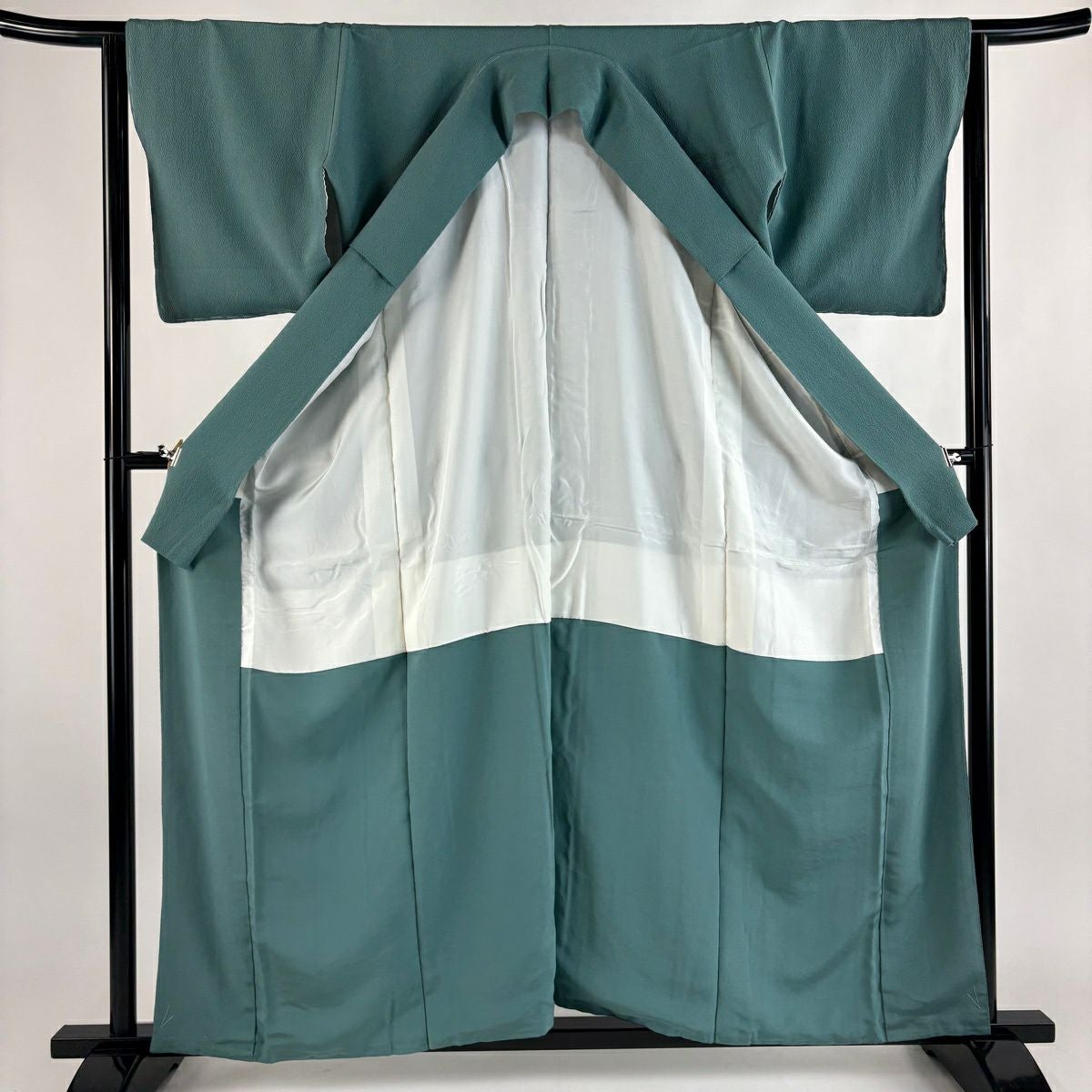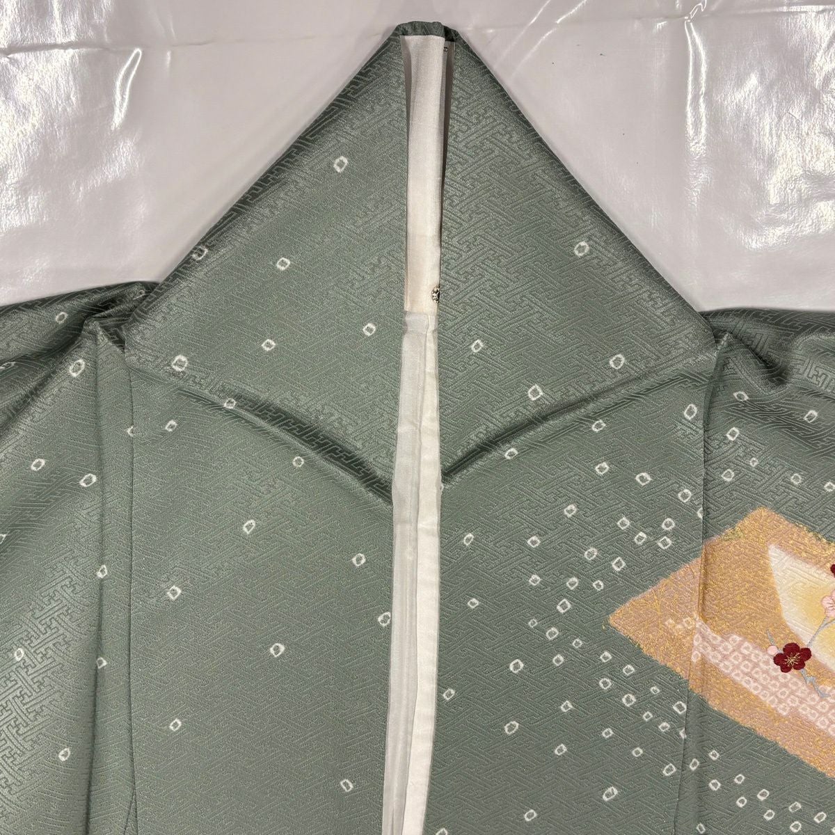30%OFF 【美品】 訪問着 身丈155cm 裄丈64.5cm M 袷 椿 幾何学 刺繍 絞り 灰緑 正絹 秀品 K30