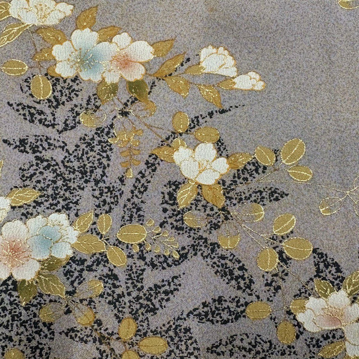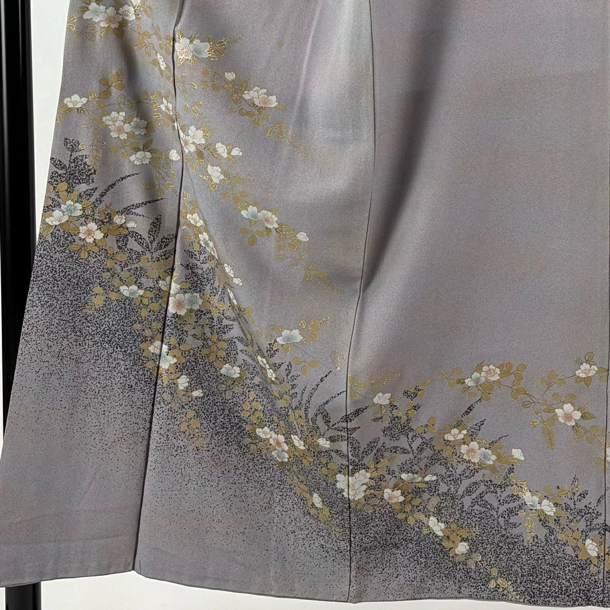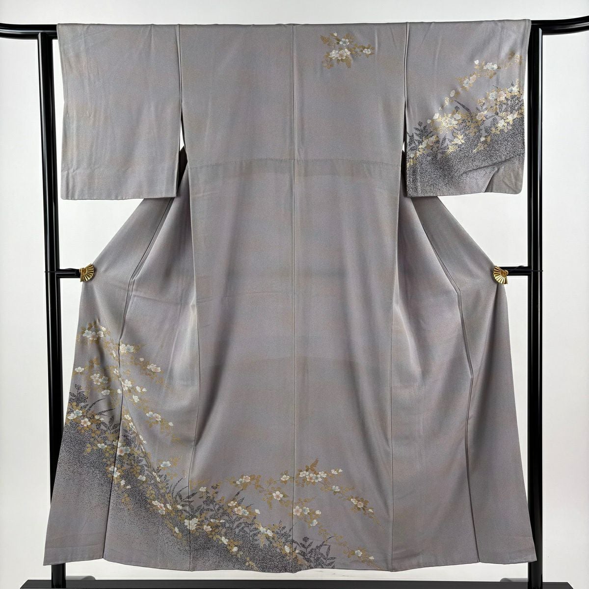 30%OFF 訪問着 身丈151.5cm 裄丈62.5cm S 袷 草花 シルエット 金彩 ぼかし 灰色 正絹 秀品 K30