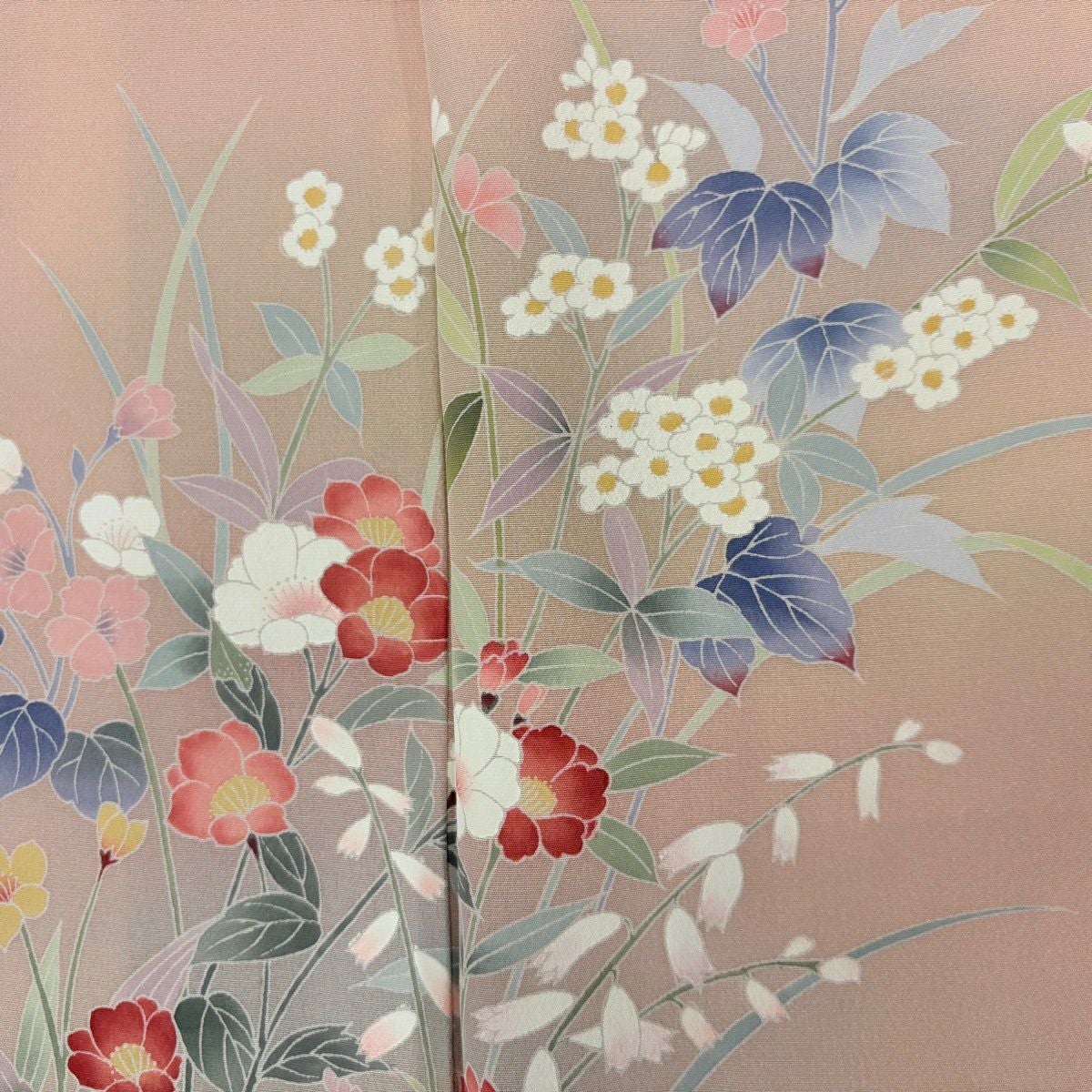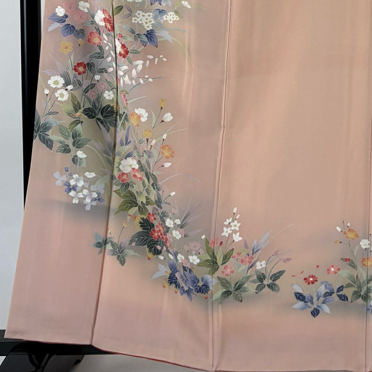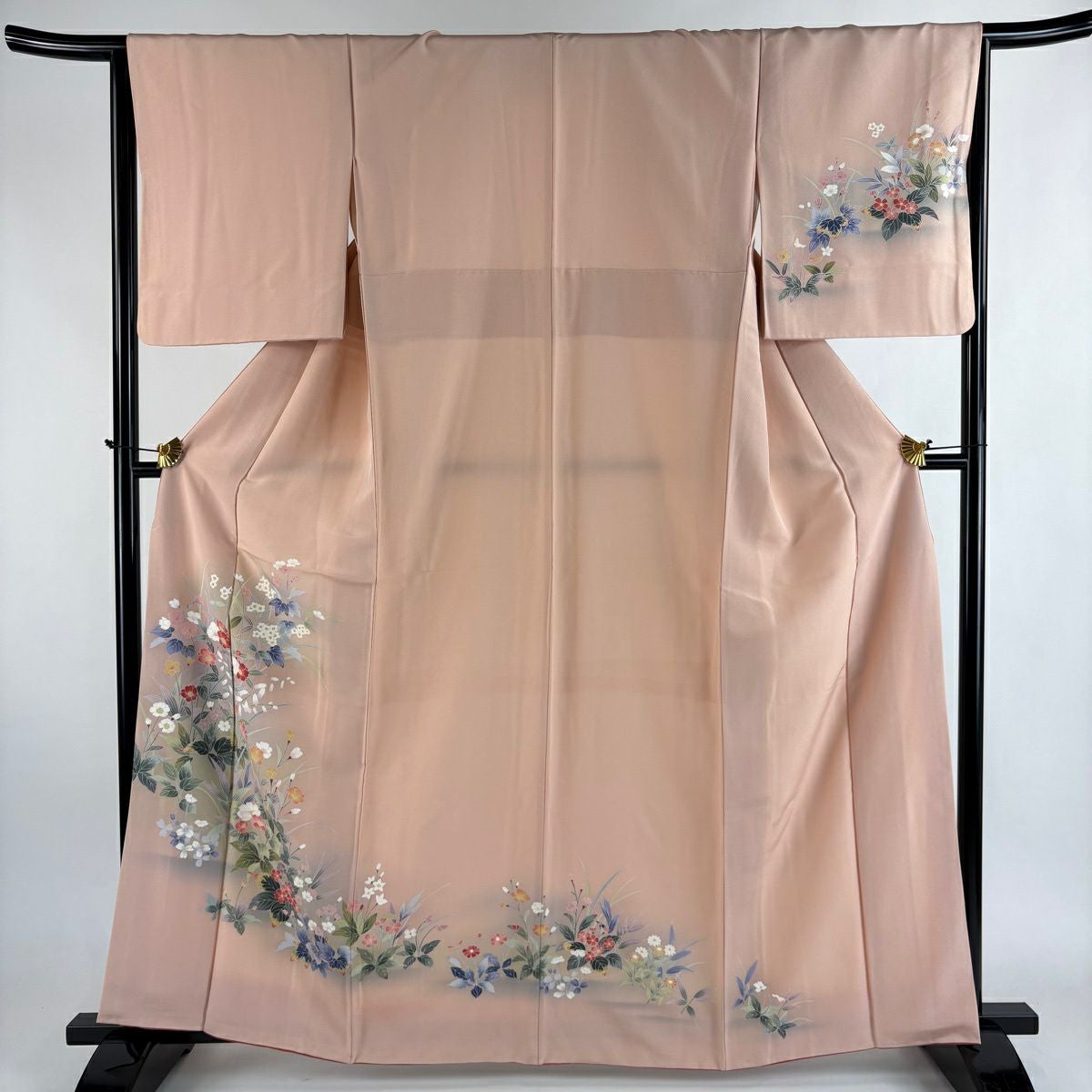 30%OFF 【美品】 訪問着 身丈164cm 裄丈66cm M 袷 草花 ぼかし サーモンピンク 正絹 秀品 K30