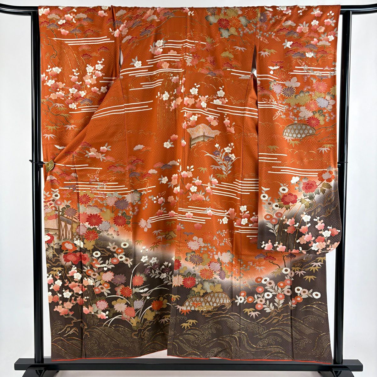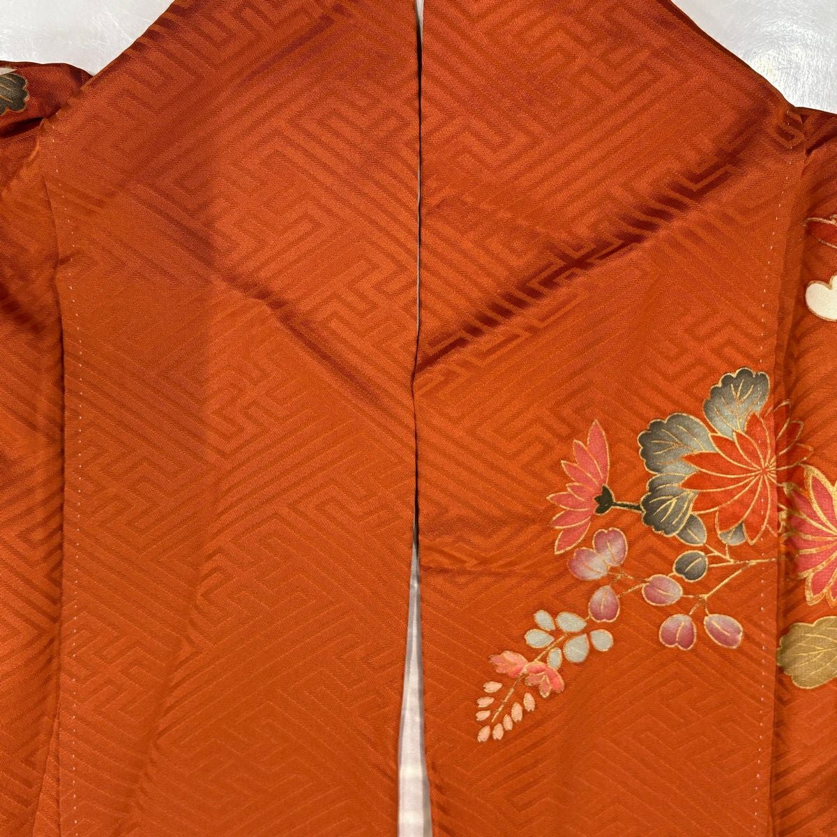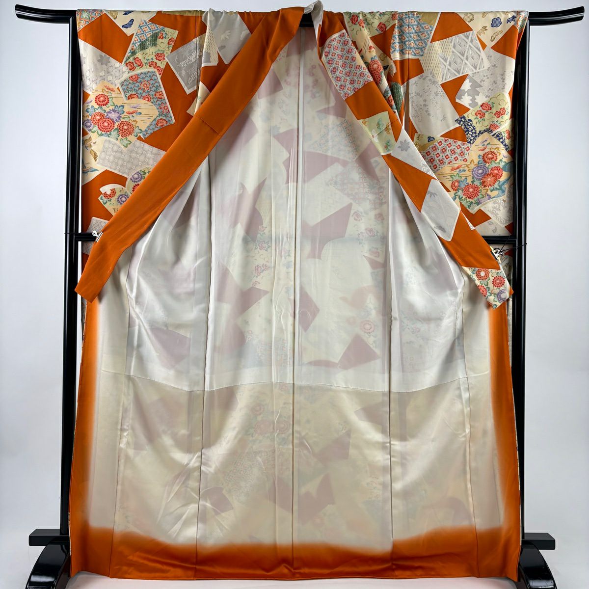 30%OFF 【美品】 振袖 身丈171cm 裄丈67cm M 袷 冊子 草花 金糸 金彩 オレンジ 正絹 秀品 K30
