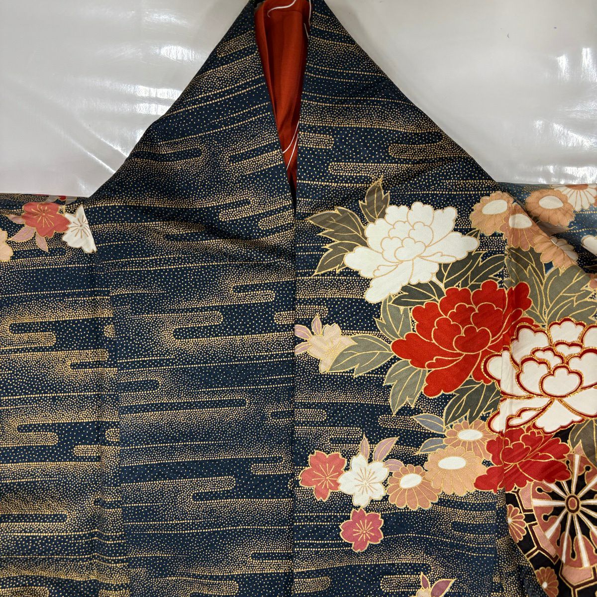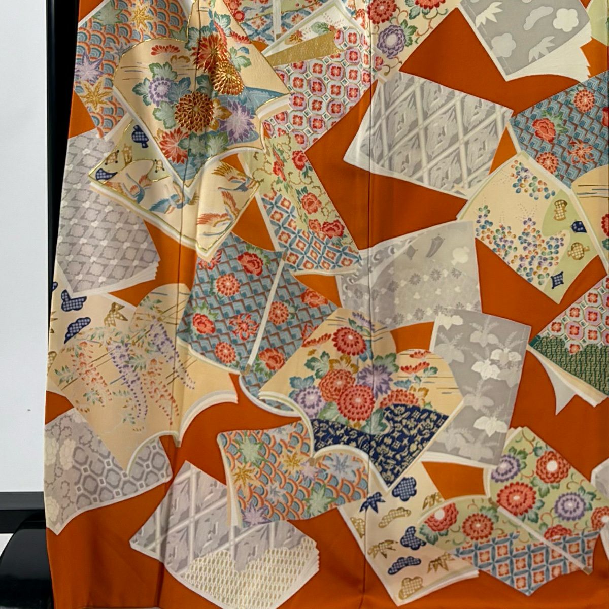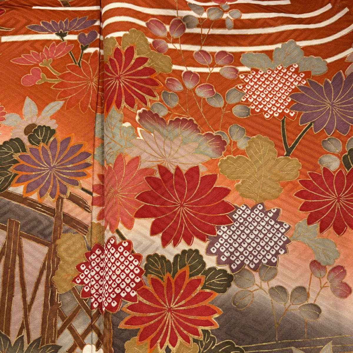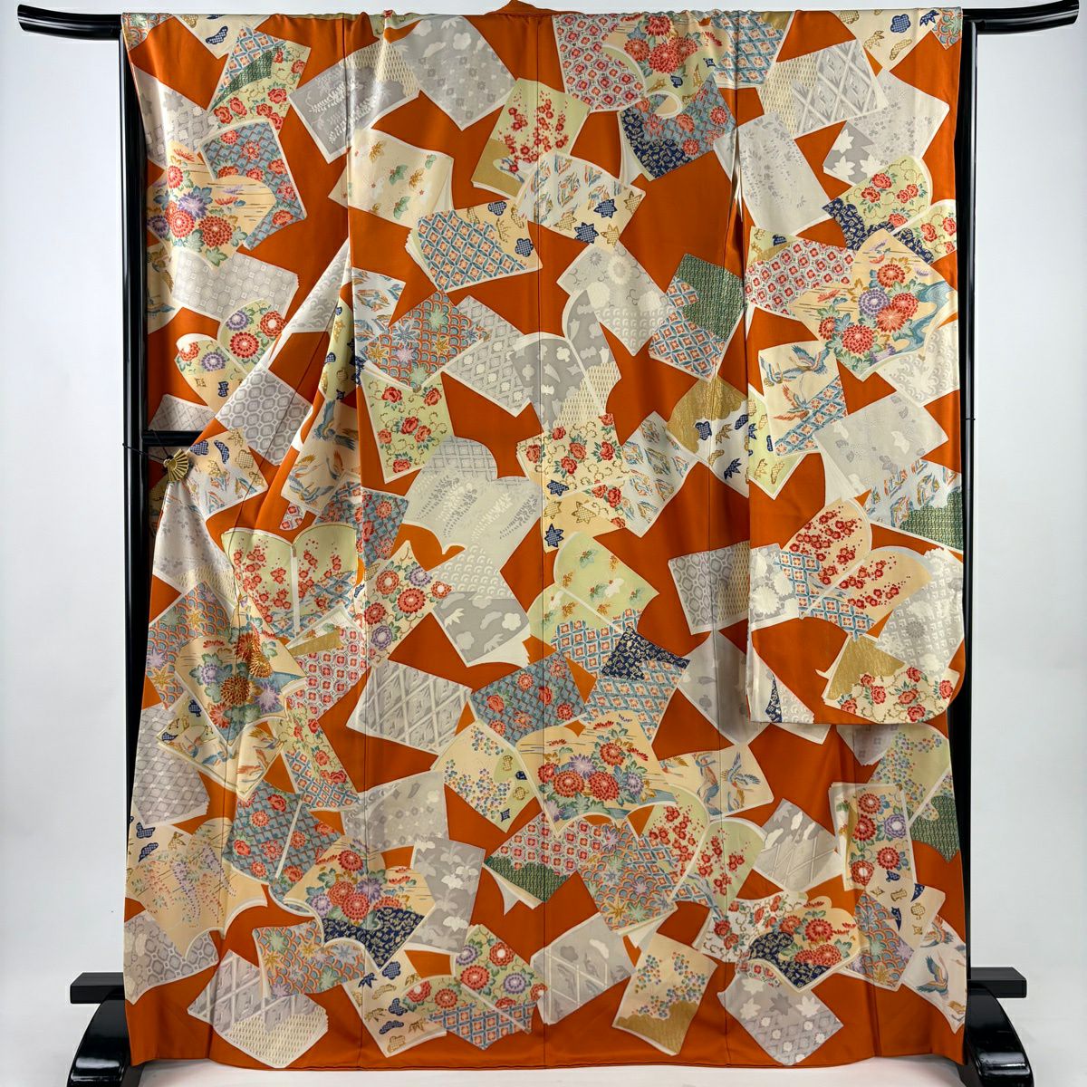 30%OFF 【美品】 振袖 身丈171cm 裄丈67cm M 袷 冊子 草花 金糸 金彩 オレンジ 正絹 秀品 K30