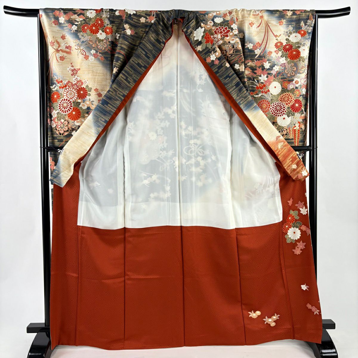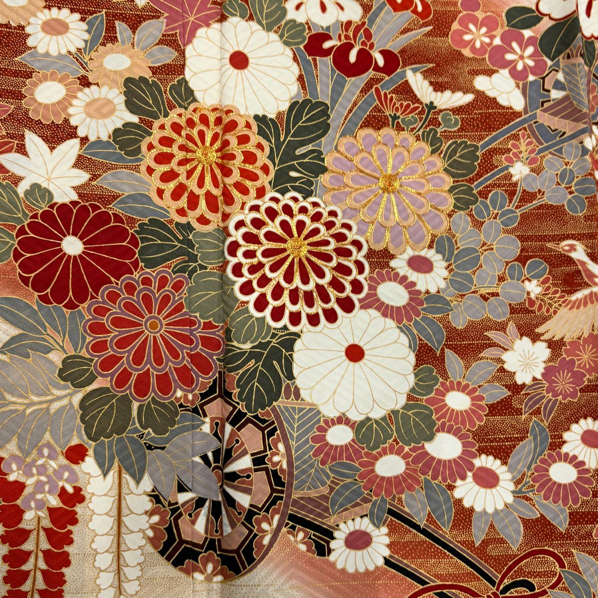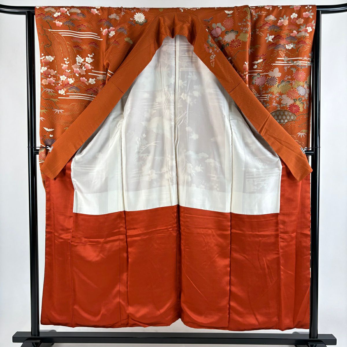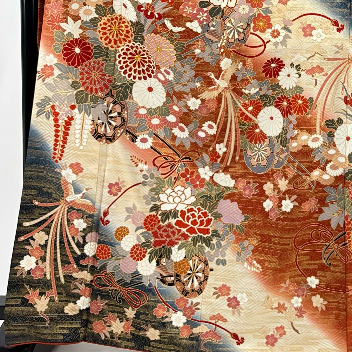 30%OFF 【美品】 振袖 身丈168cm 裄丈66.5cm M 袷 花車 尾長鳥 金糸 金彩 赤茶 正絹 秀品 K30
