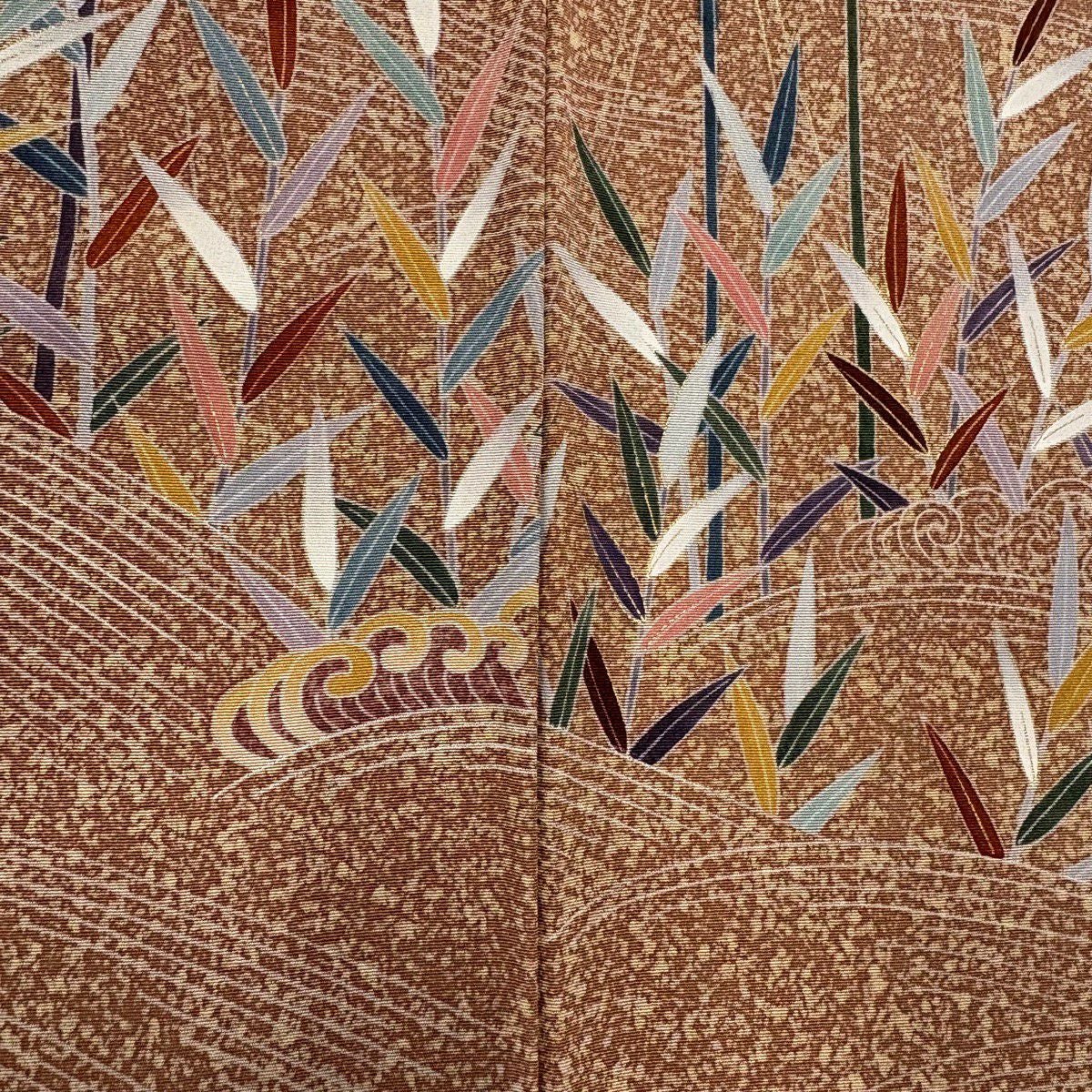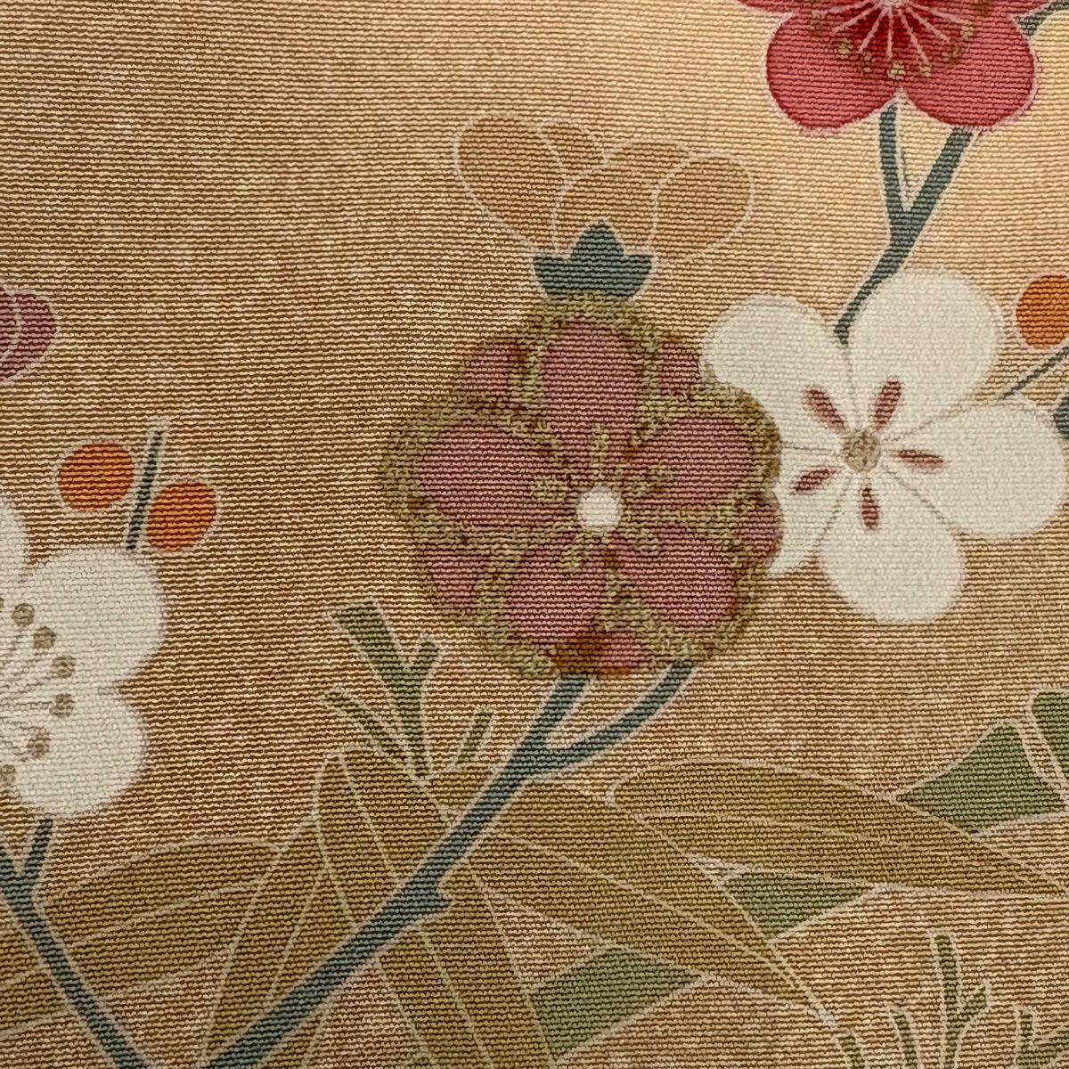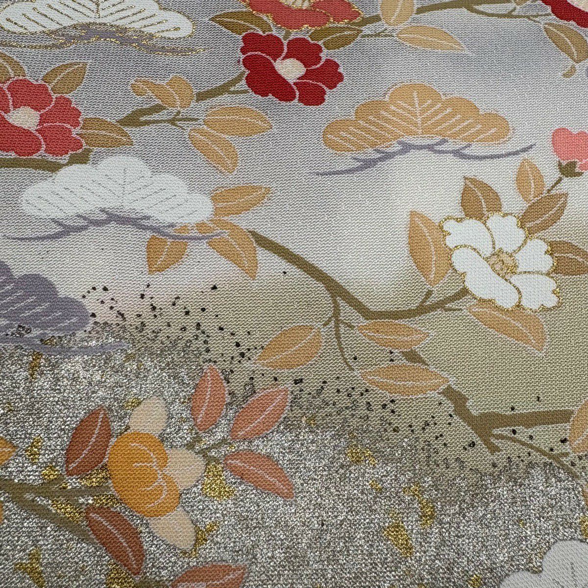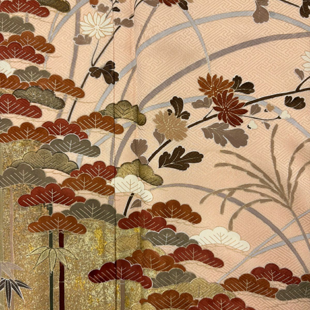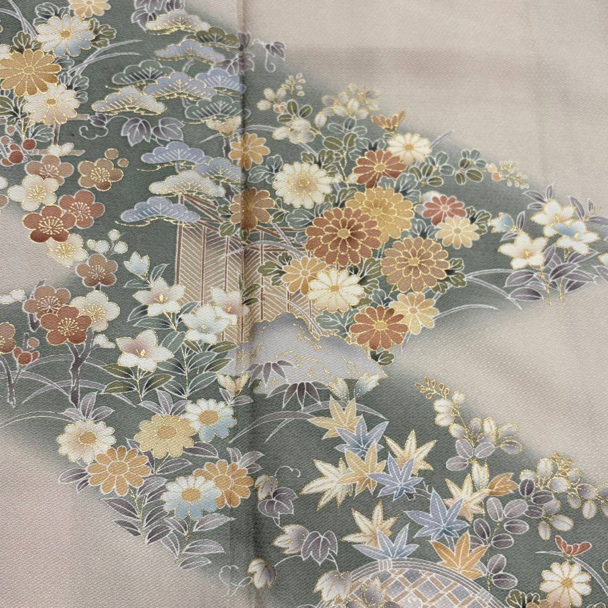 30%OFF 【美品】 訪問着 身丈152.5cm 裄丈64cm M 袷 秋草 松竹梅 金彩 薄茶色 正絹 秀品 K30