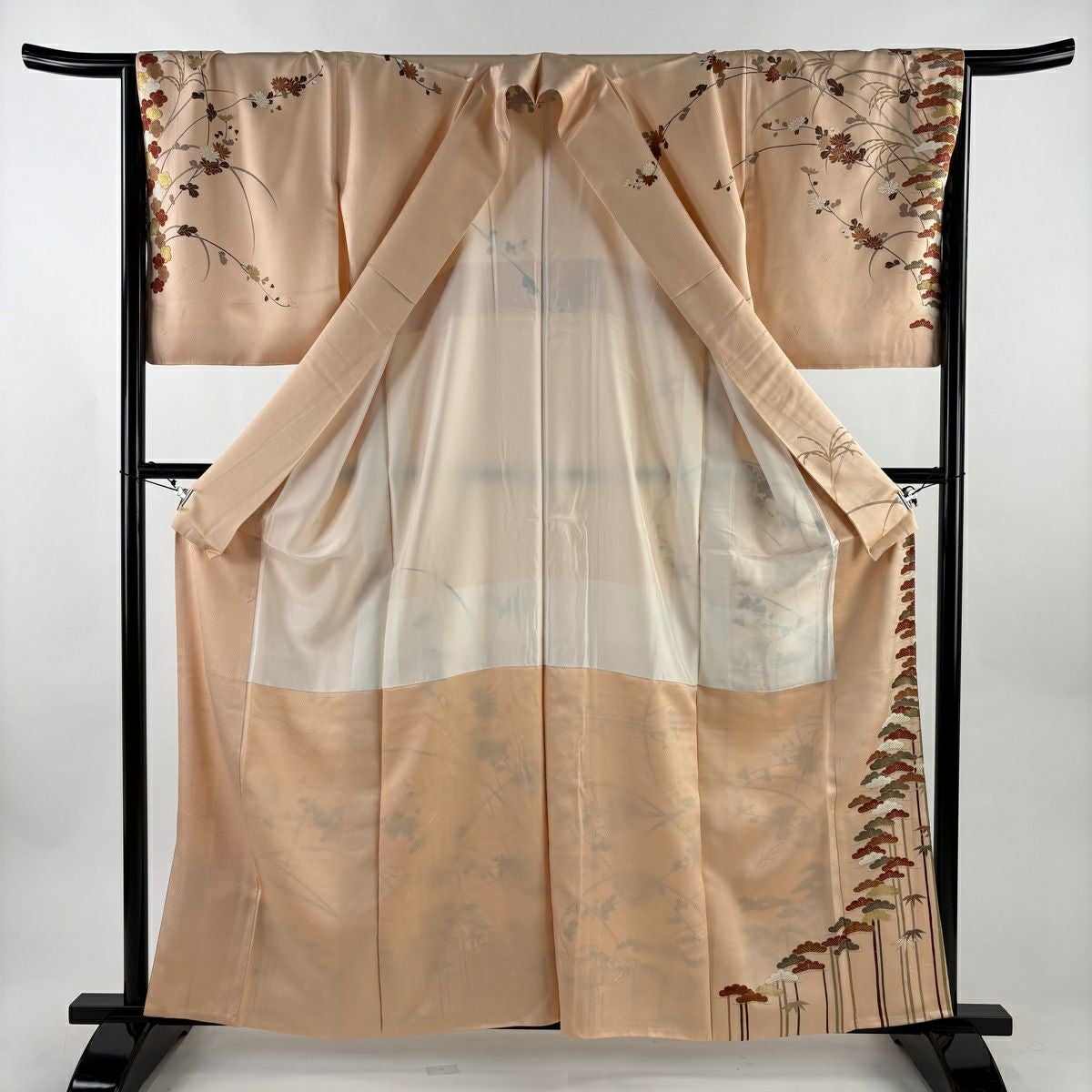 30%OFF 訪問着 身丈161.5cm 裄丈66cm M 袷 松 菊 金彩 染め分け 薄オレンジ 正絹 秀品 K30