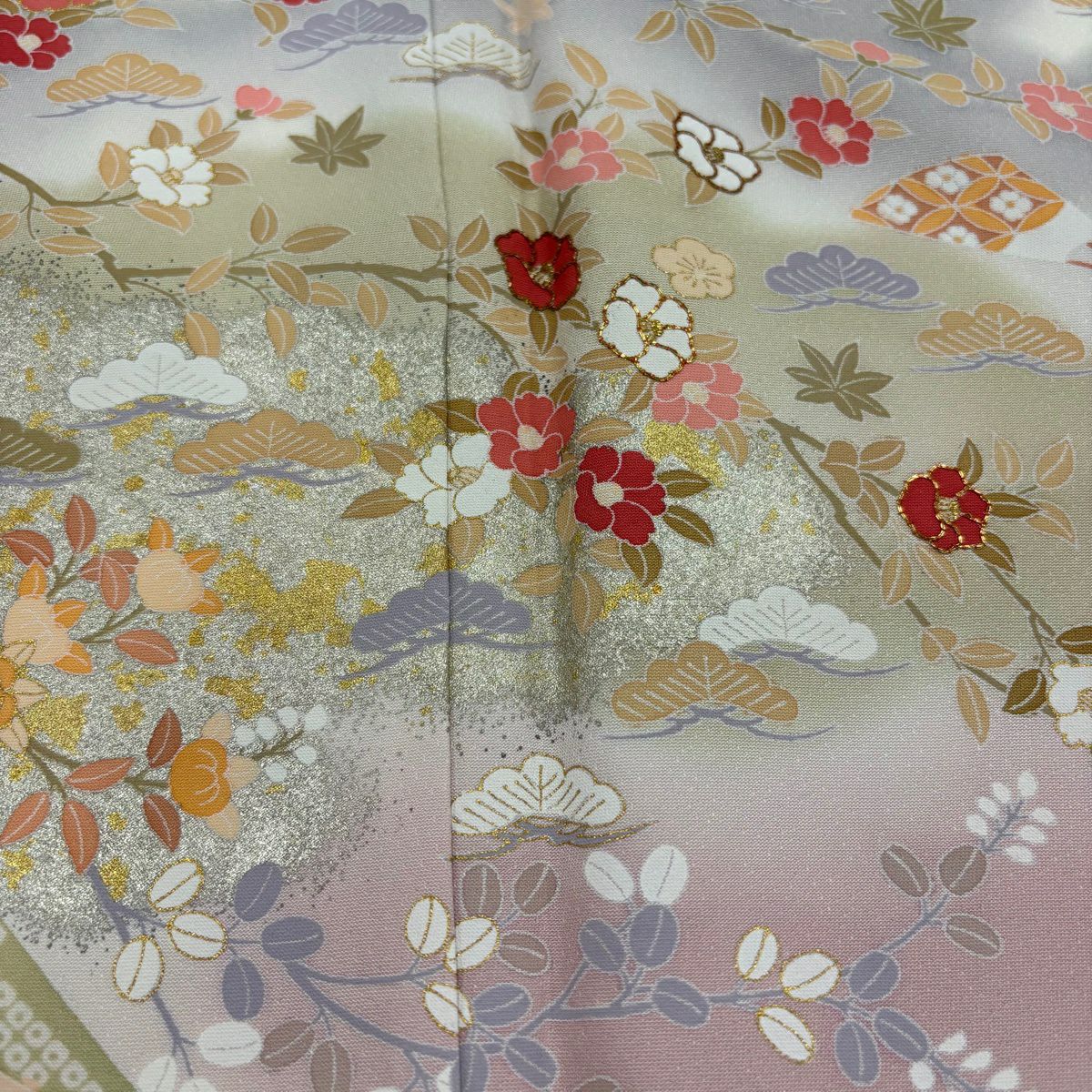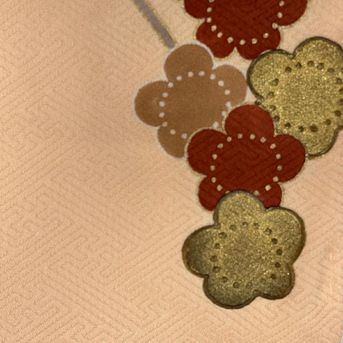 30%OFF 振袖 身丈155cm 裄丈64.5cm M 単衣 枝梅 松竹梅 金彩 ぼかし オレンジ 正絹 秀品 K30