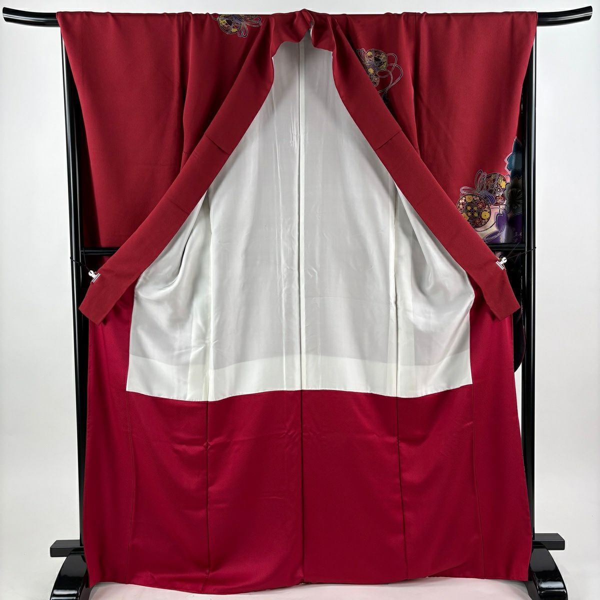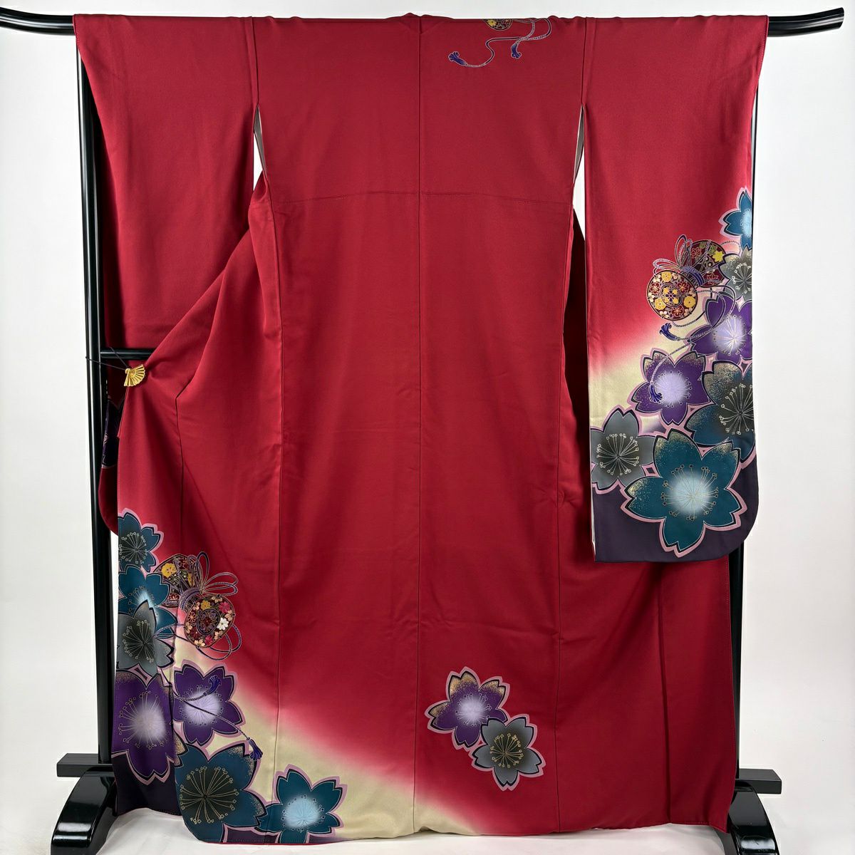 30%OFF 【美品】 振袖 身丈171cm 裄丈67.5cm L 袷 桜 鼓 金彩 刺繍 えんじ色 正絹 秀品 K30