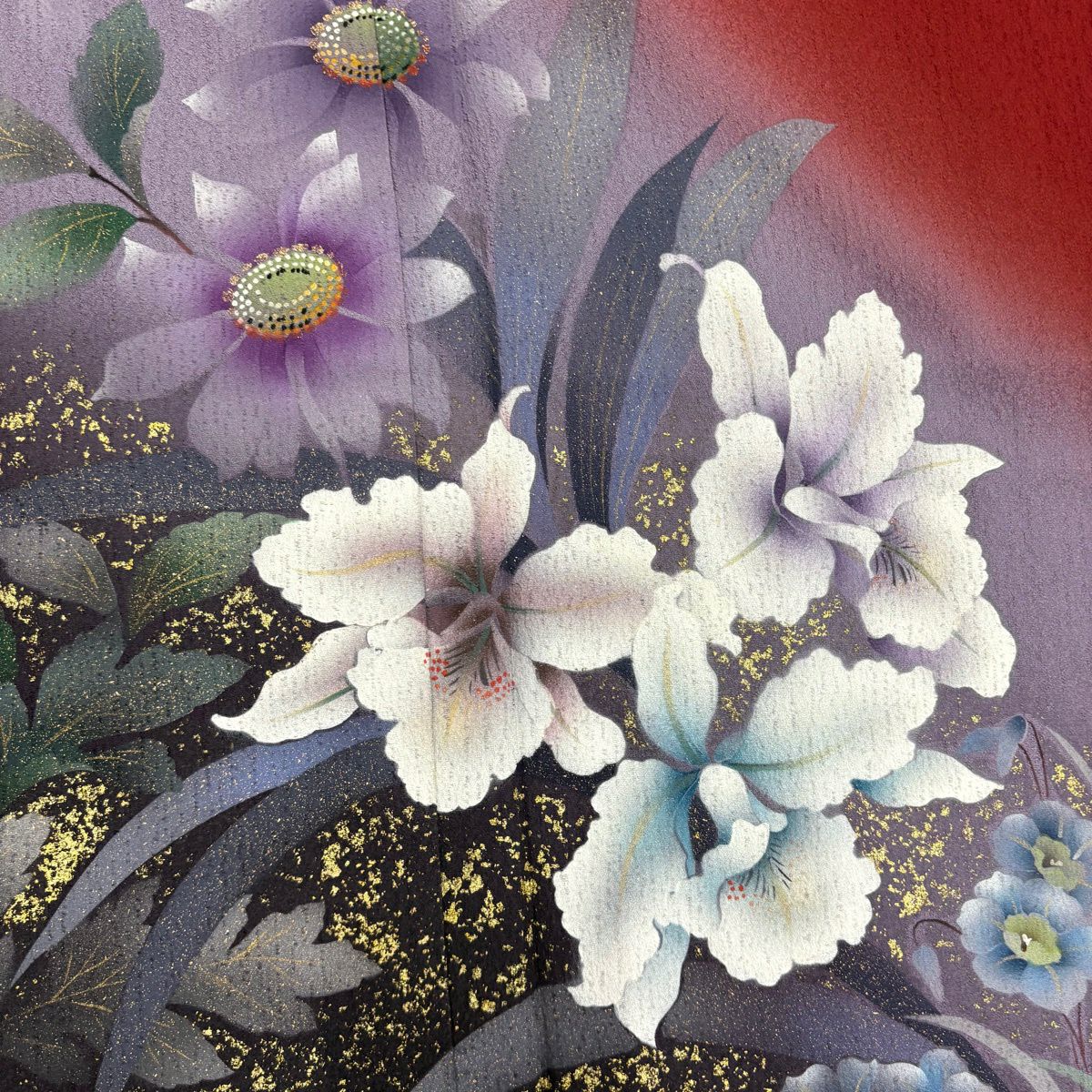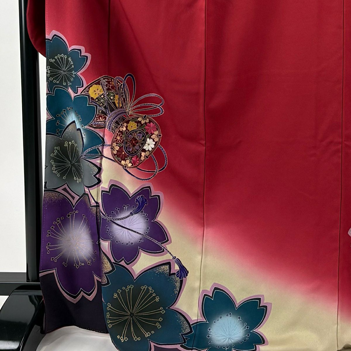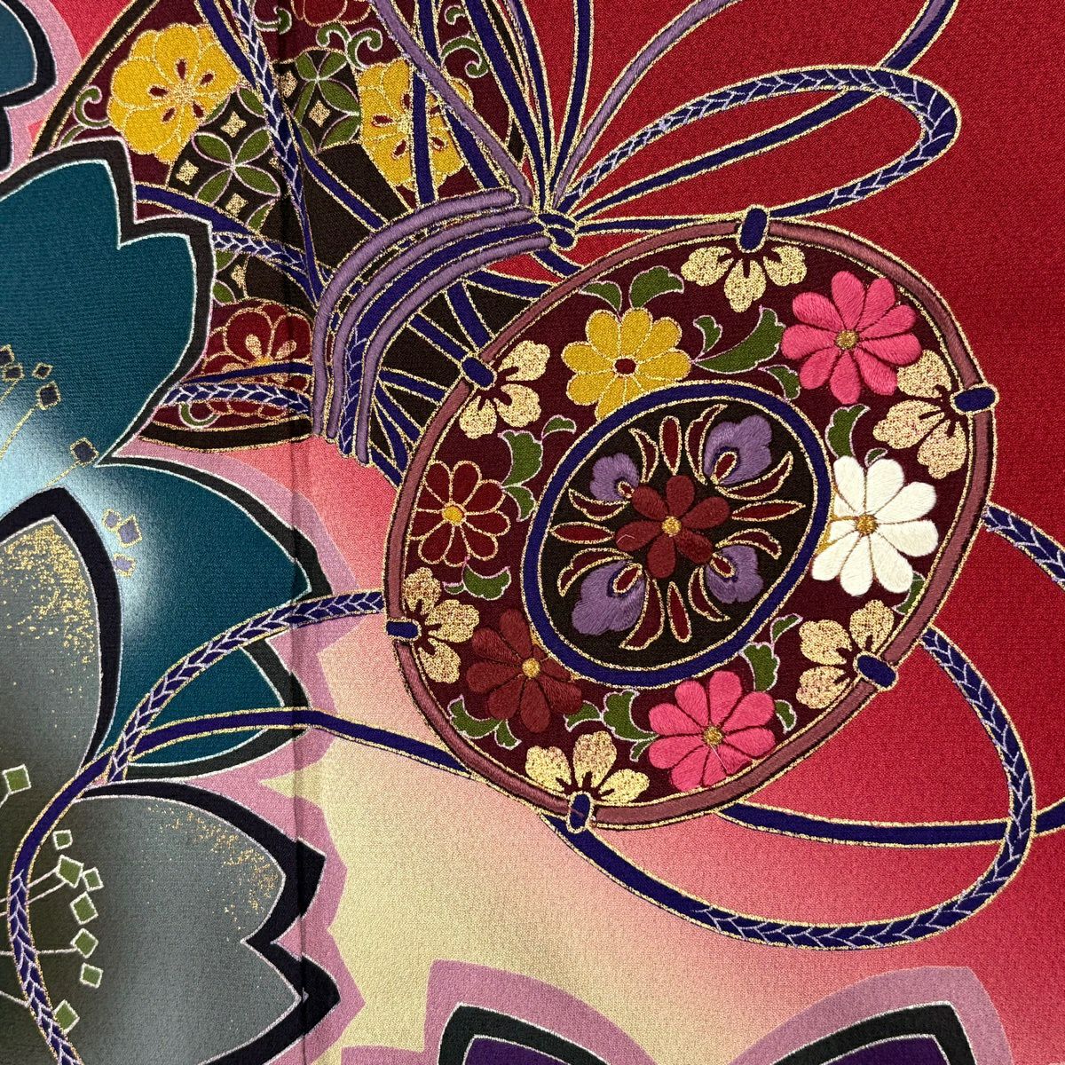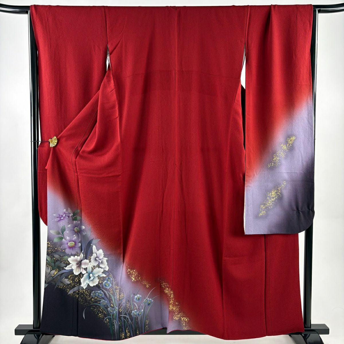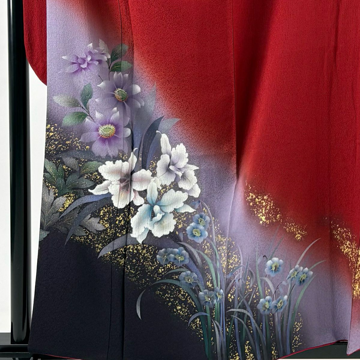 30%OFF 【美品】 振袖 身丈159cm 裄丈68cm L 袷 鈴乃屋 草花 金彩 染め分け 赤 正絹 秀品 K30