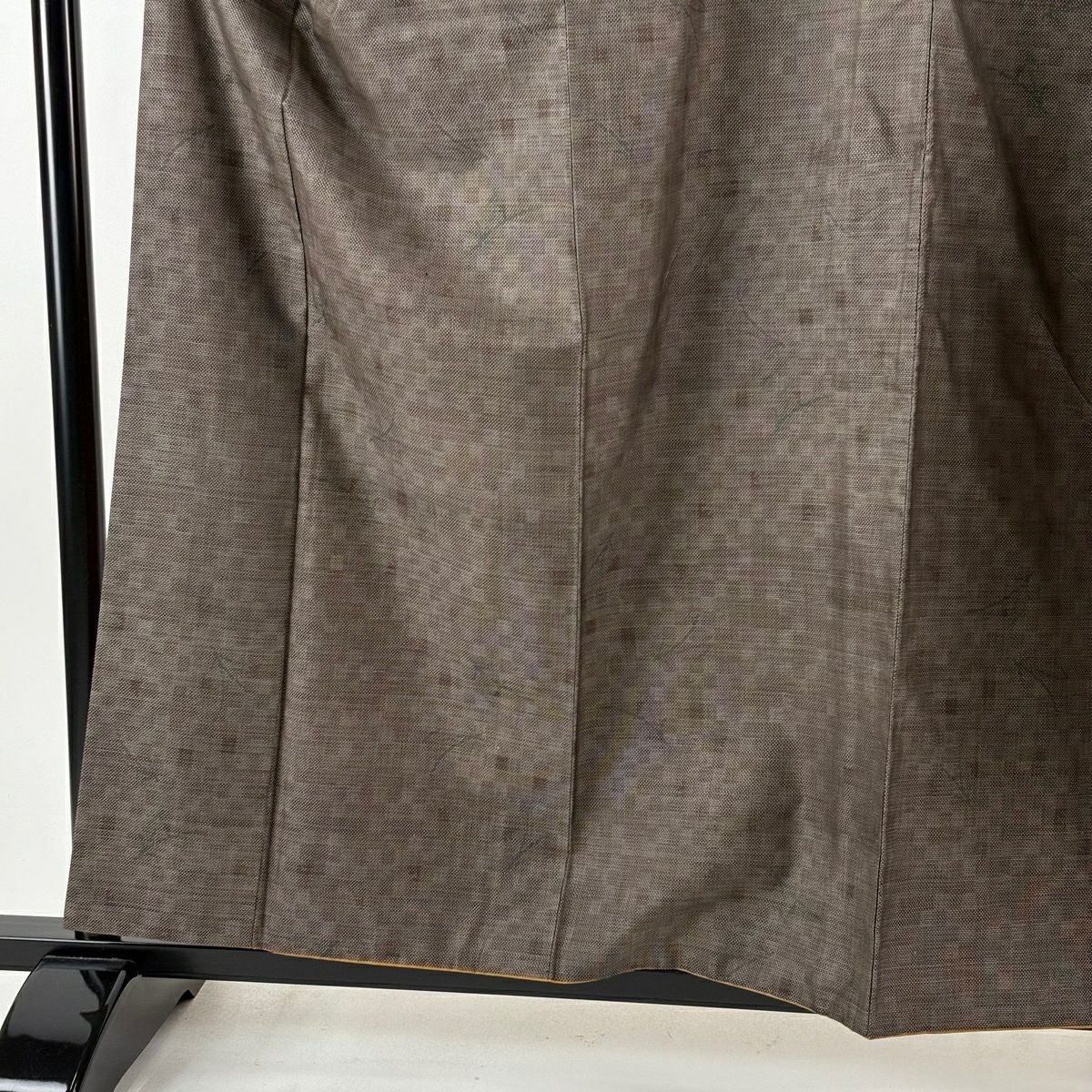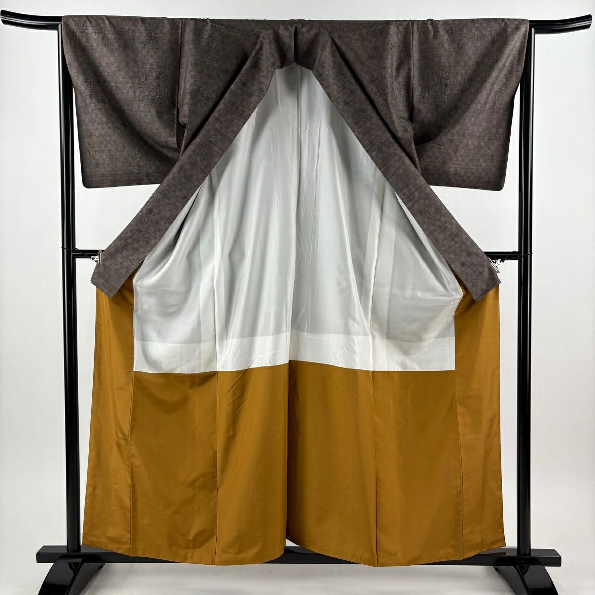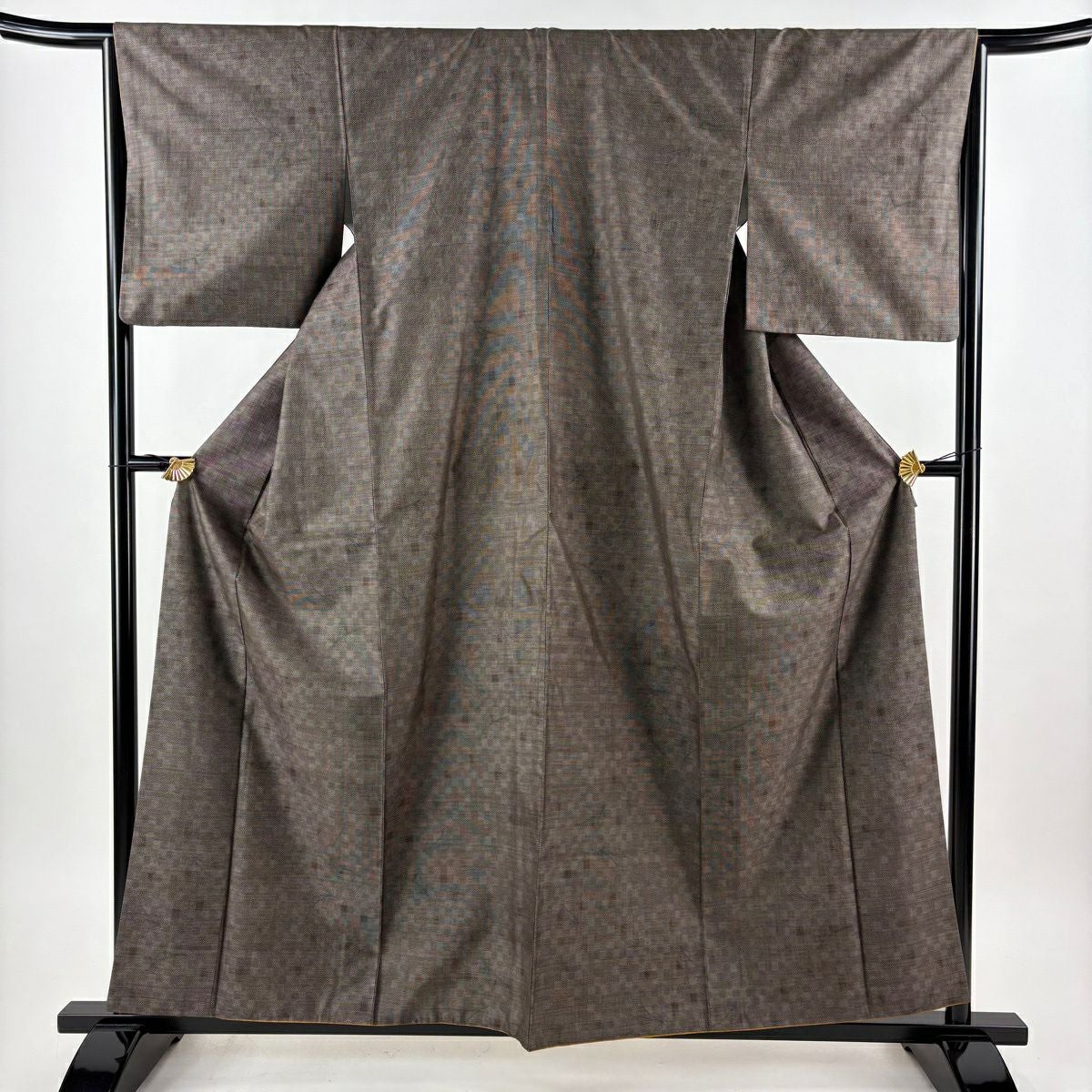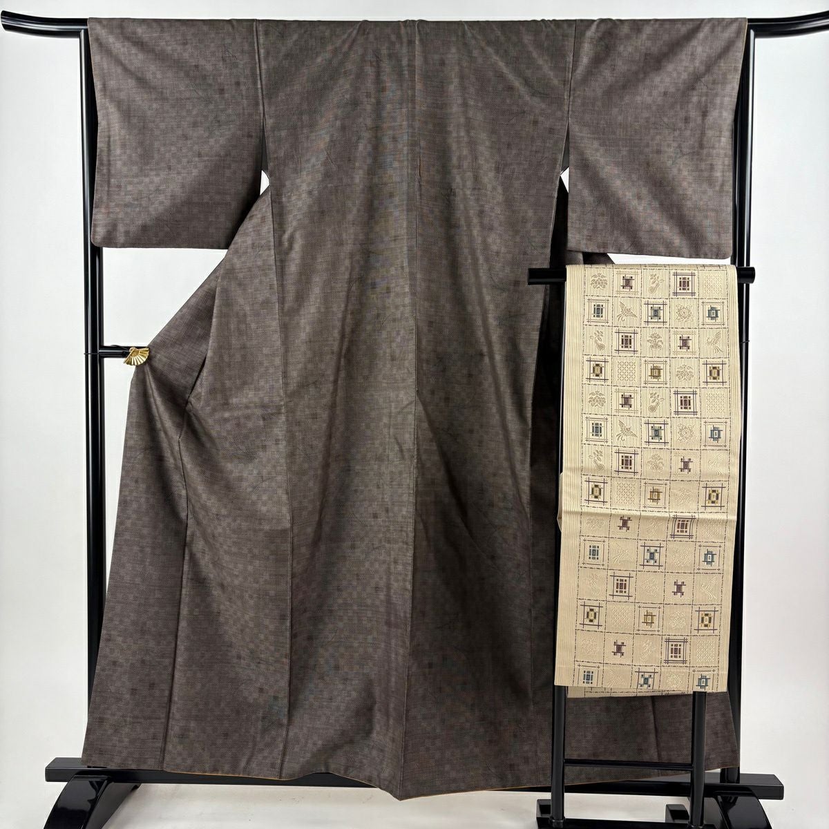 30%OFF 【美品】 紬 身丈160cm 裄丈65cm M 袷 名古屋帯セット 幾何学模様 焦茶色 正絹 秀品 K30