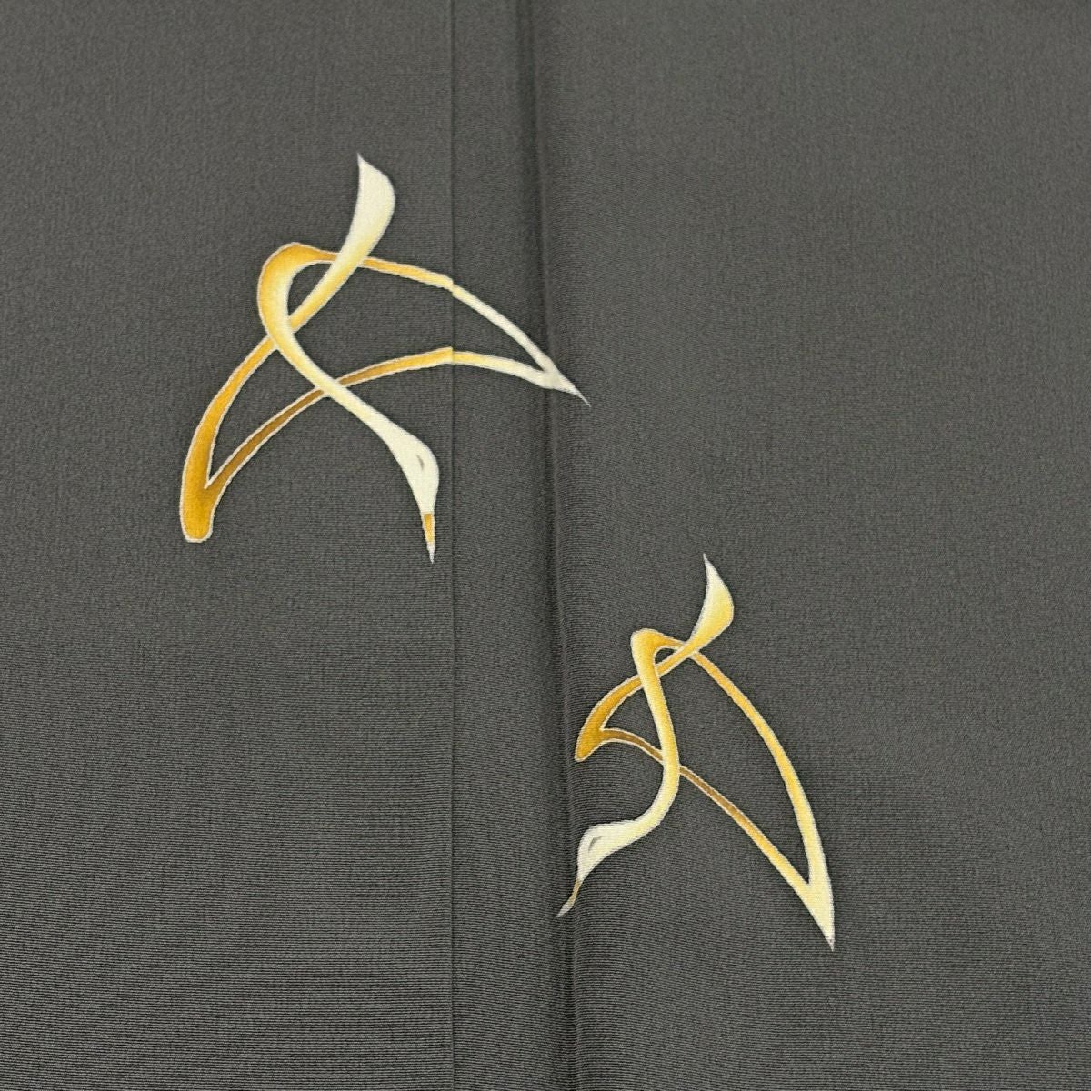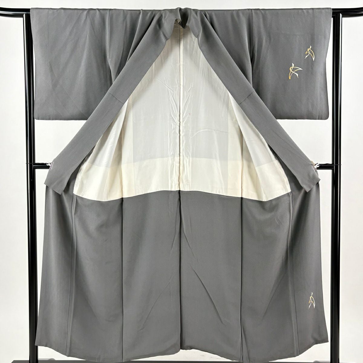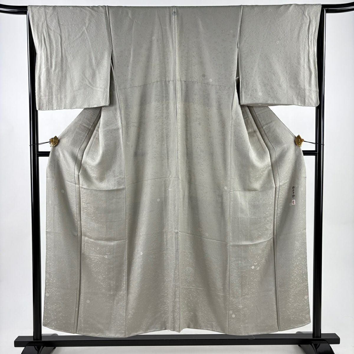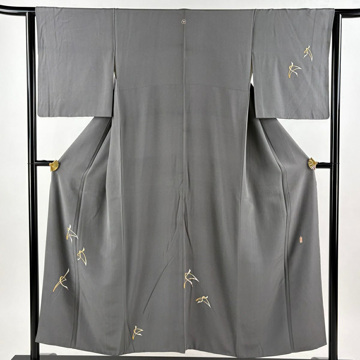 30%OFF 付下げ 身丈151cm 裄丈63.5cm S 袷 鬼島武司 落款あり 鳥 灰色 正絹 秀品 一つ紋 K30