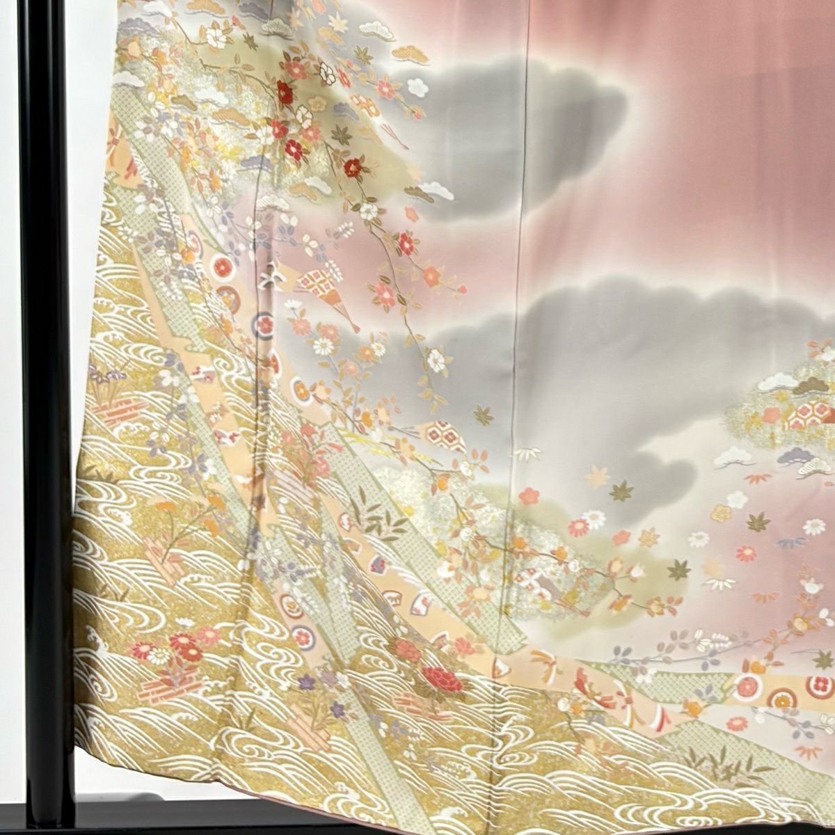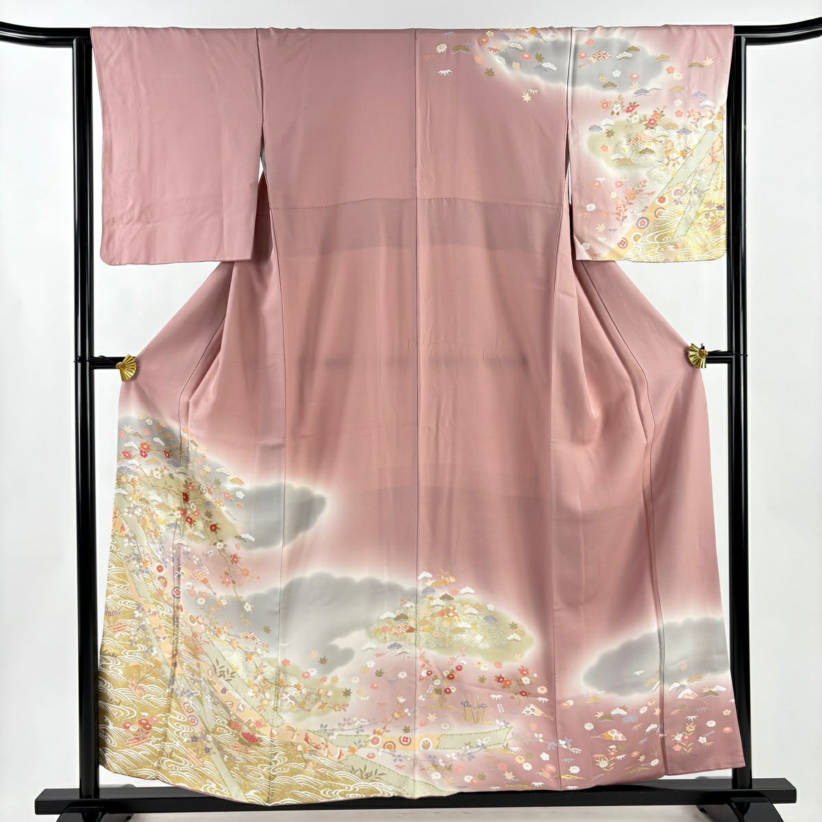 30%OFF 訪問着 身丈157.5cm 裄丈63cm S 袷 松竹梅 椿 金銀彩 ぼかし ピンク 正絹 秀品 K30