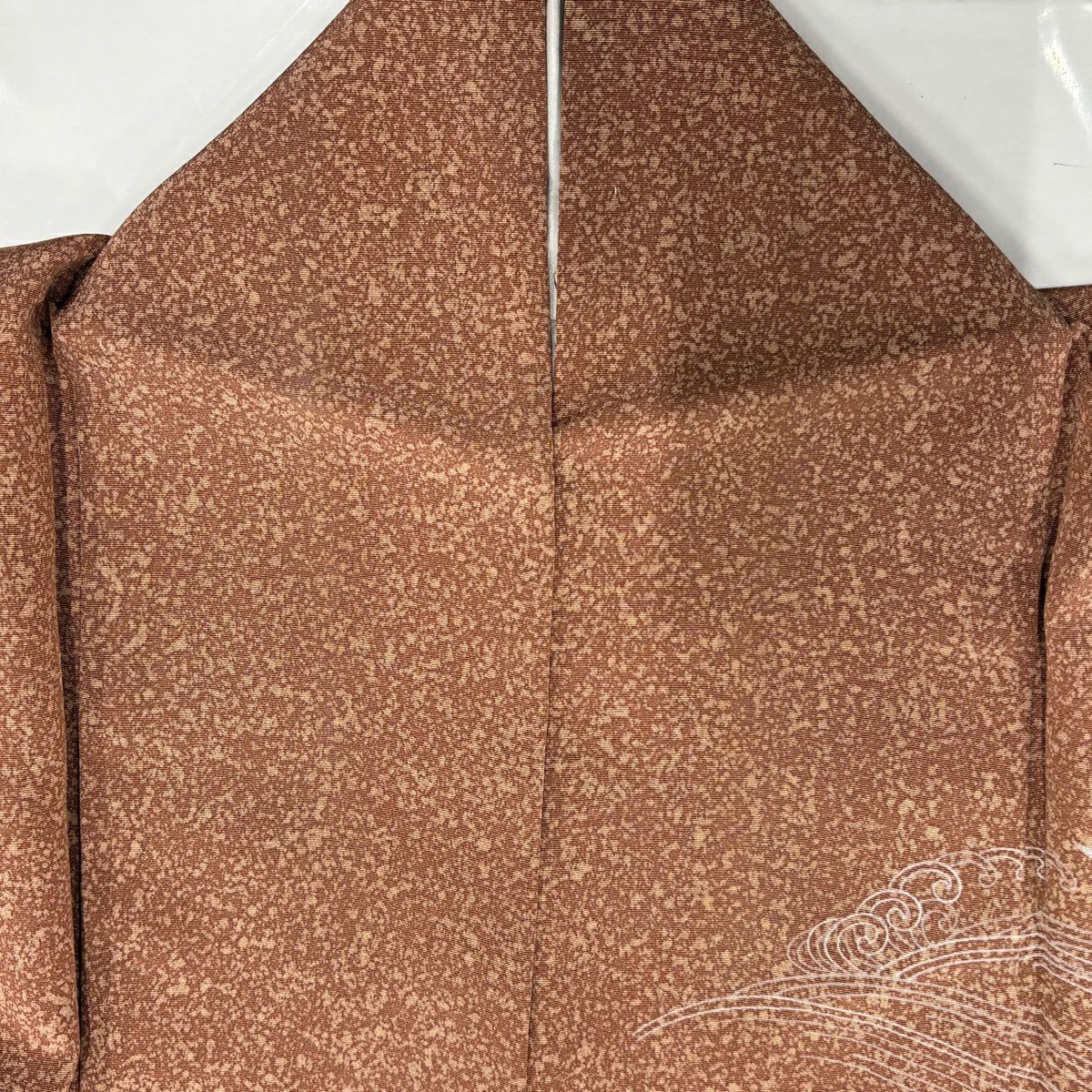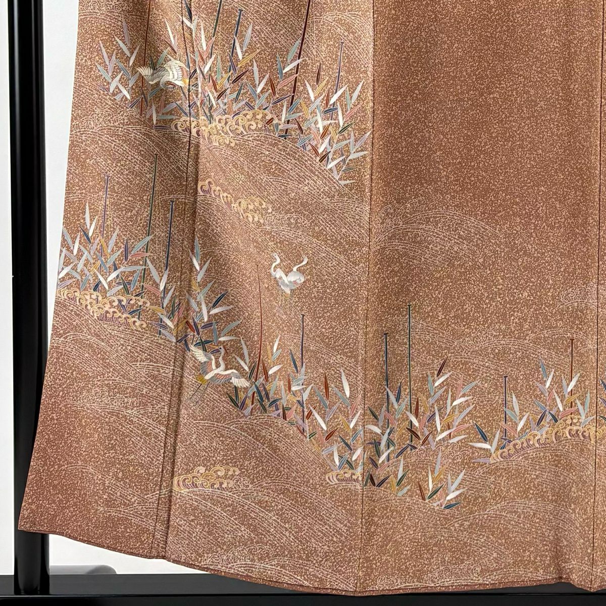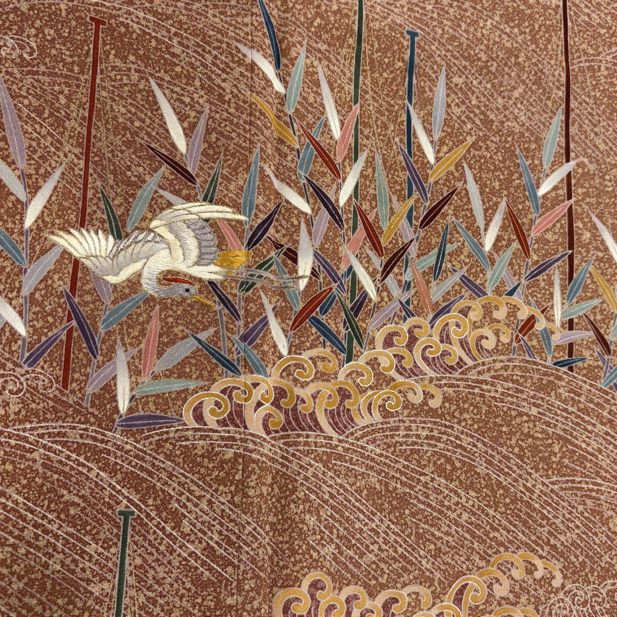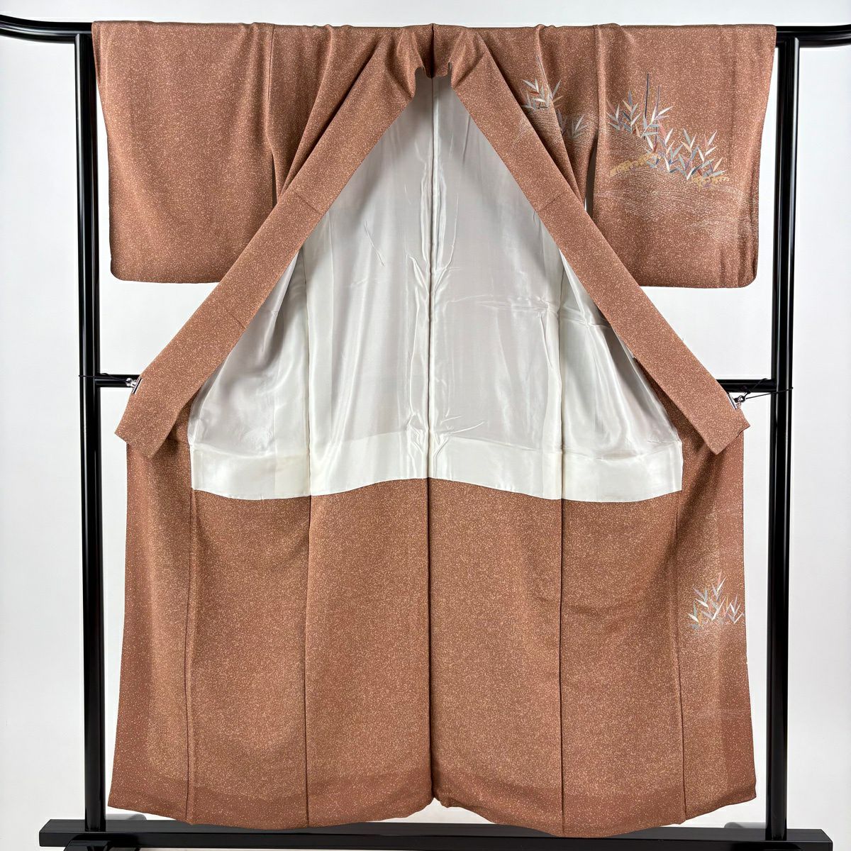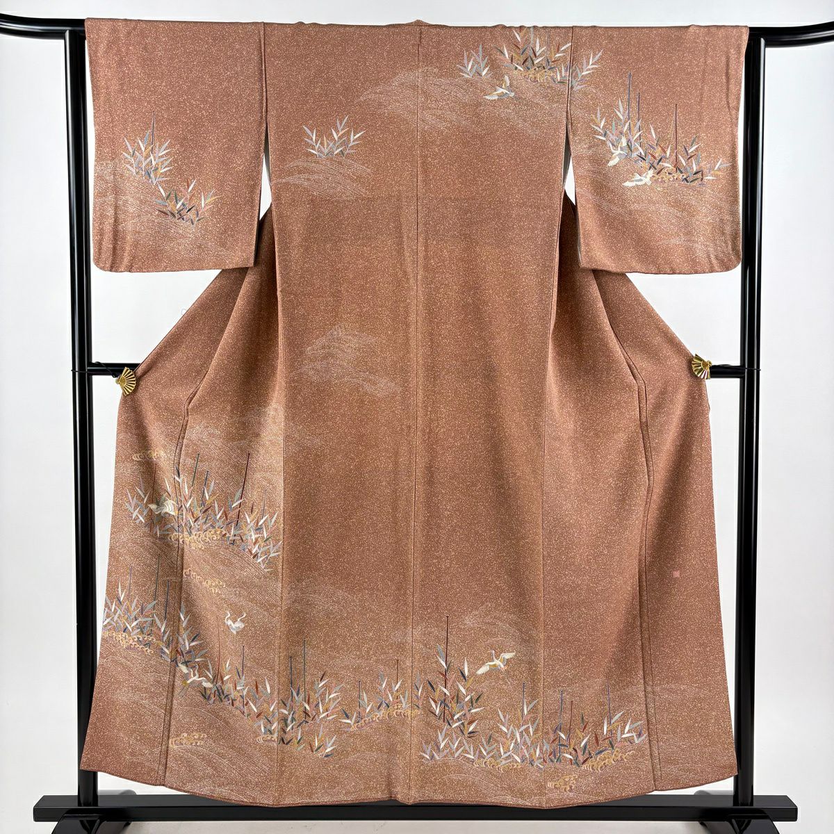 30%OFF 訪問着 身丈154.5cm 裄丈62cm S 袷 落款あり 鳥 波 刺繍 金彩 小豆色 正絹 秀品 K30