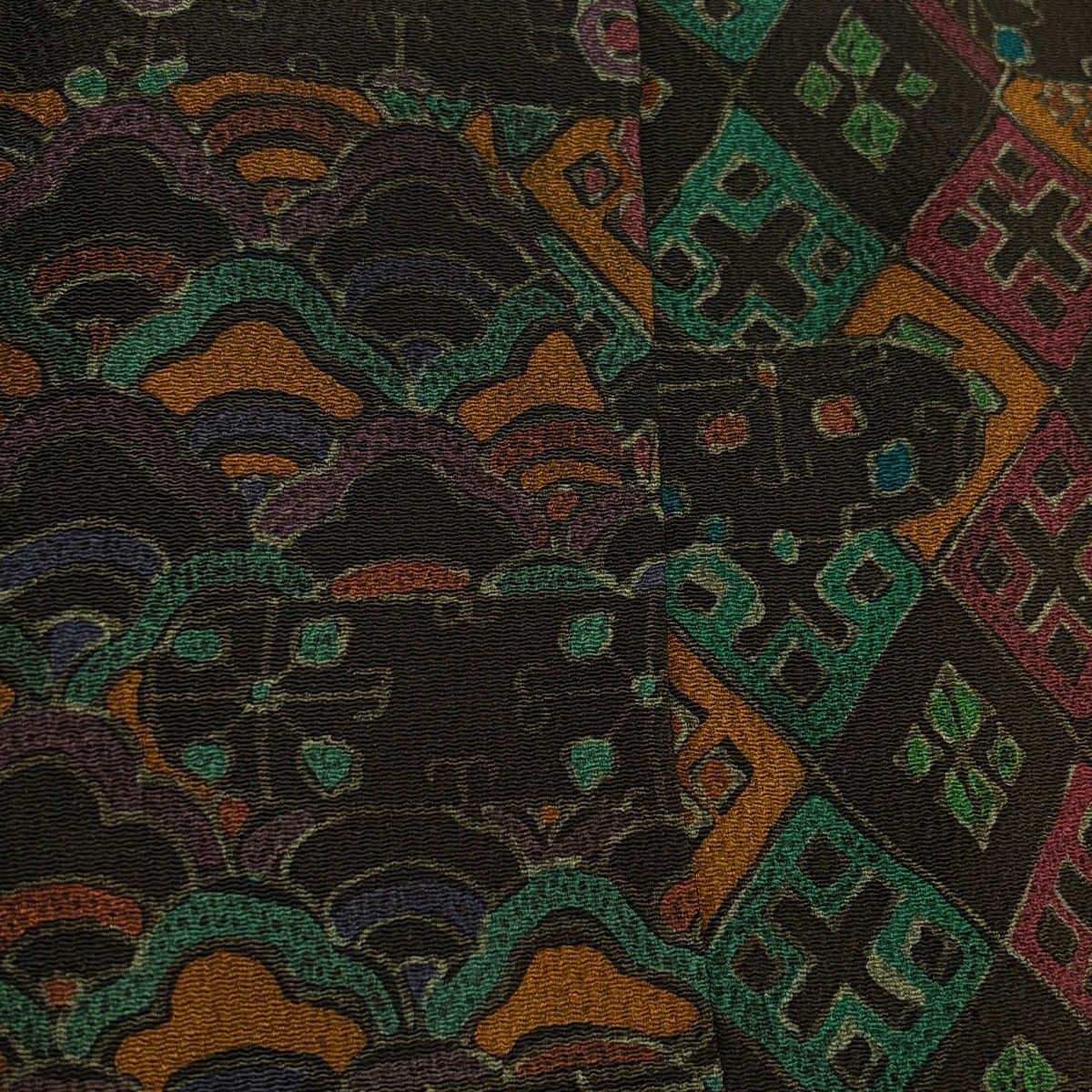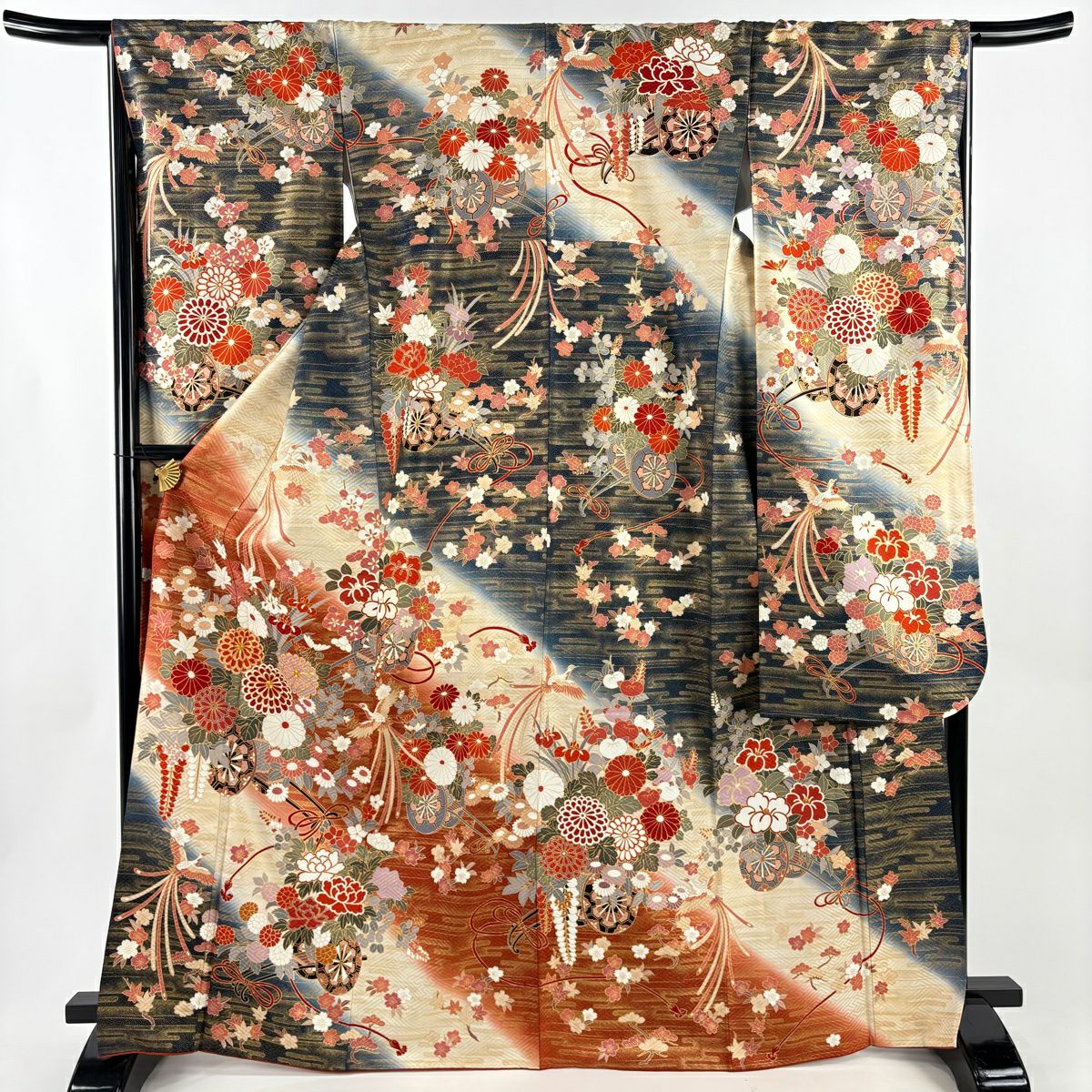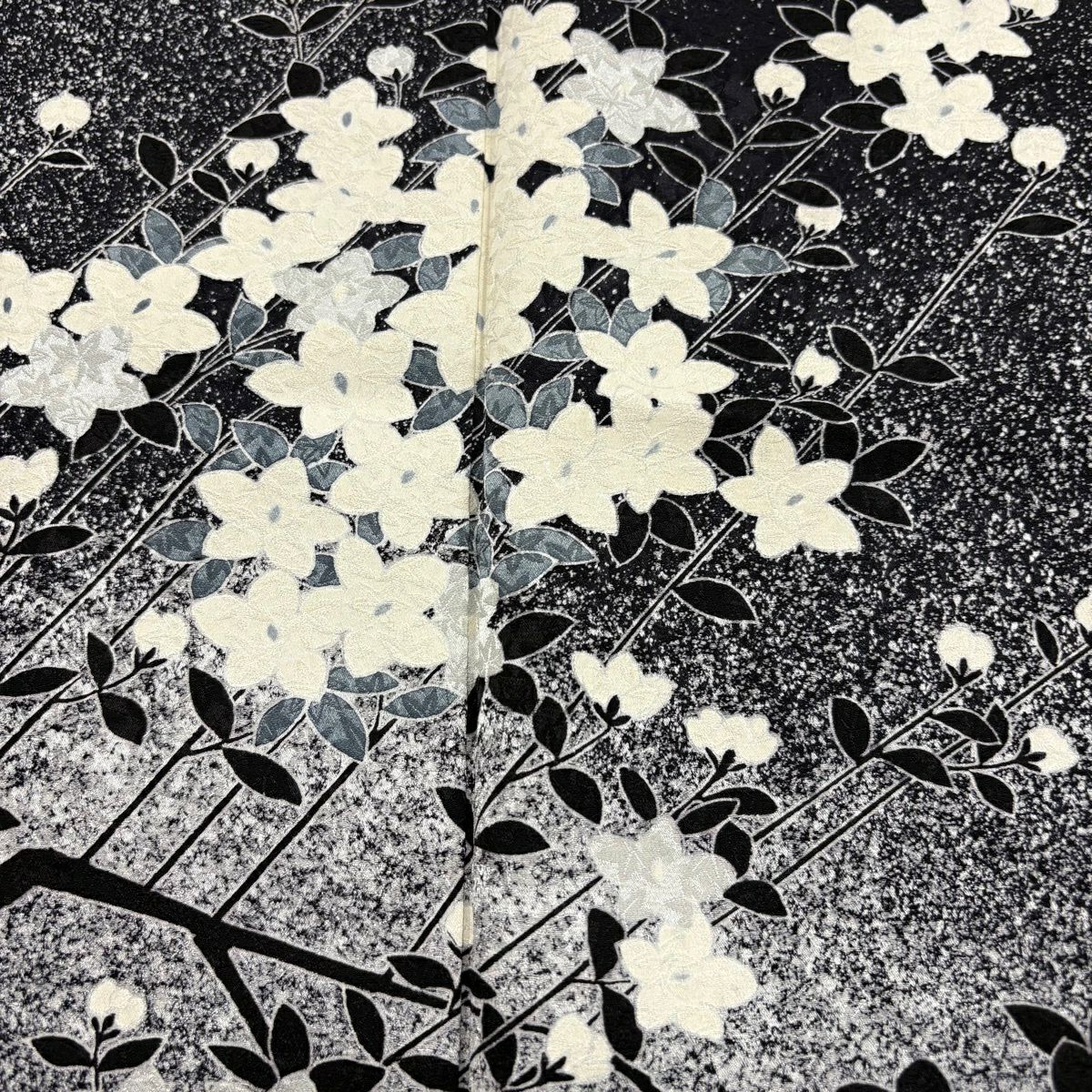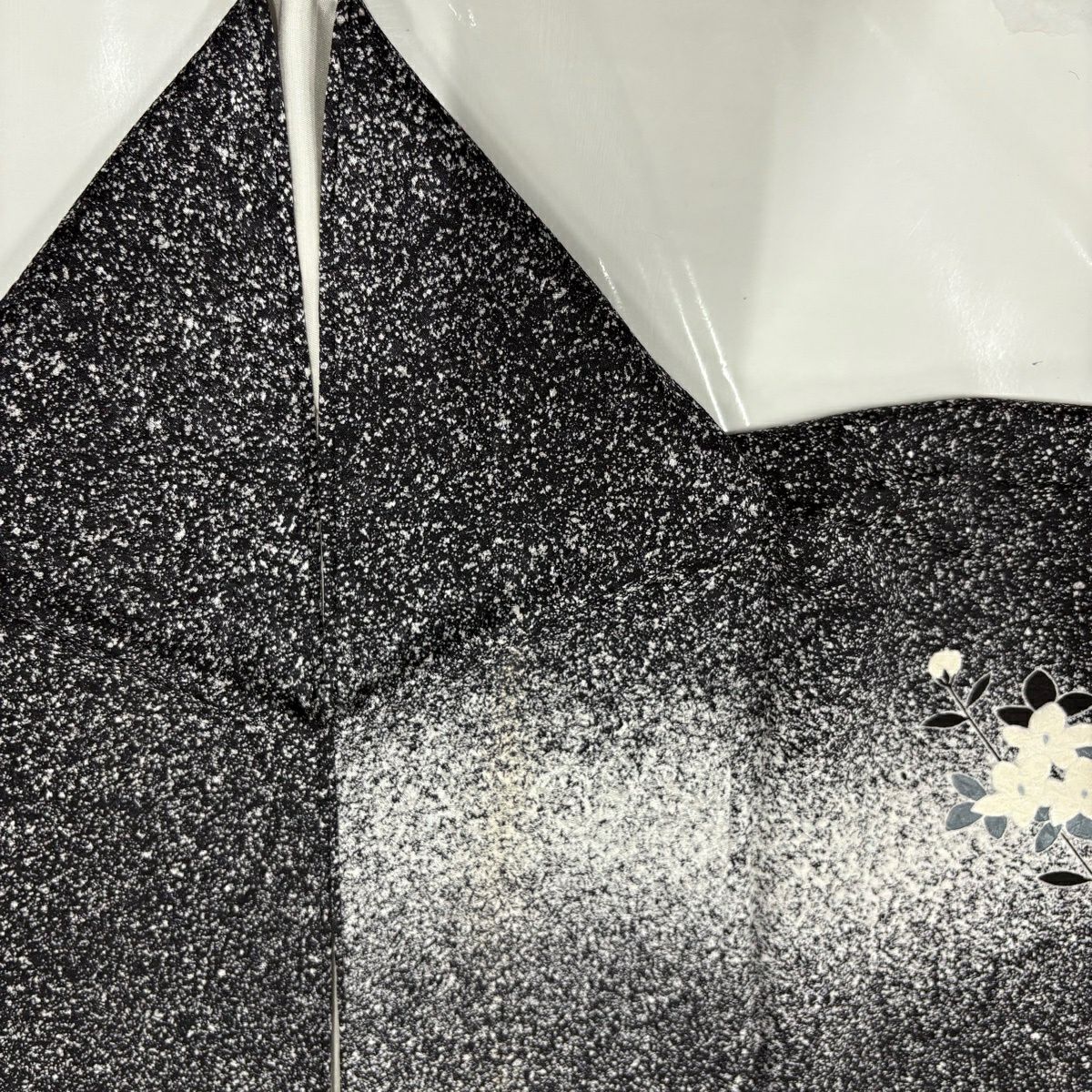 30%OFF 訪問着 身丈157.5cm 裄丈61.5cm S 袷 落款あり 枝花 幾何学 ぼかし 黒灰 正絹 秀品 K30