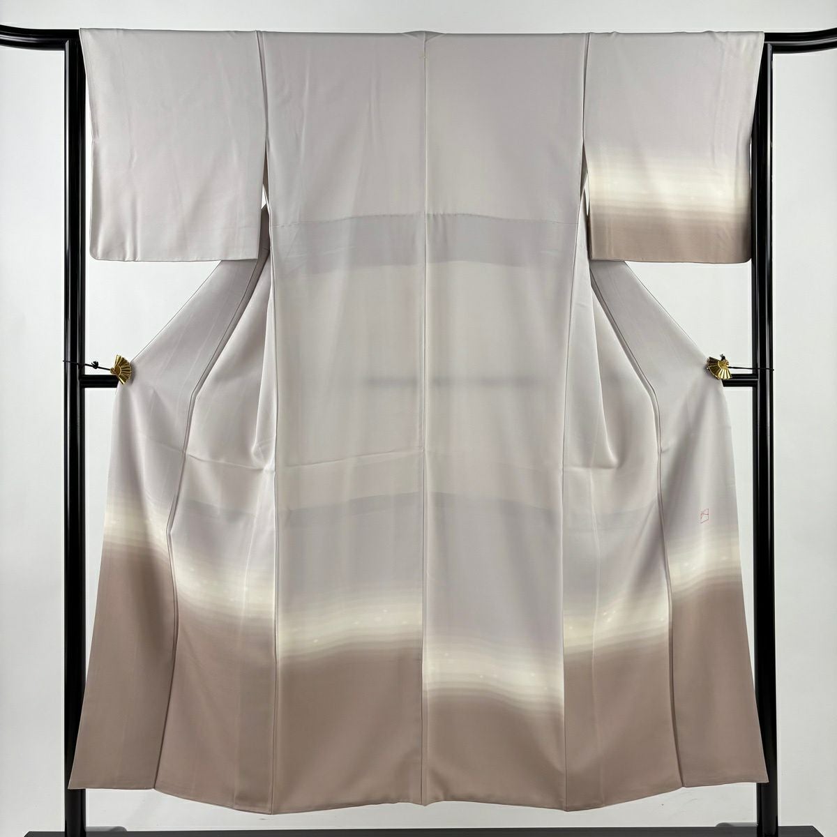 30%OFF 付下げ 身丈150.5cm 裄丈65cm M 袷 落款あり 蛍ぼかし 段縞 灰紫 正絹 秀品 一つ紋 K30