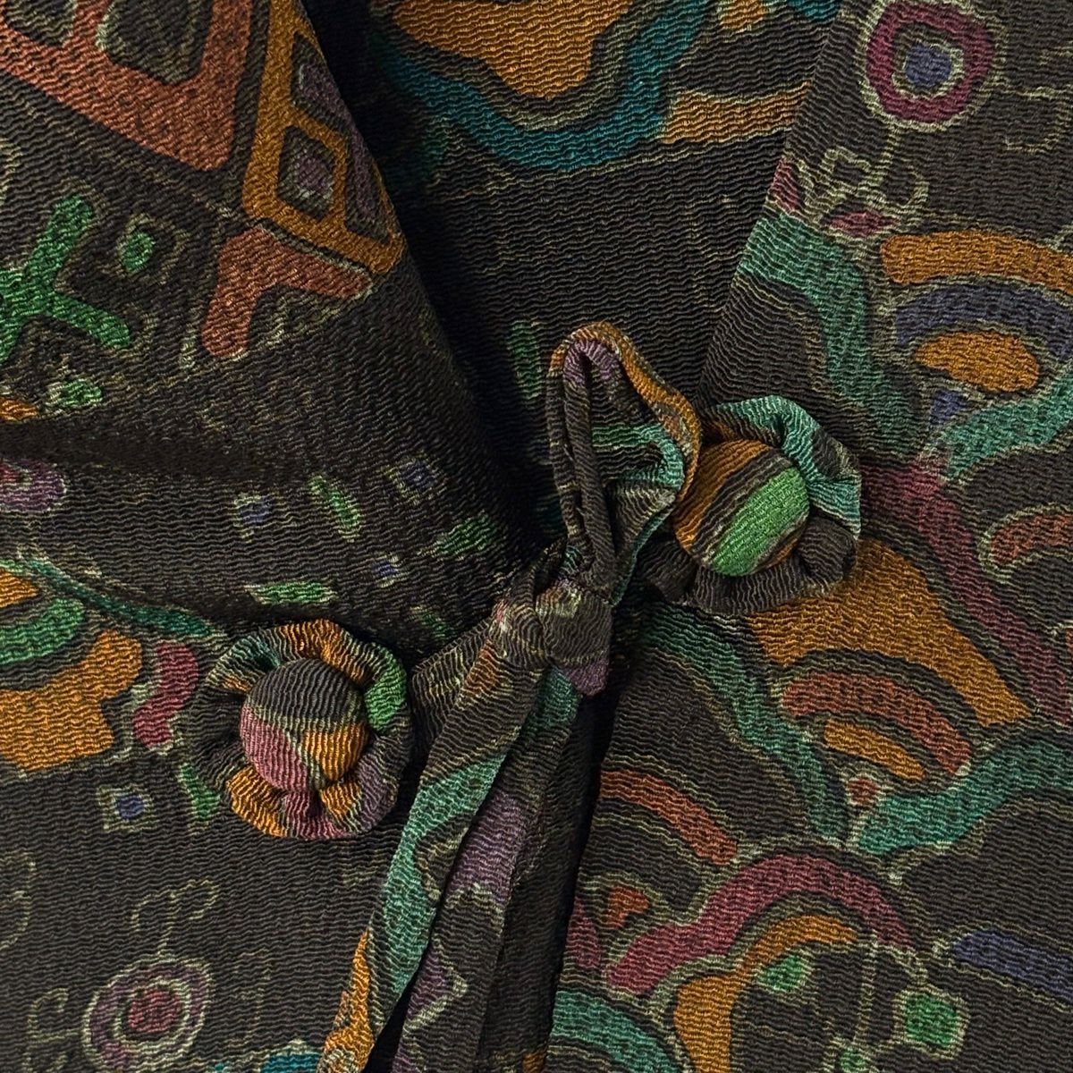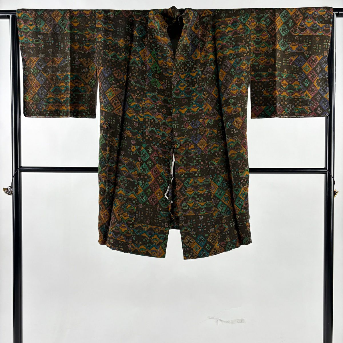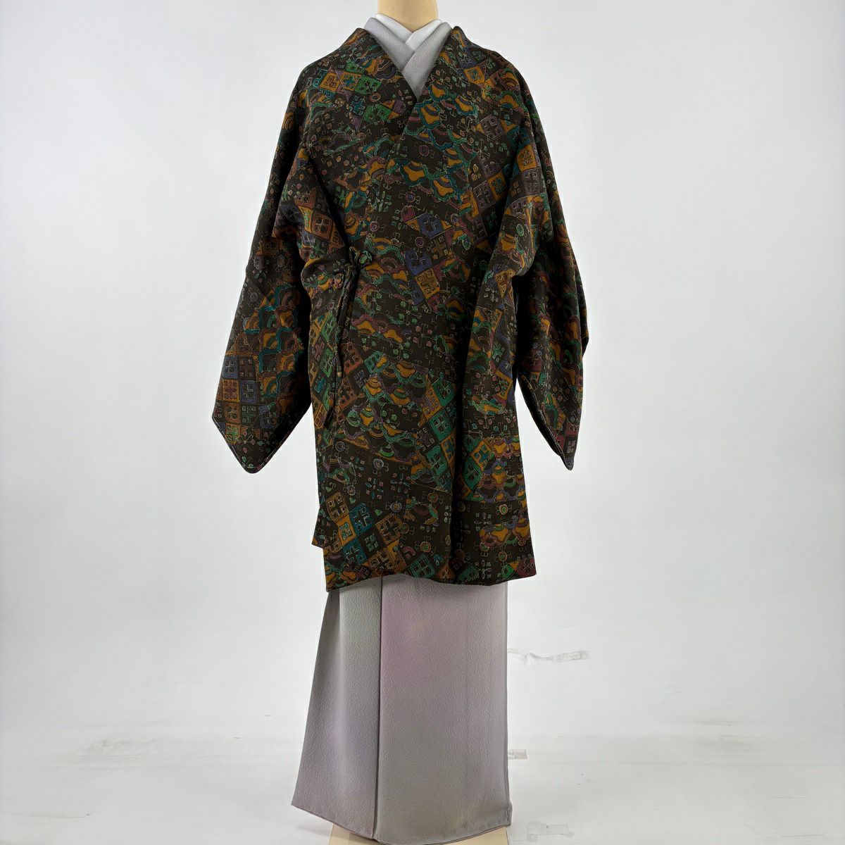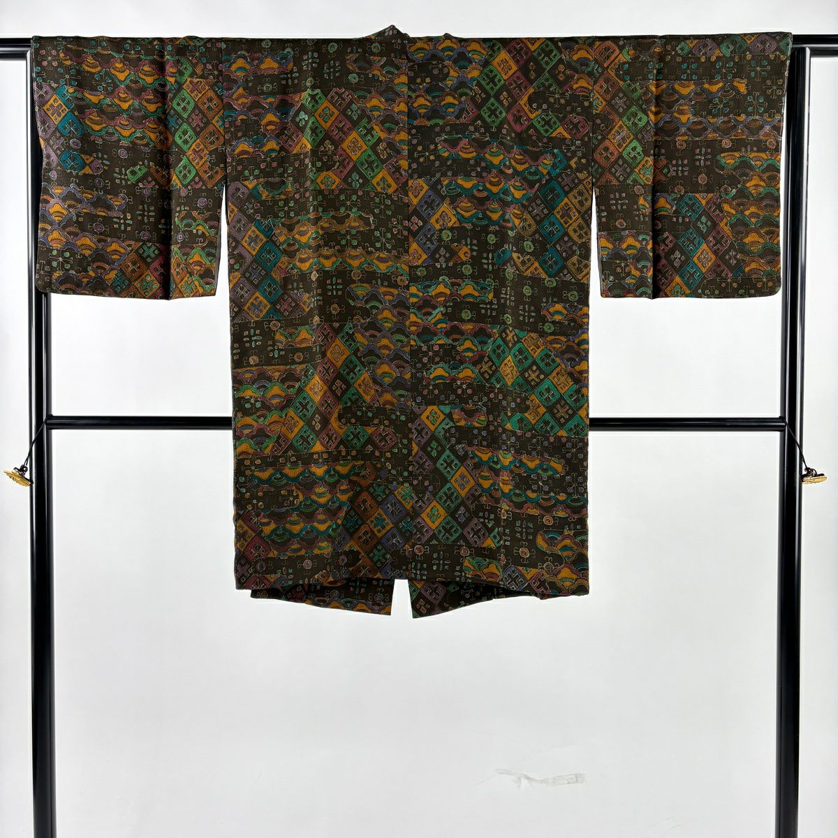 30%OFF 【美品】 道中着 身丈93cm 裄丈65cm M 和装コート 青海波 菱 縮緬 焦茶色 正絹 秀品 K30