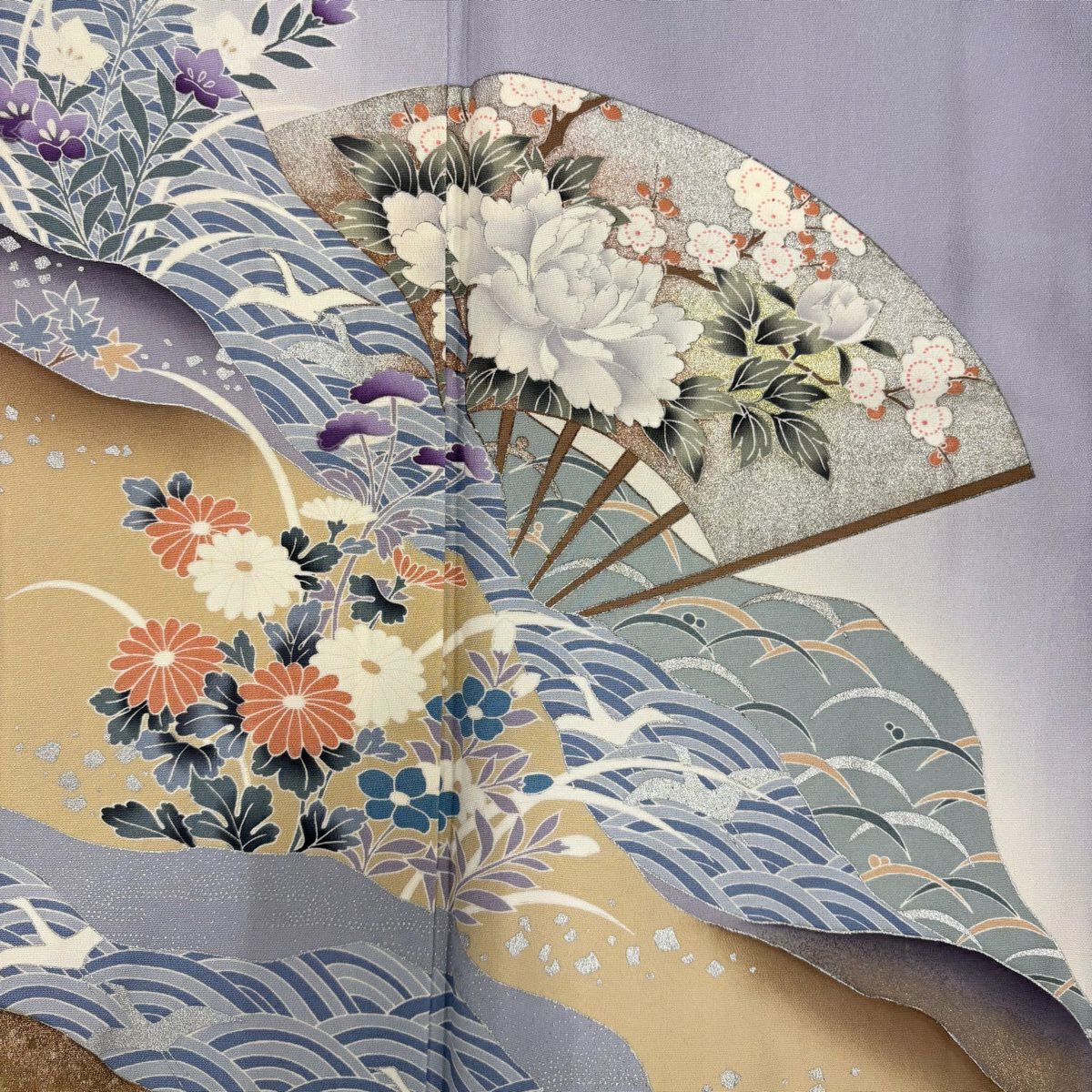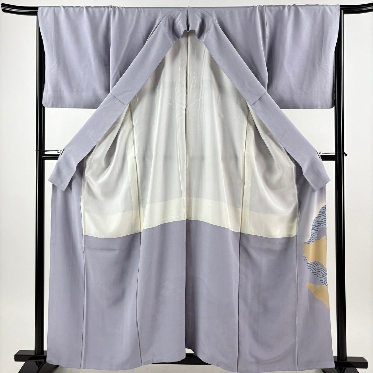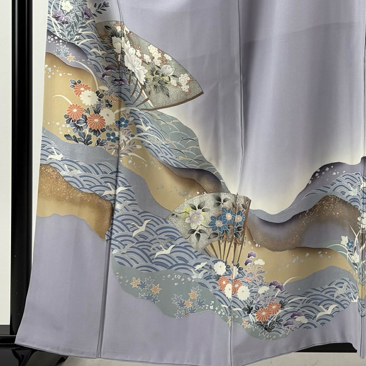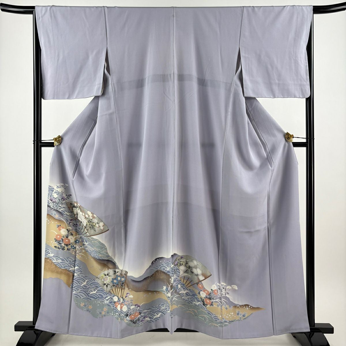 30%OFF 色留袖 身丈160.5cm 裄丈66cm M 袷 扇 波 金銀彩 ぼかし 薄紫 正絹 秀品 一つ紋 K30
