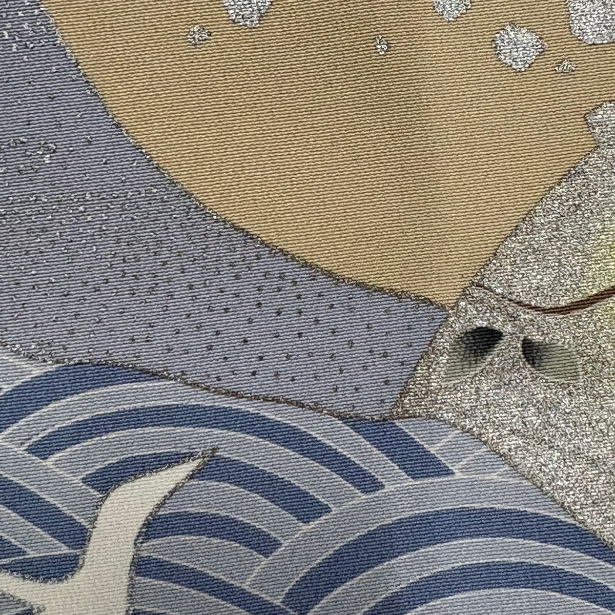 【美品】 付下げ 身丈159cm 裄丈64.5cm M 袷 名古屋帯セット 華文 草花 ぼかし 銀彩 青灰色 正絹 秀品