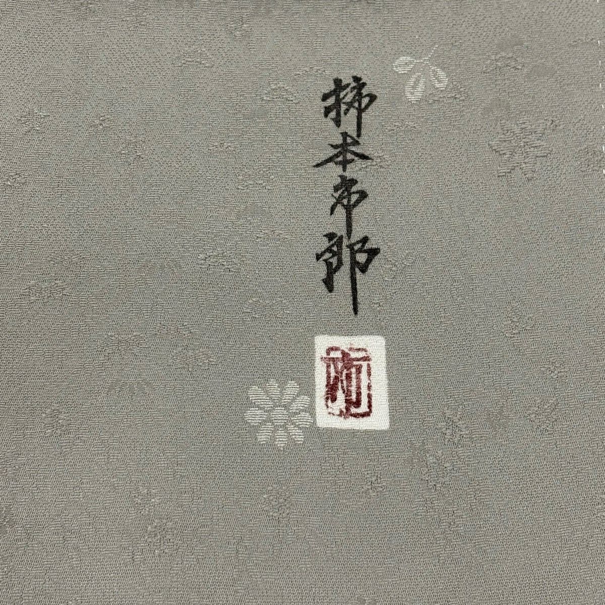 30%OFF 小紋 身丈152cm 裄丈65cm M 袷 柿本市郎 落款あり 花 地紋 灰色 正絹 秀品 一つ紋 K30