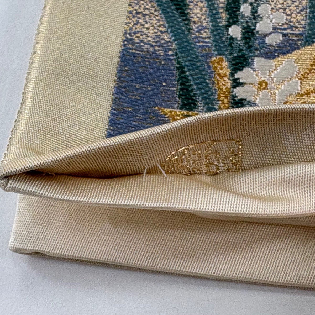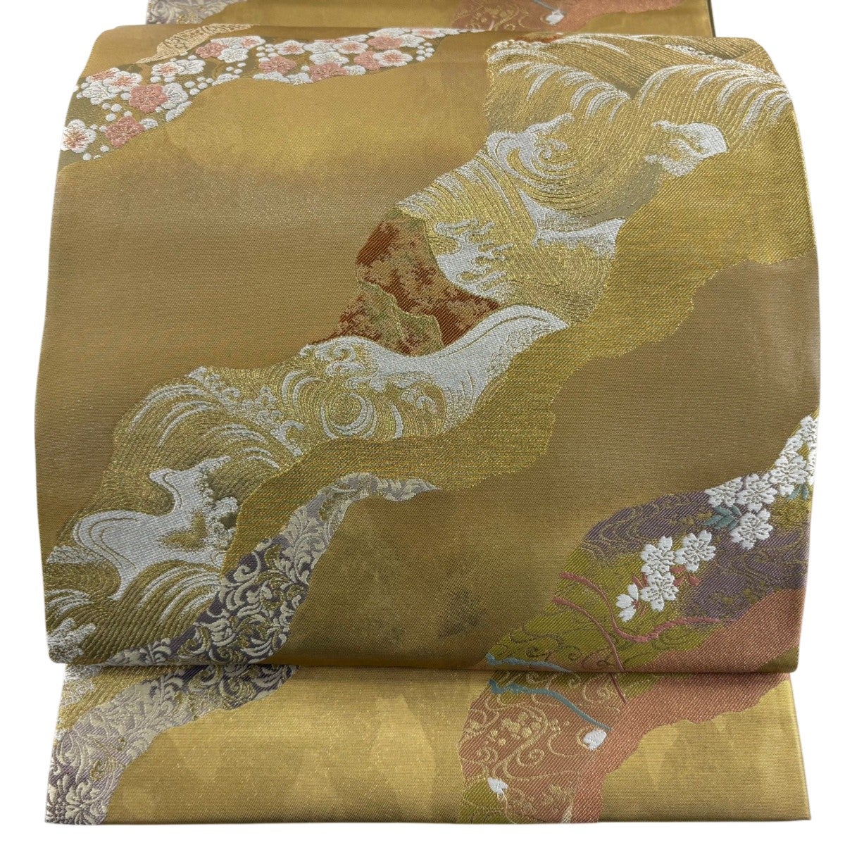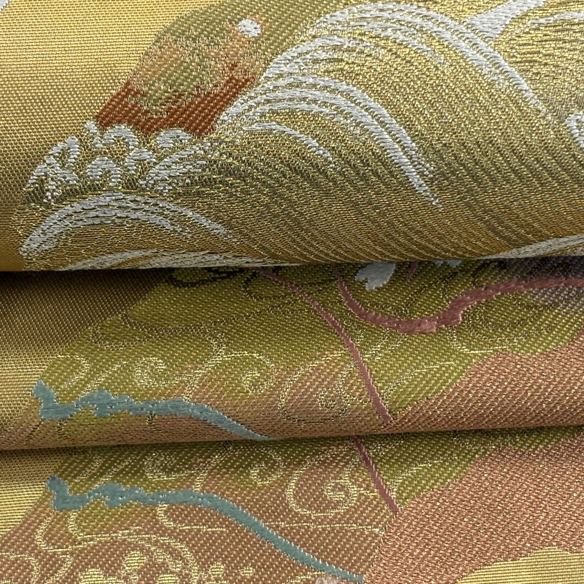 【美品】 袋帯 秀品 道長取り 波 金糸 箔 金色 六通 正絹