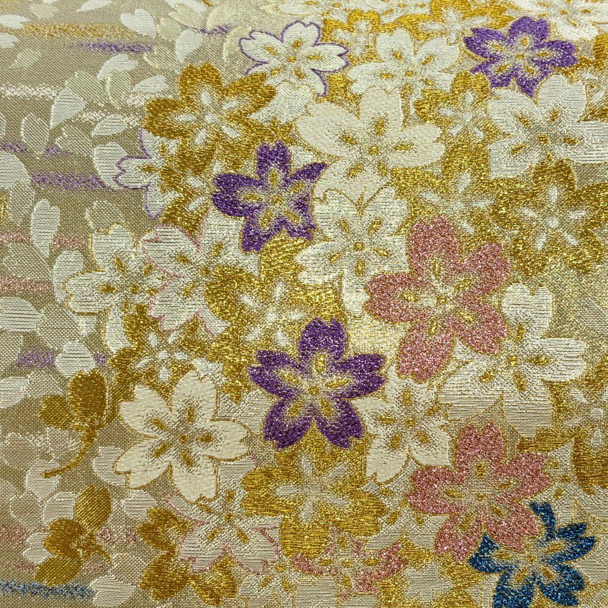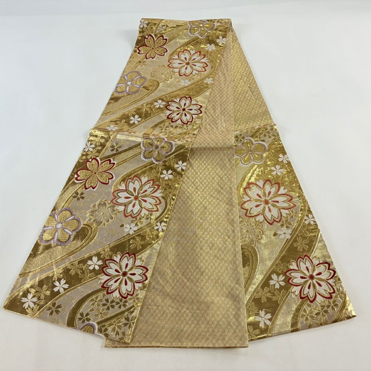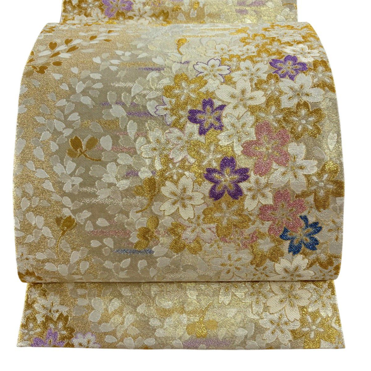 【美品】 袋帯 秀品 桜 花びら 金銀糸 箔 金色 六通 正絹