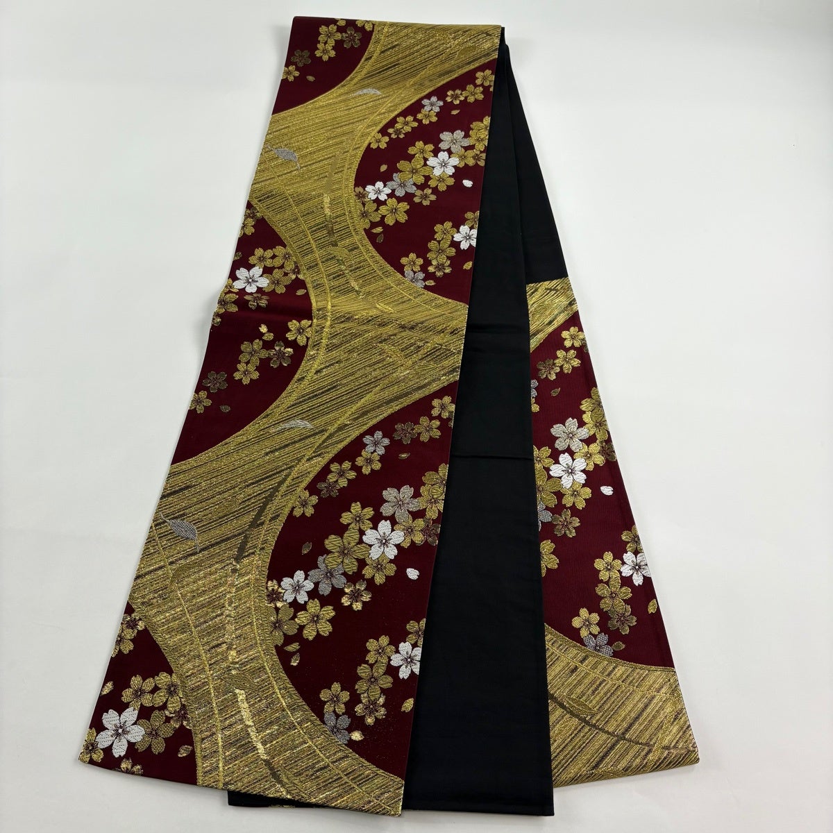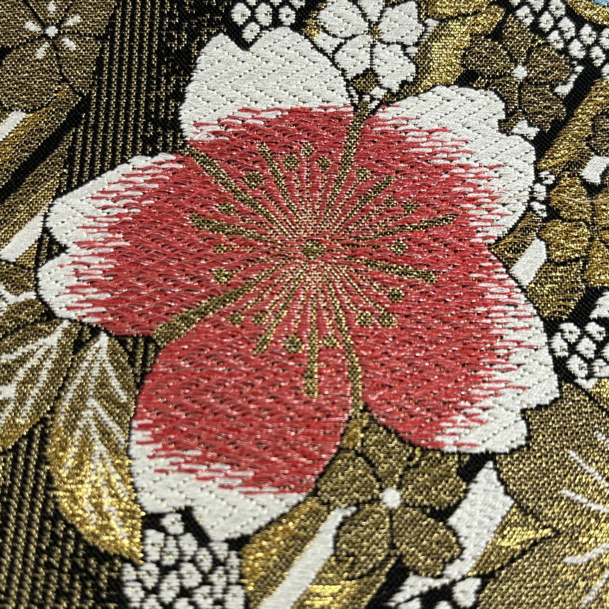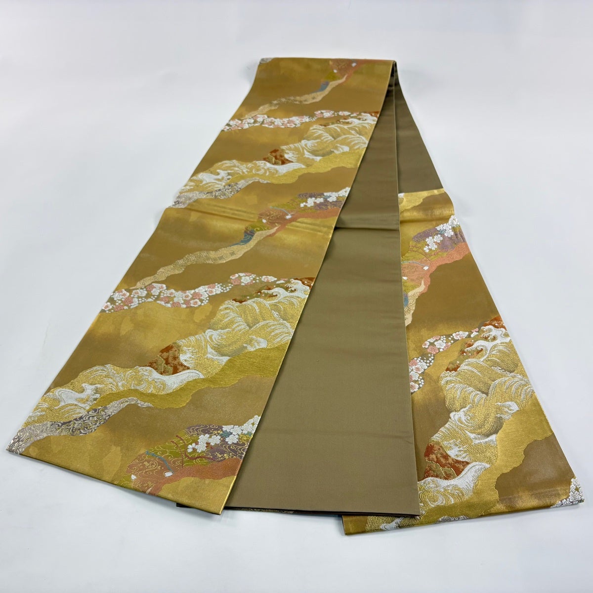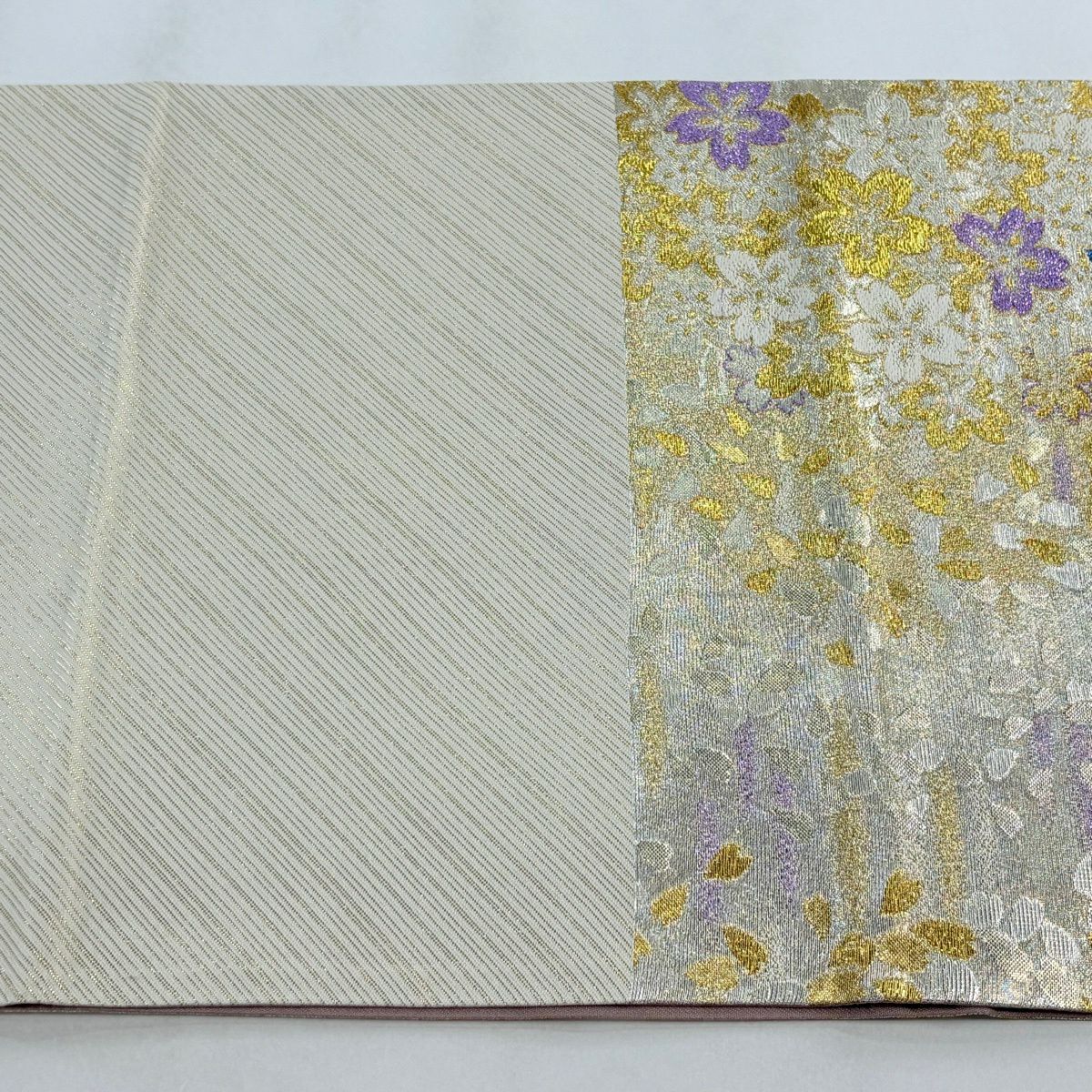 【美品】 袋帯 秀品 桜 花びら 金銀糸 箔 金色 六通 正絹