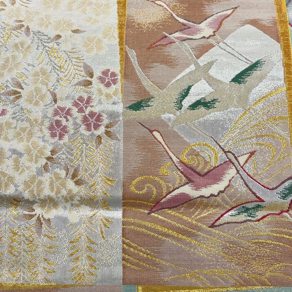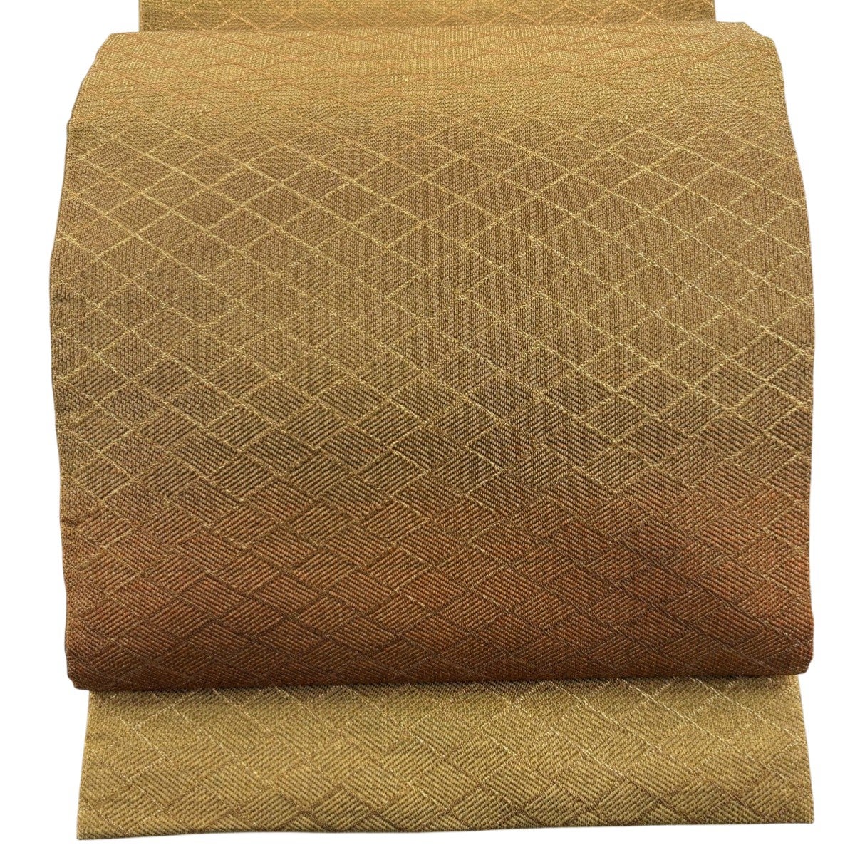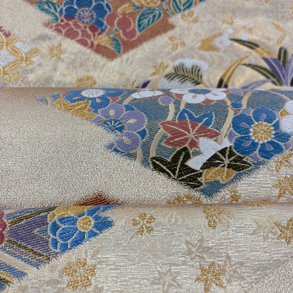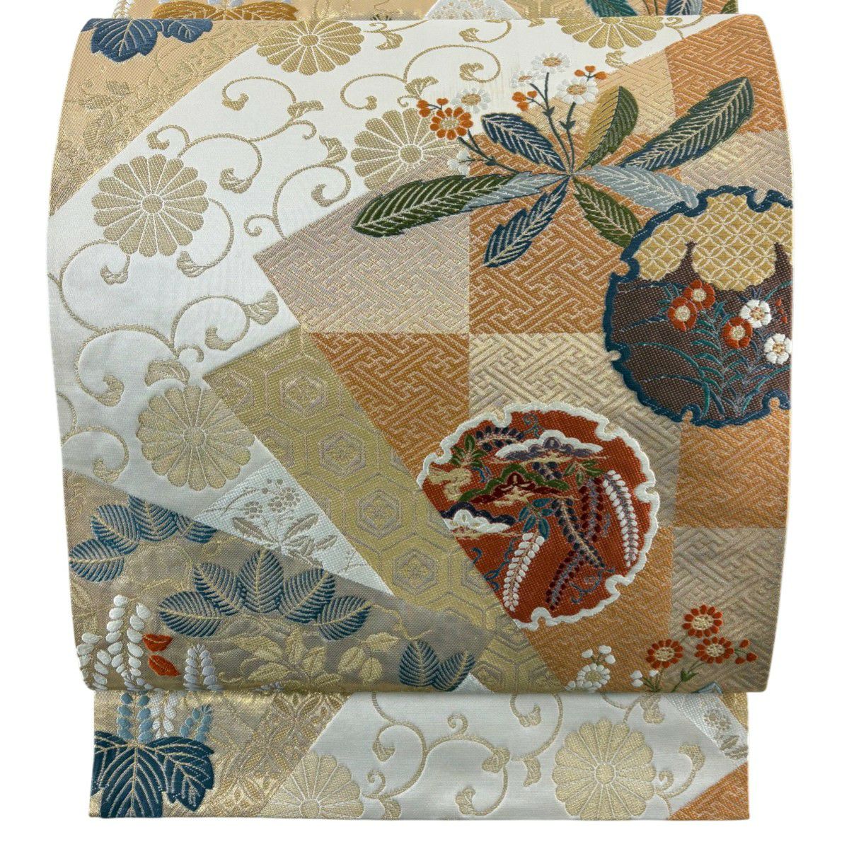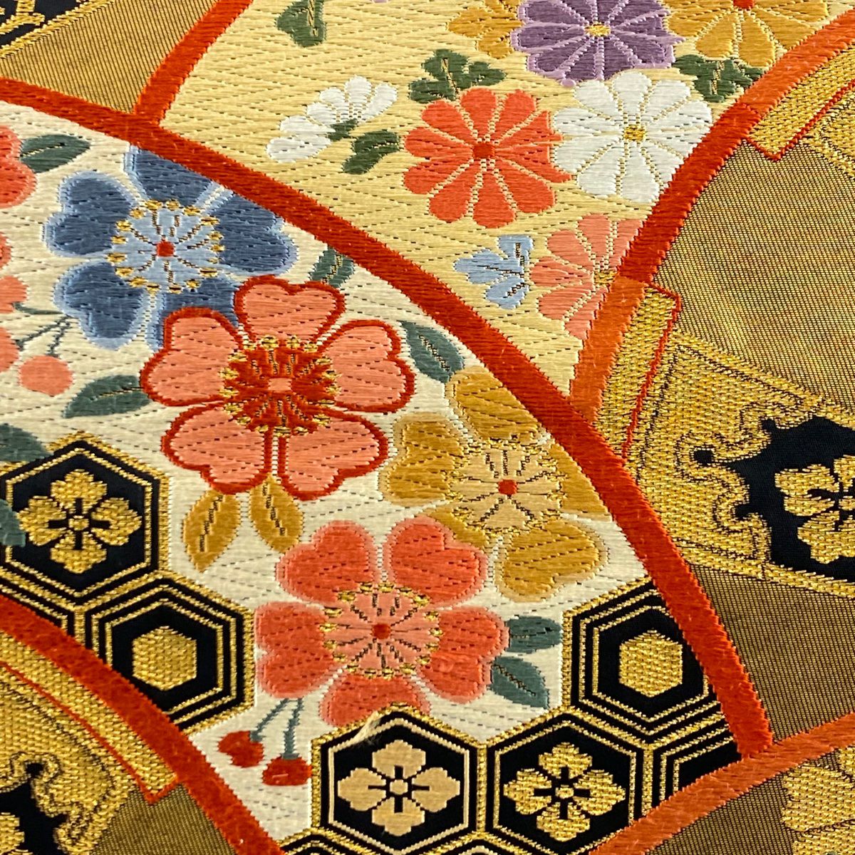 袋帯 秀品 面総柄全通 市松 花びら 金糸 箔 金色 全通 正絹