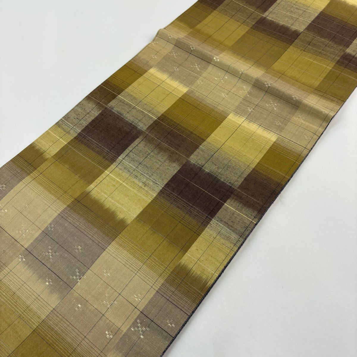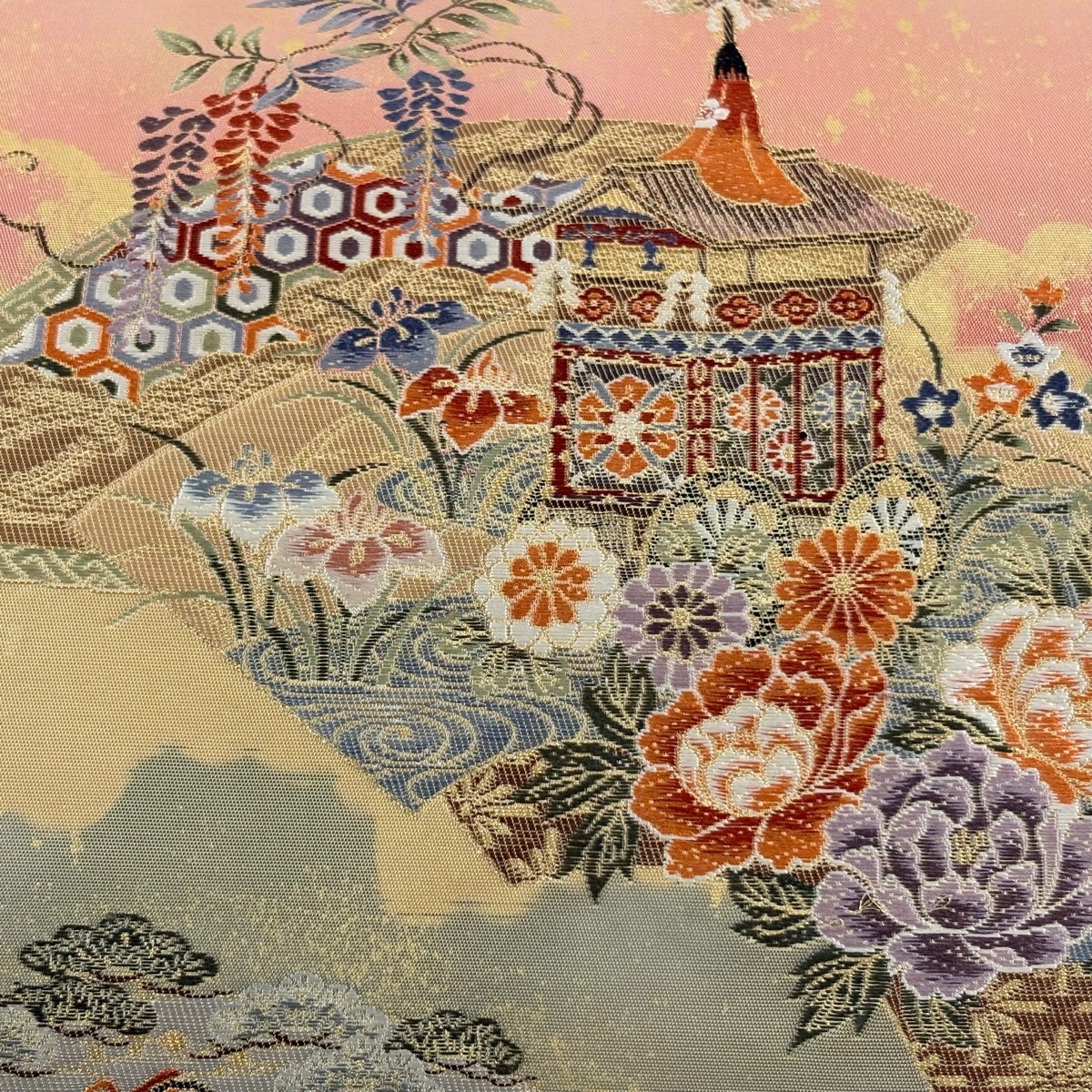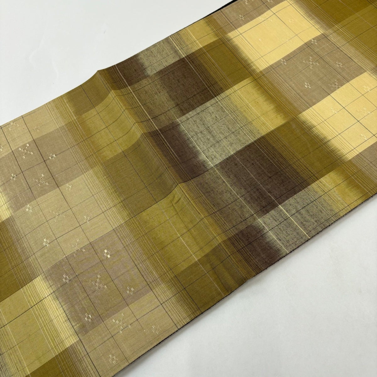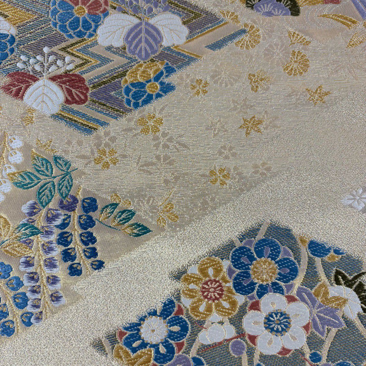 袋帯 秀品 面総柄全通 市松 花びら 金糸 箔 金色 全通 正絹