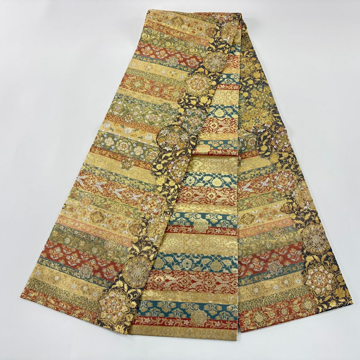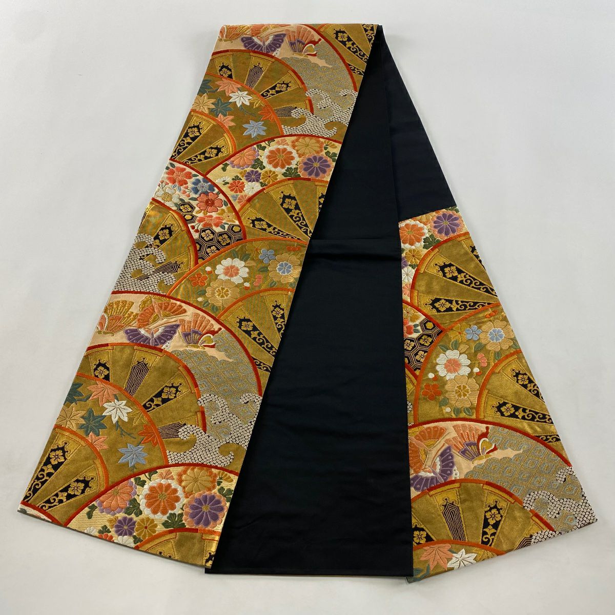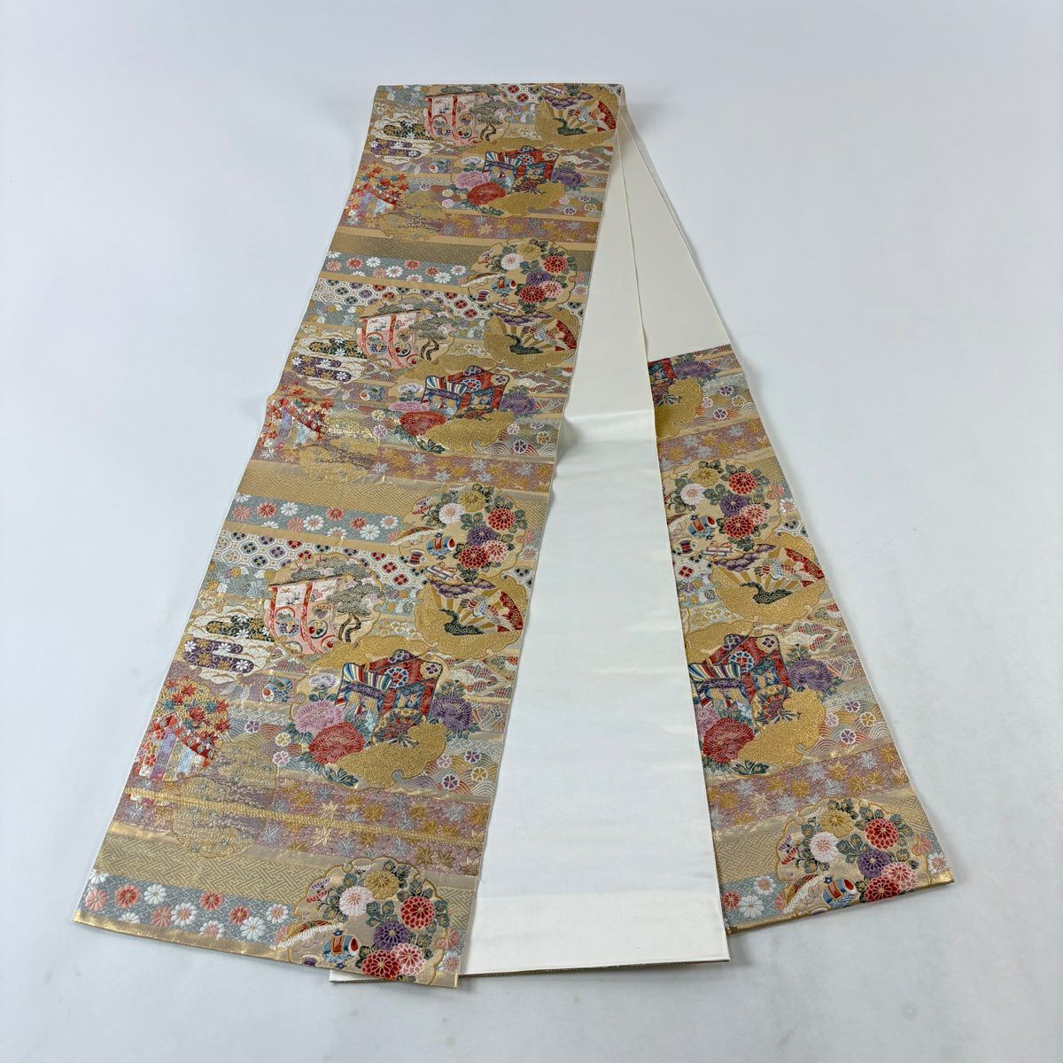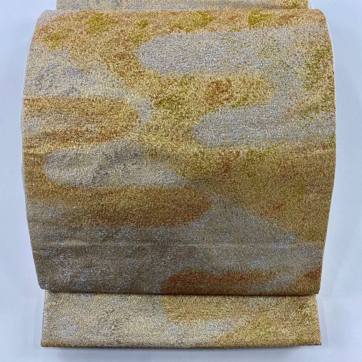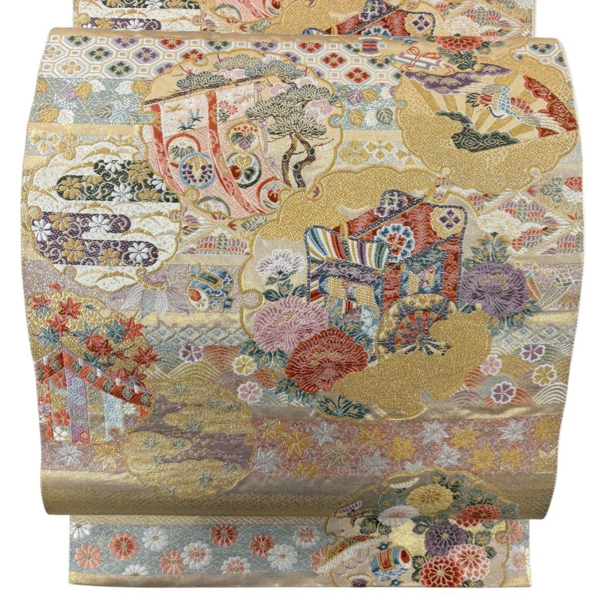 【美品】 袋帯 秀品 華文 横段 金銀糸 箔 金色 六通 正絹