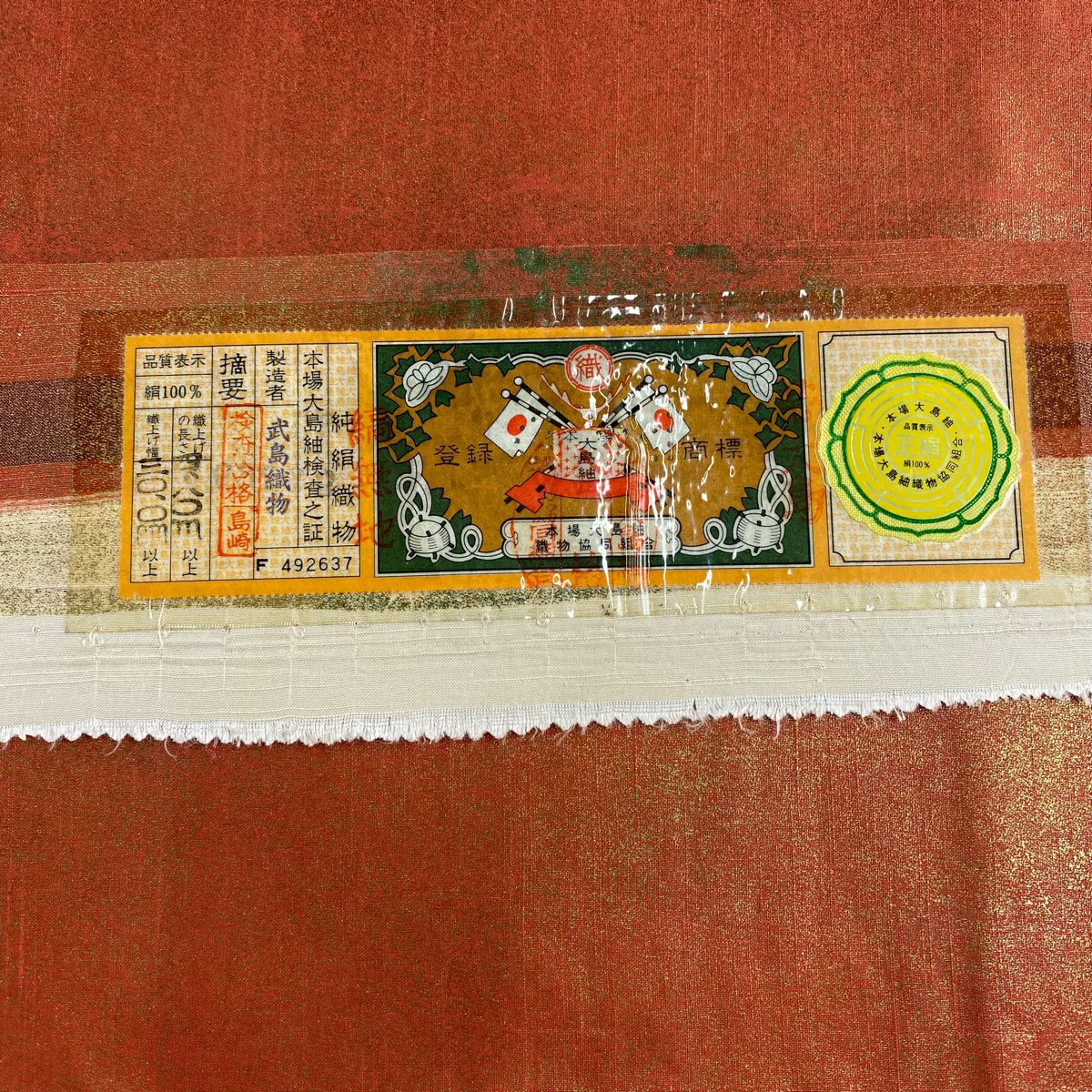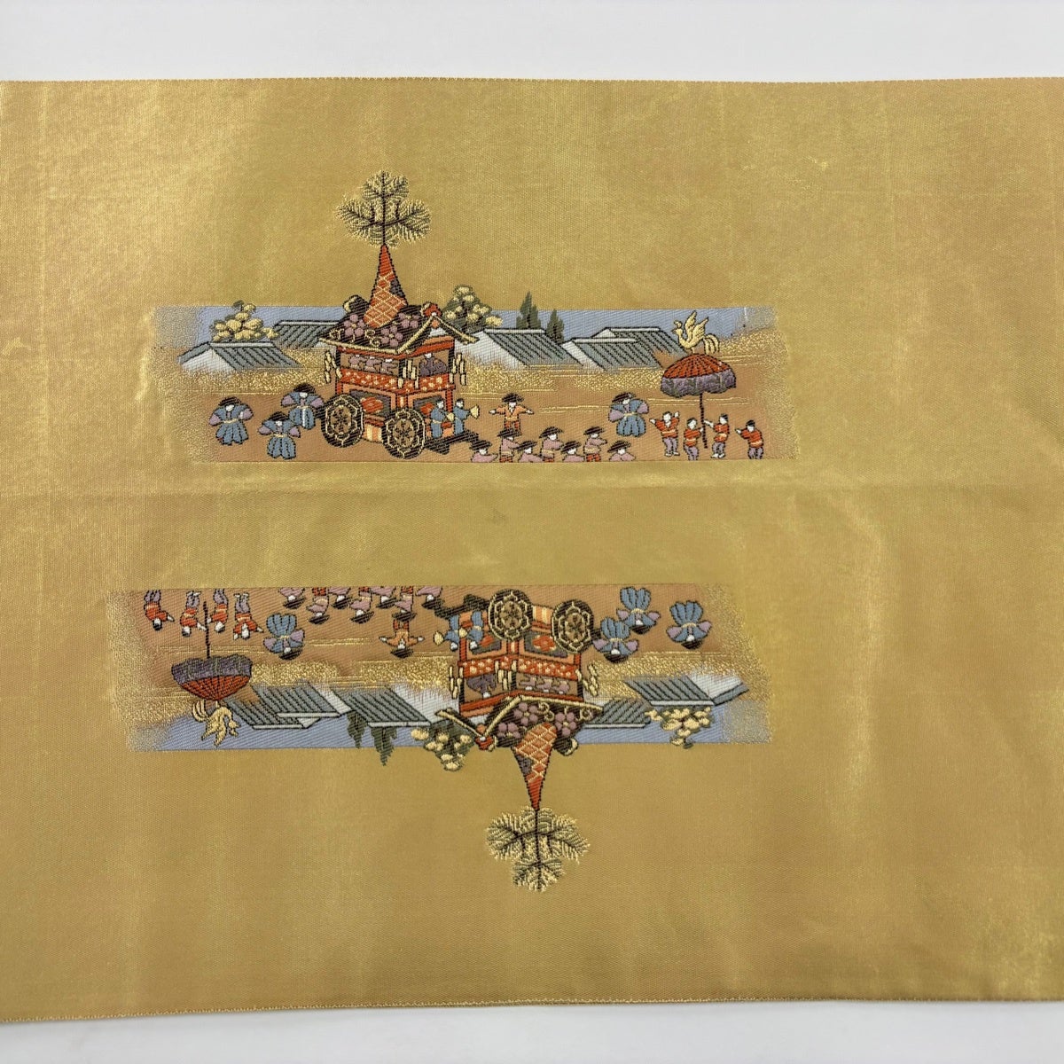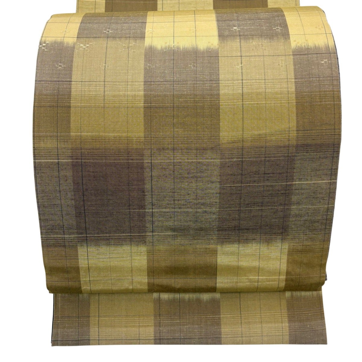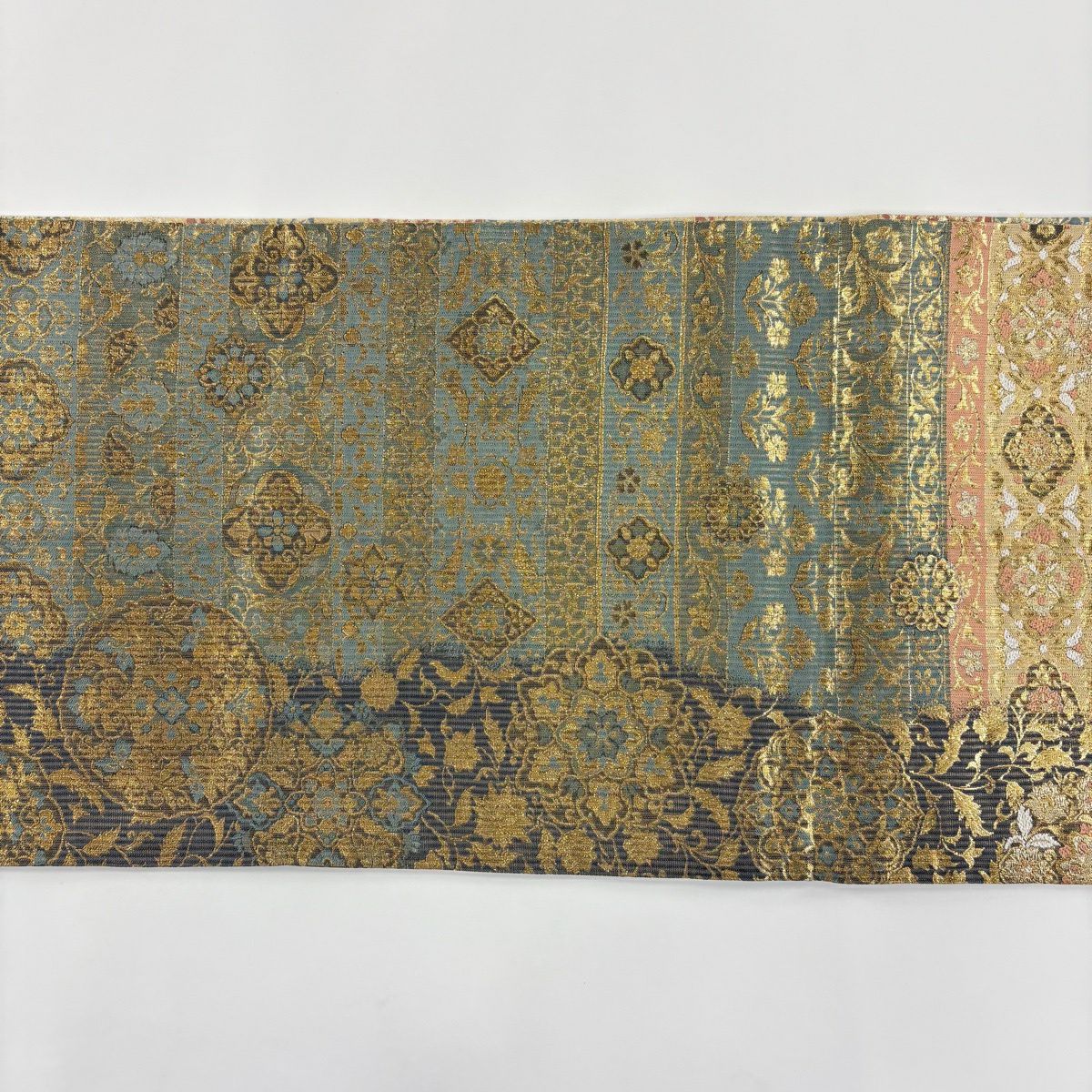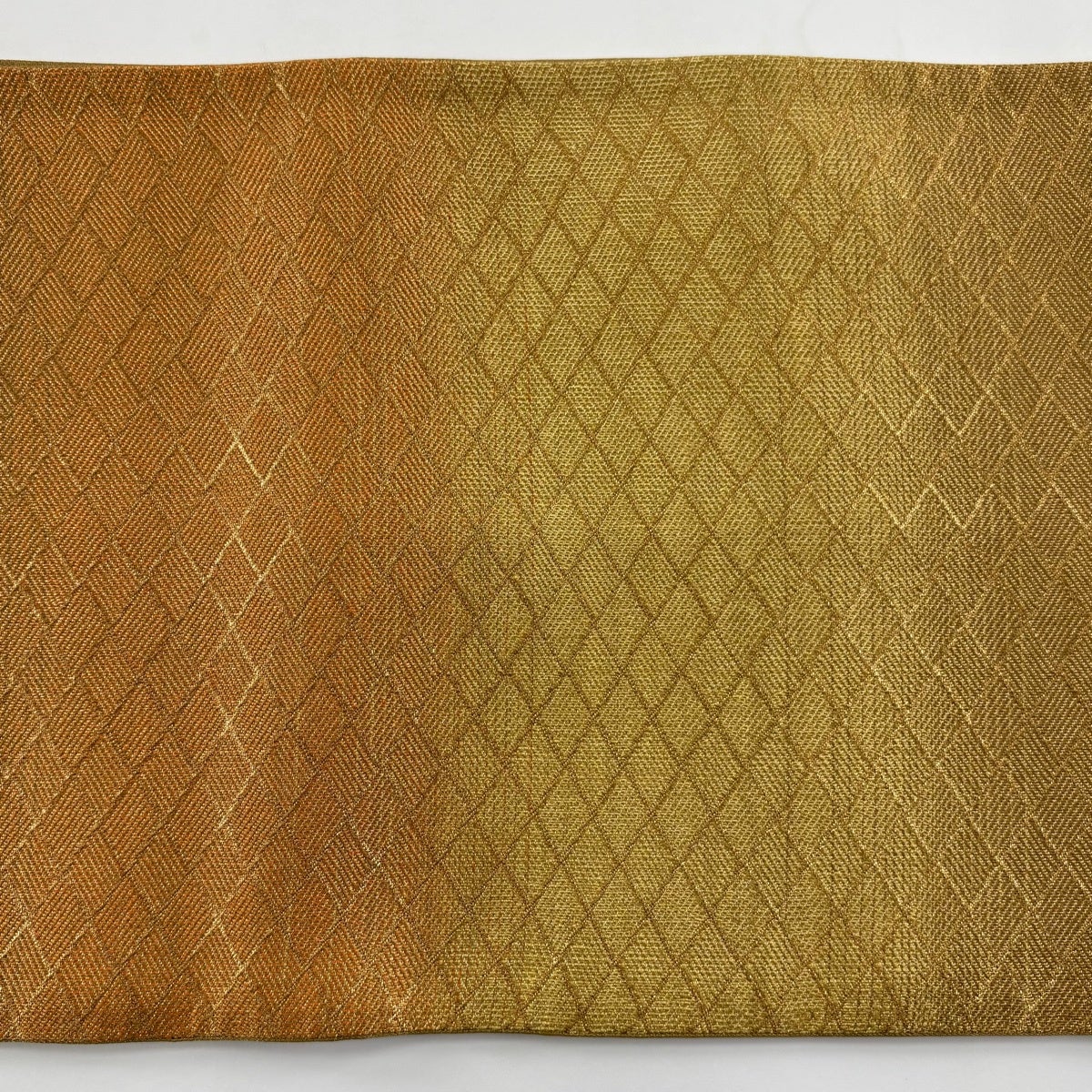 【美品】 袋帯 秀品 華文 横段 金銀糸 箔 金色 六通 正絹