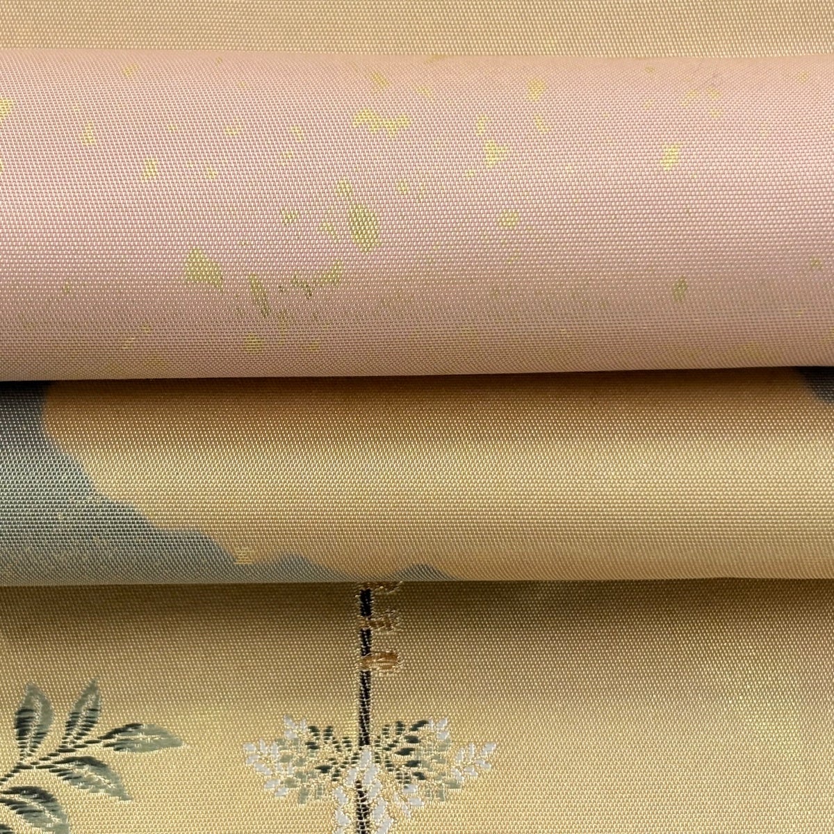【美品】 袋帯 秀品 振袖向き 花 金糸 箔 金色 六通 正絹