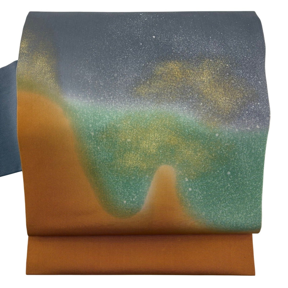 【美品】 袋帯 秀品 やまと ぼかし柄 箔 墨色 全通 正絹
