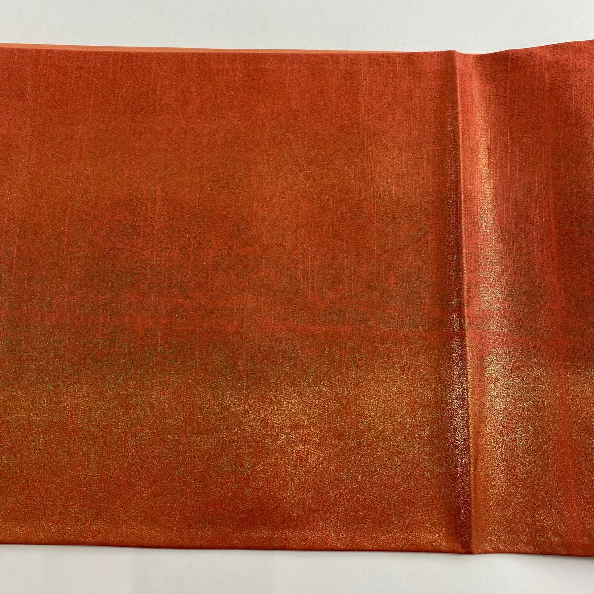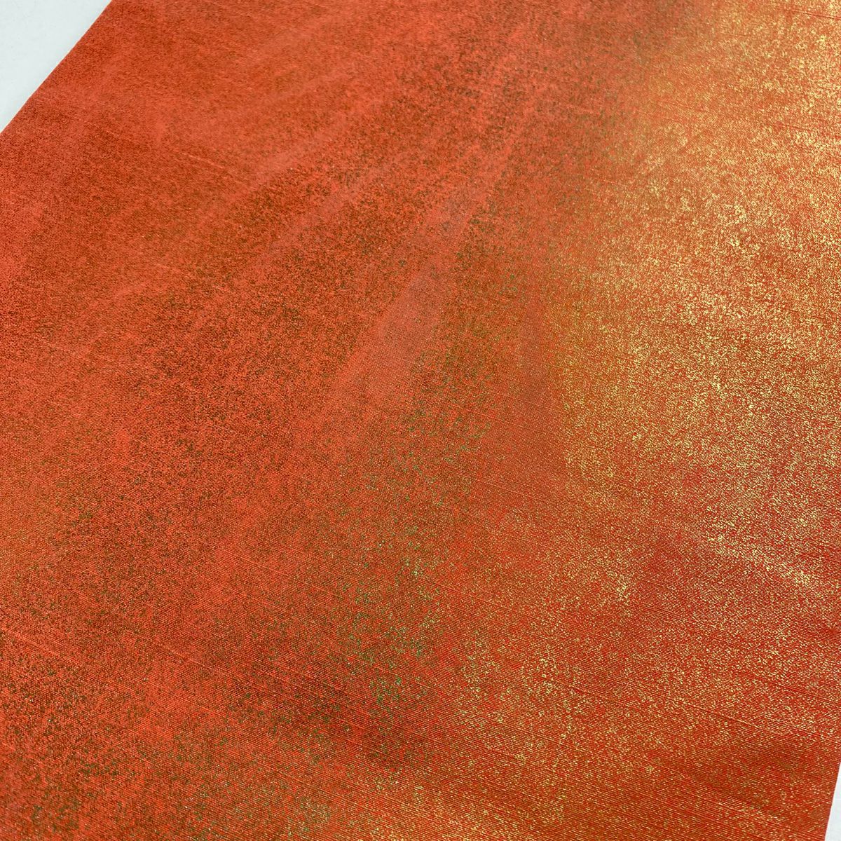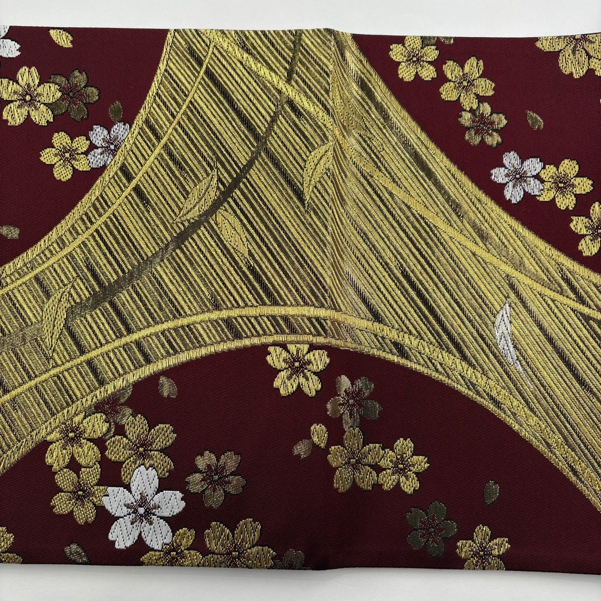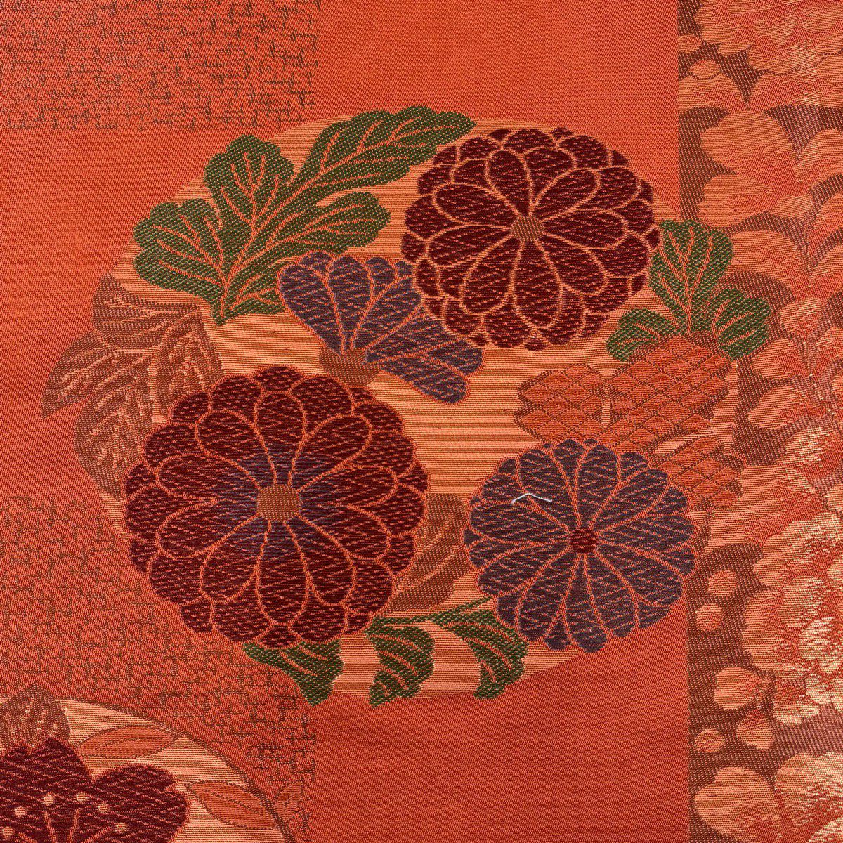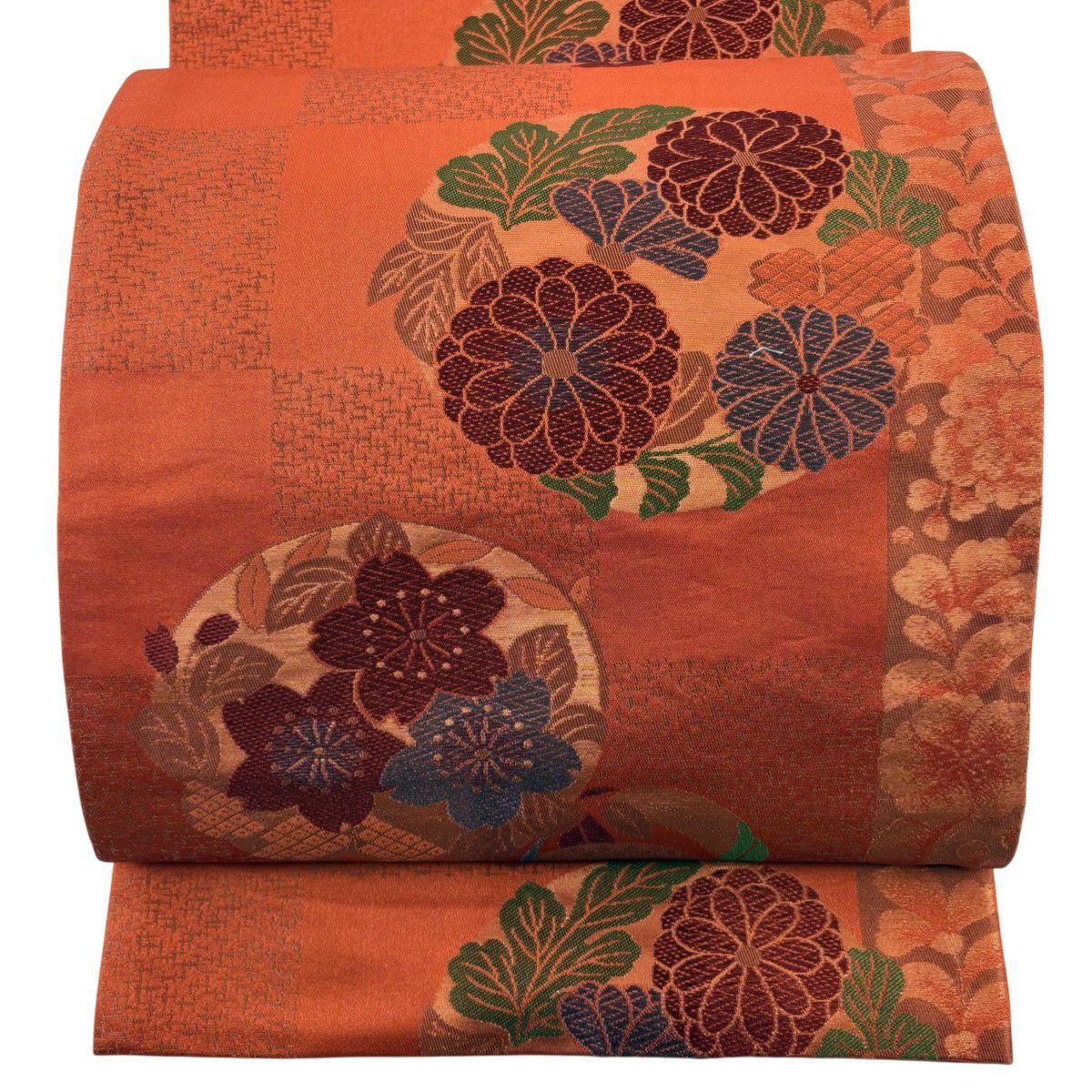 【美品】 袋名古屋帯 秀品 花丸文 菊 箔 唐織 茜色 正絹