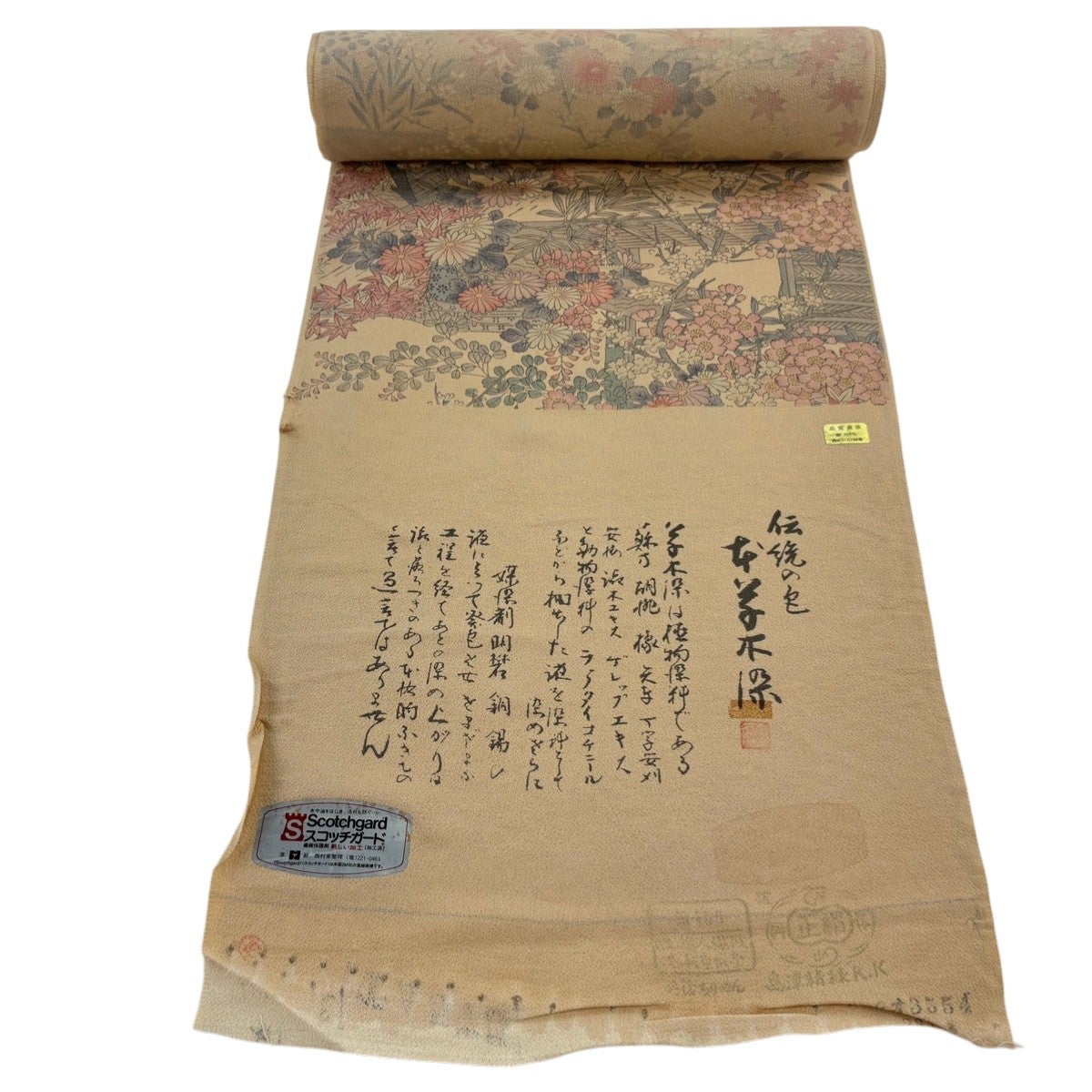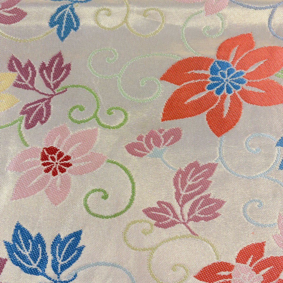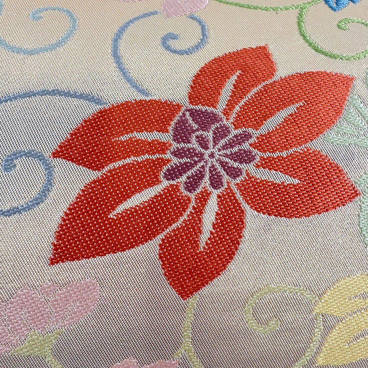 袋帯 秀品 花丸文 牡丹 唐織 箔 ベージュ 六通 正絹