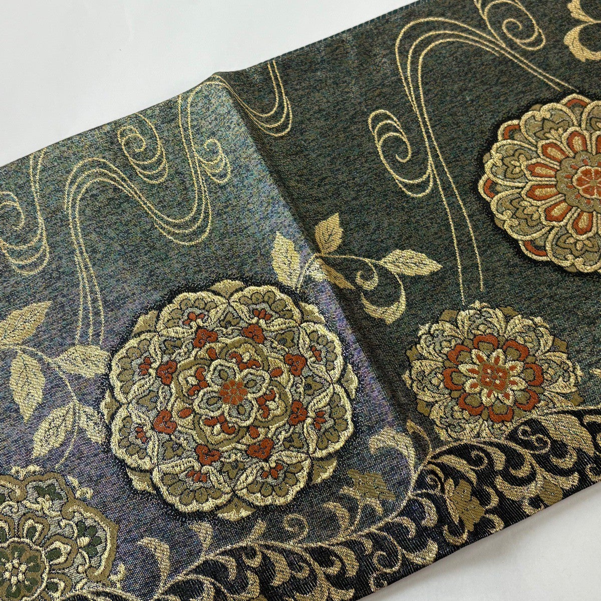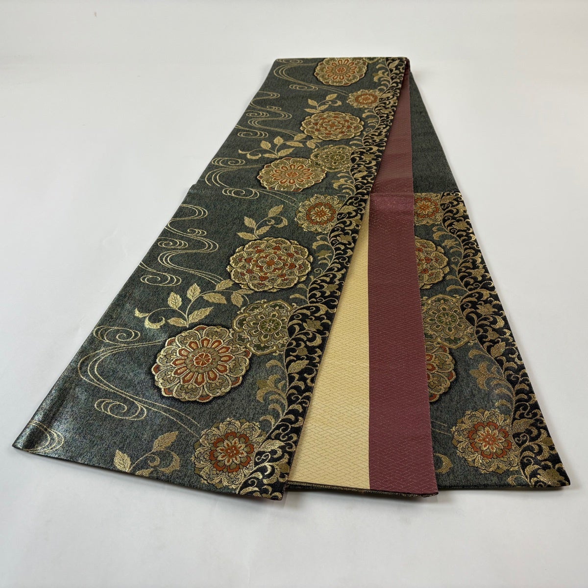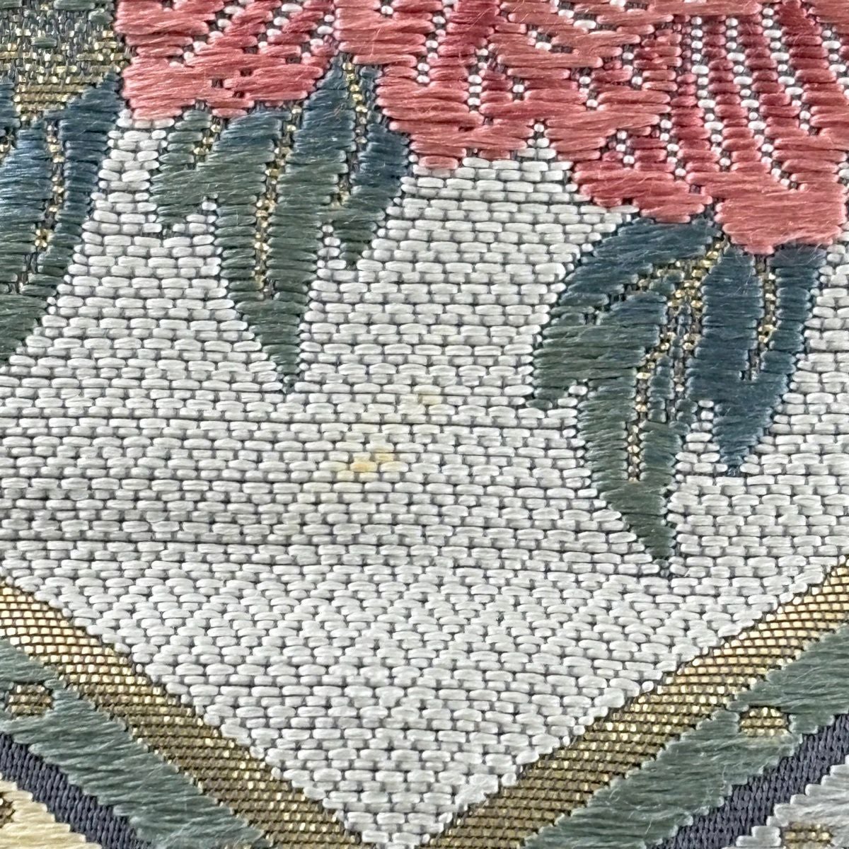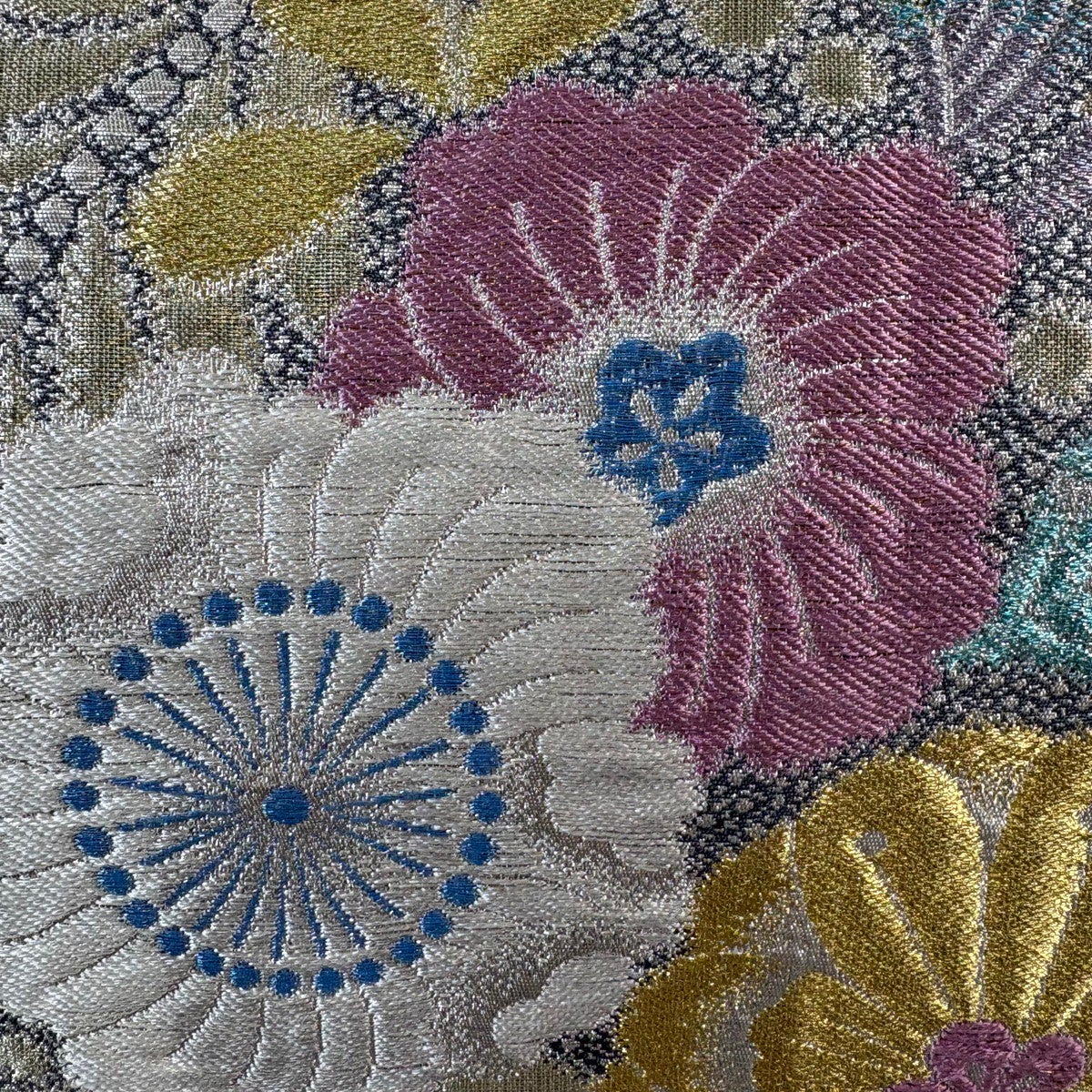【美品】 袋帯 秀品 秋草 七宝 金糸 箔 灰色 六通 正絹