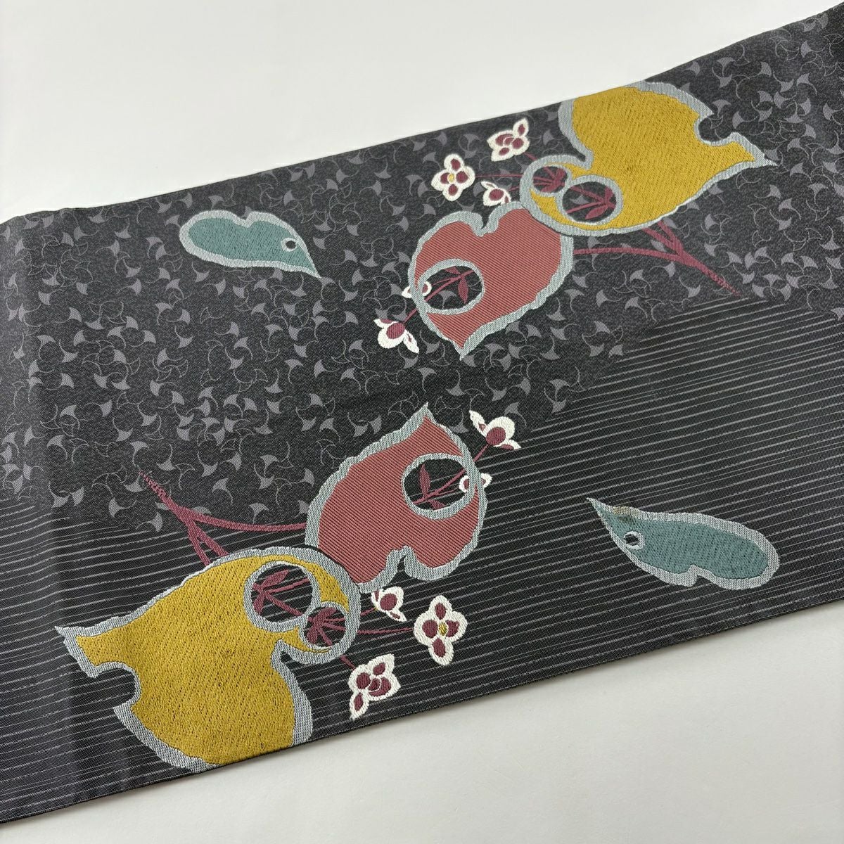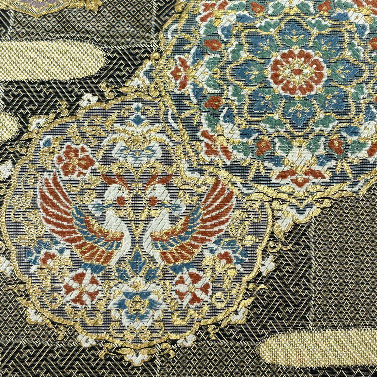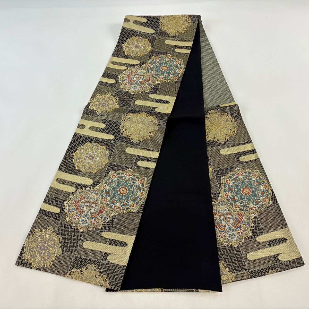 【美品】 袋帯 秀品 華文 向かい鳥 金糸 墨色 六通 正絹