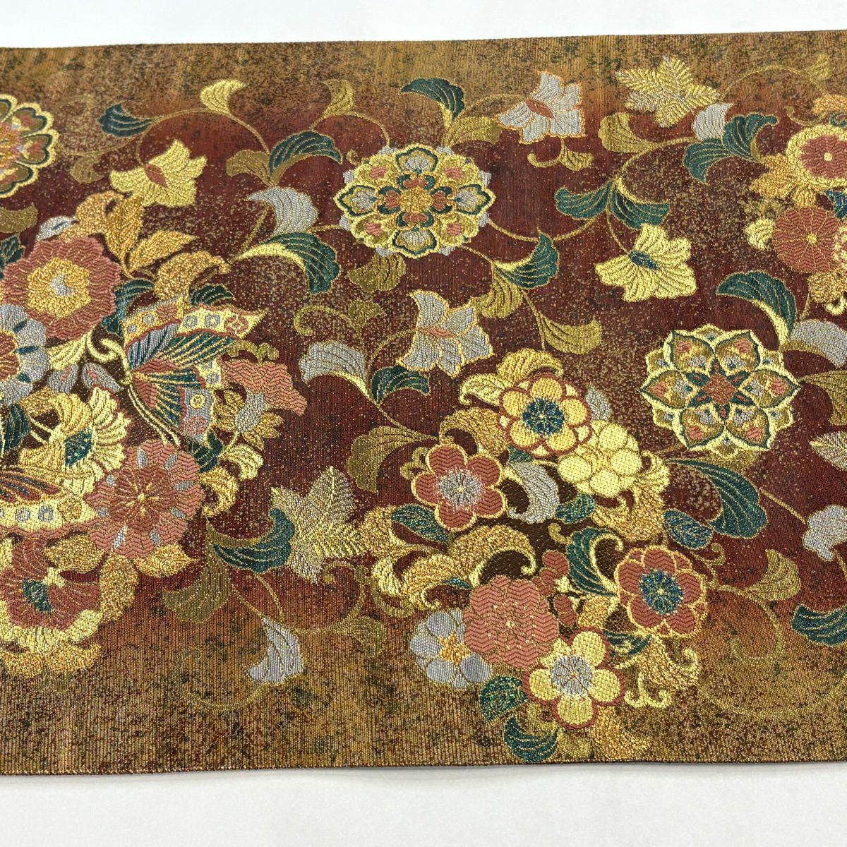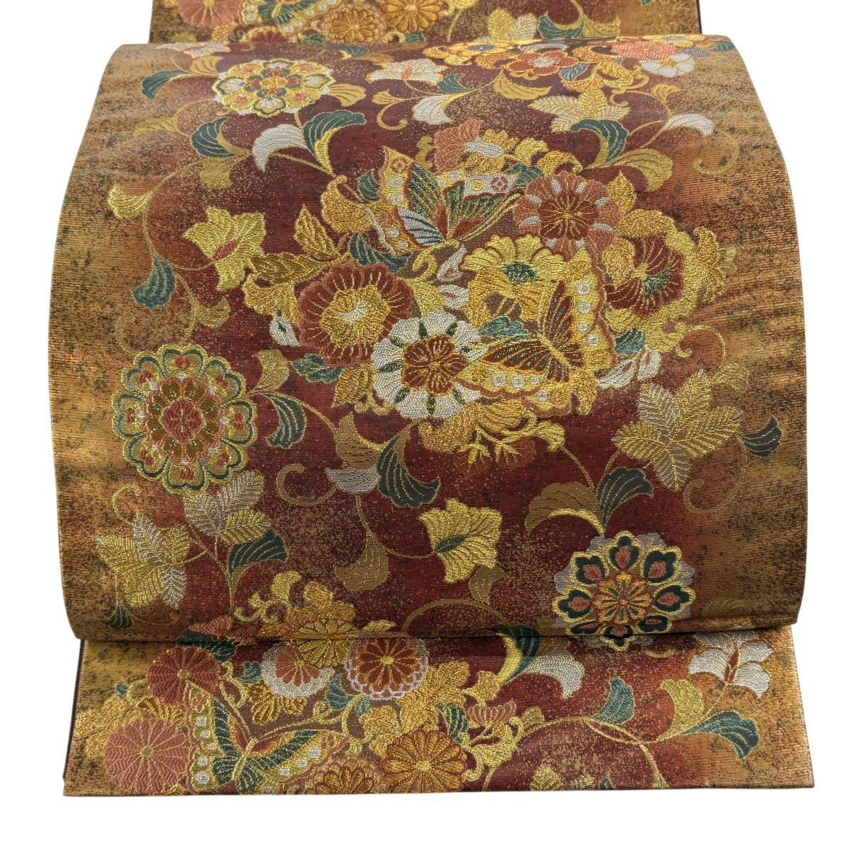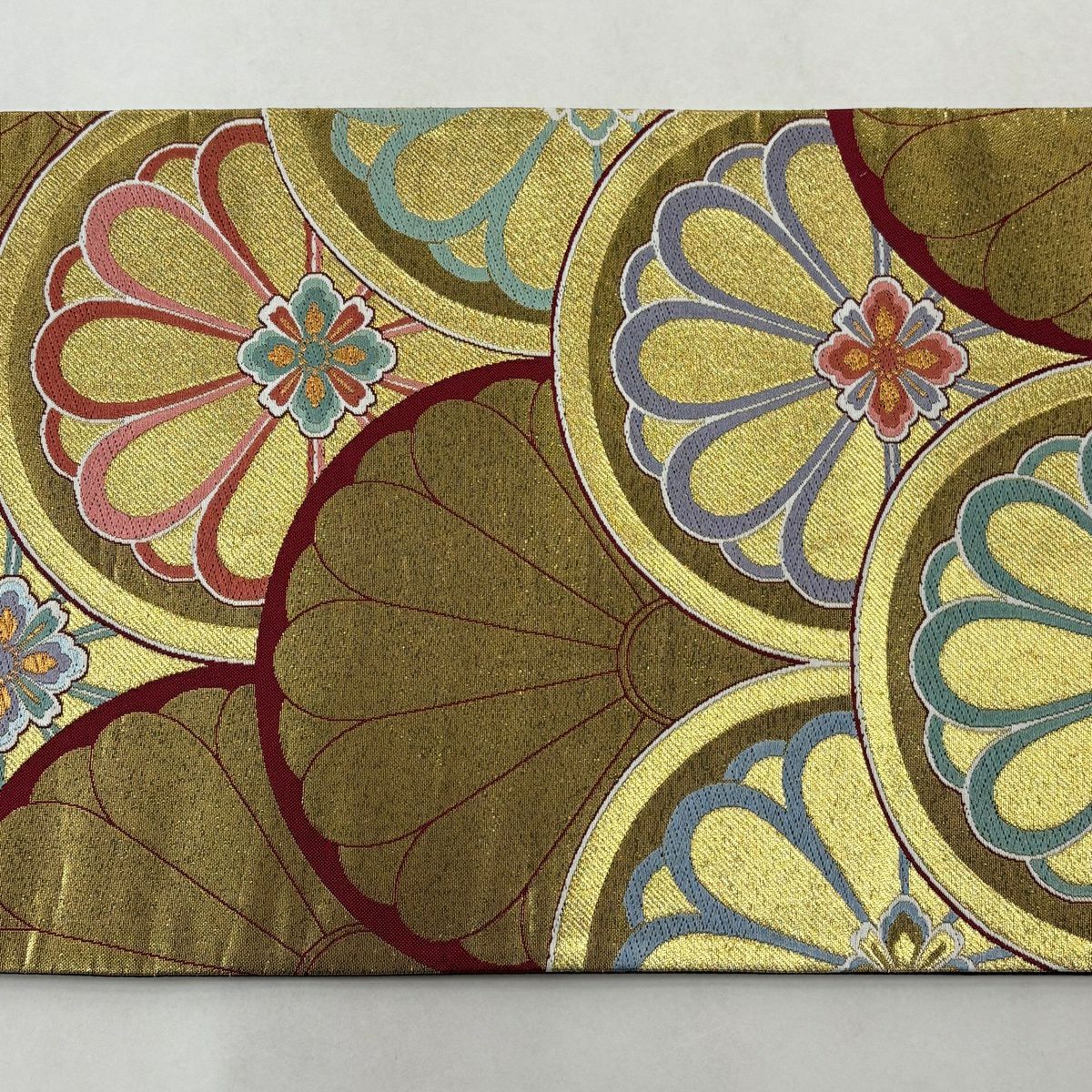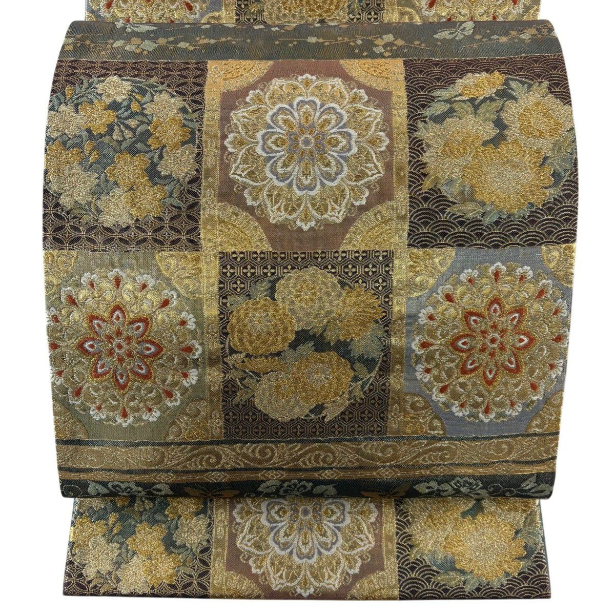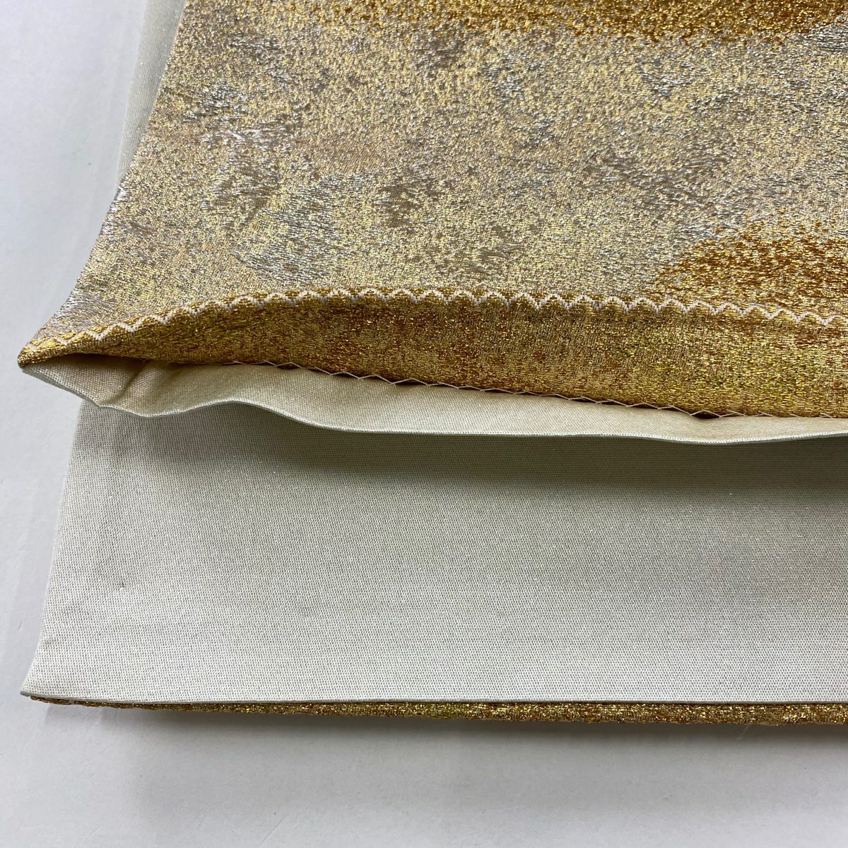 【美品】 袋帯 秀品 華文 花丸文 金糸 箔 金茶 六通 正絹