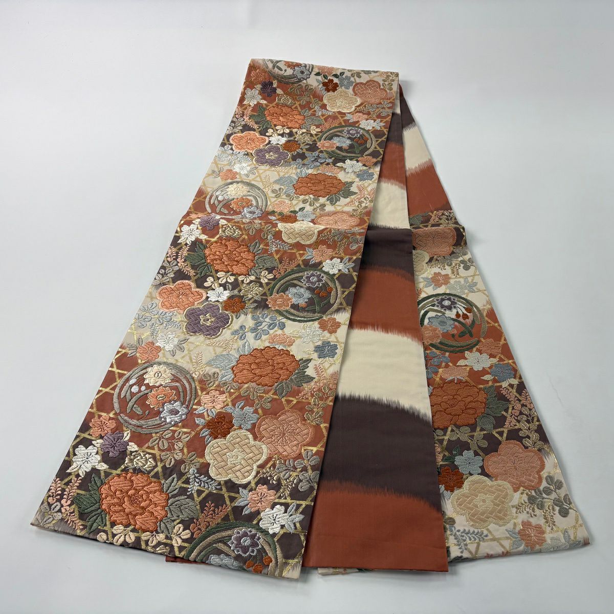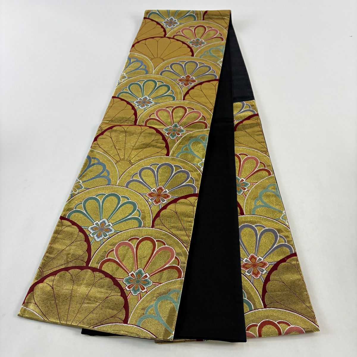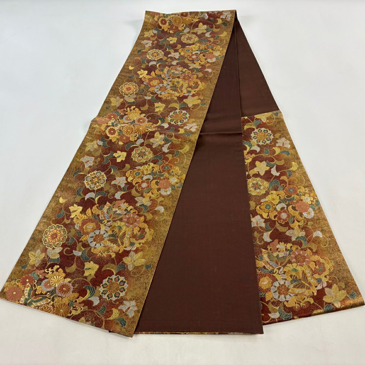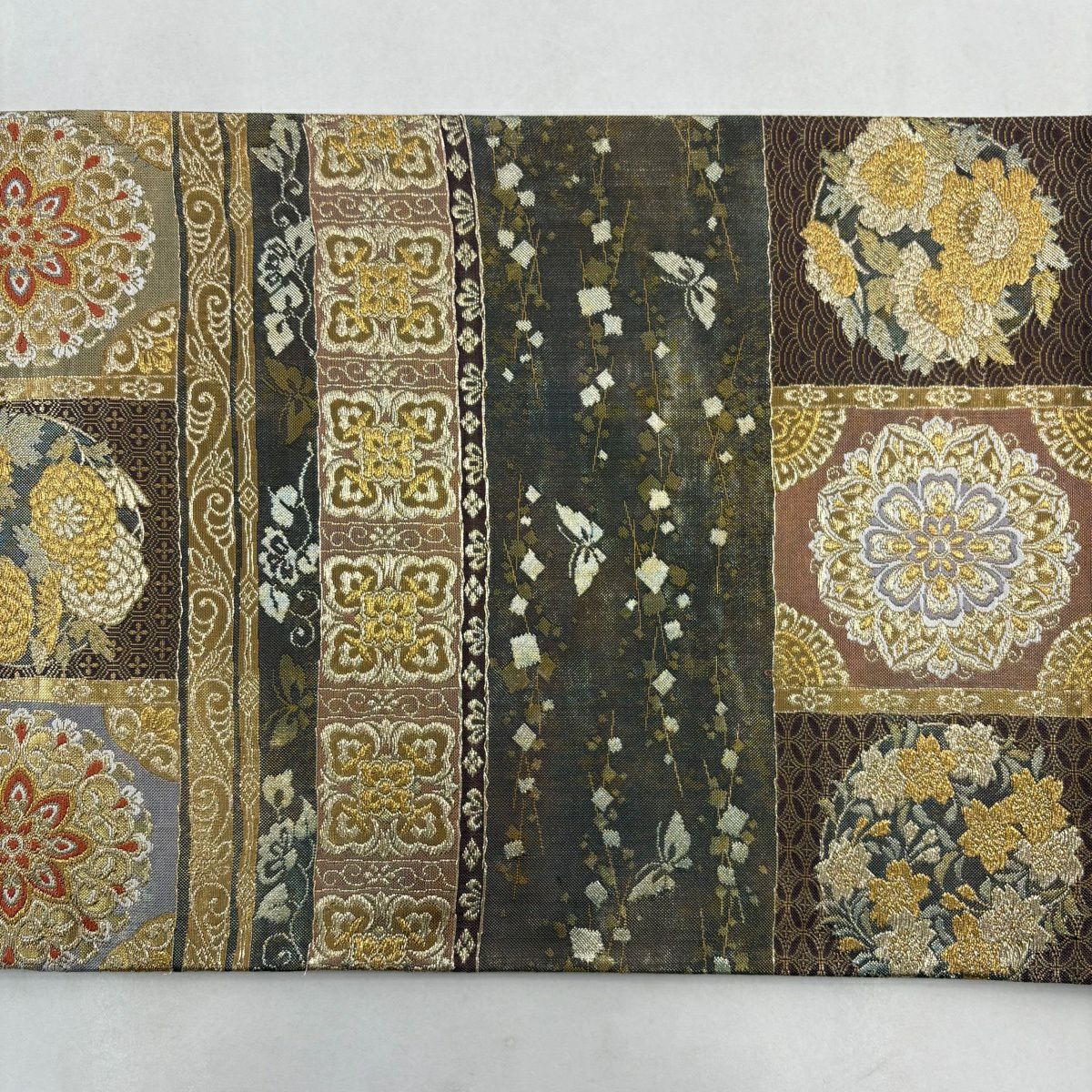 【美品】 袋帯 秀品 華文 花丸文 金糸 箔 金茶 六通 正絹
