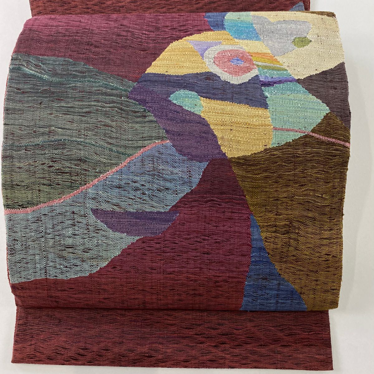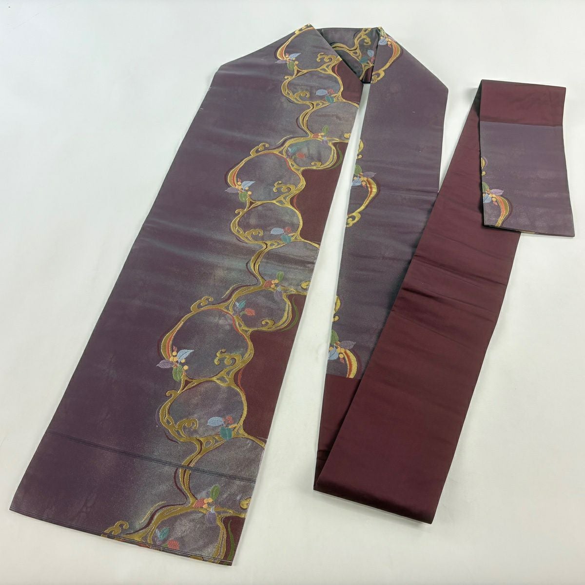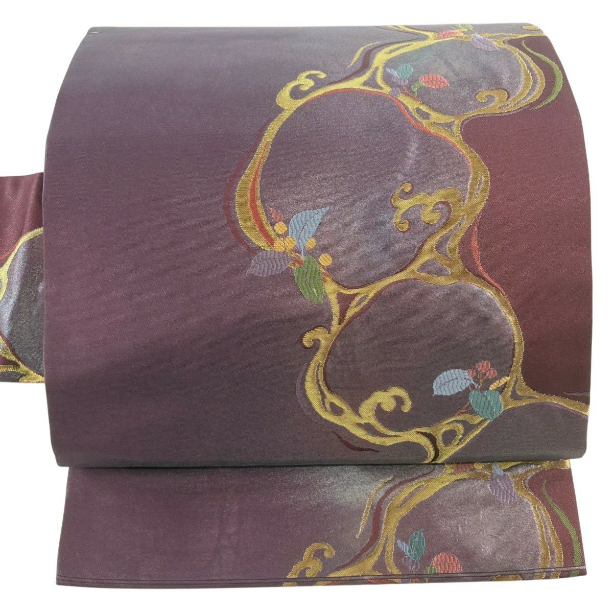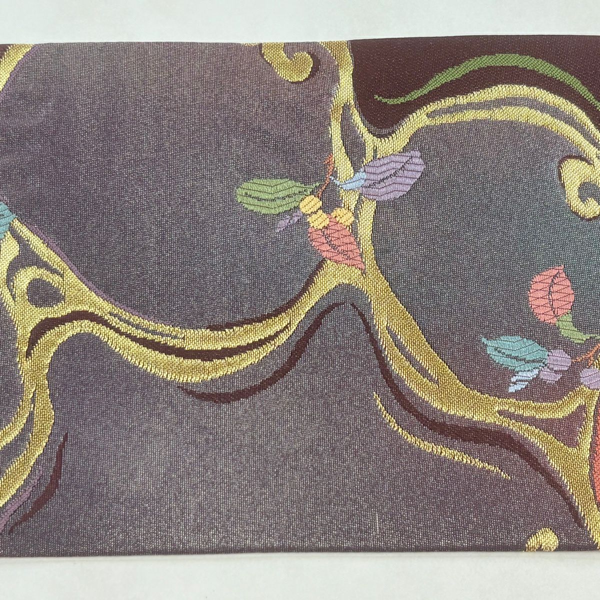 名古屋帯 秀品 関西仕立て 葉と実 波頭 唐織 箔 紫 正絹