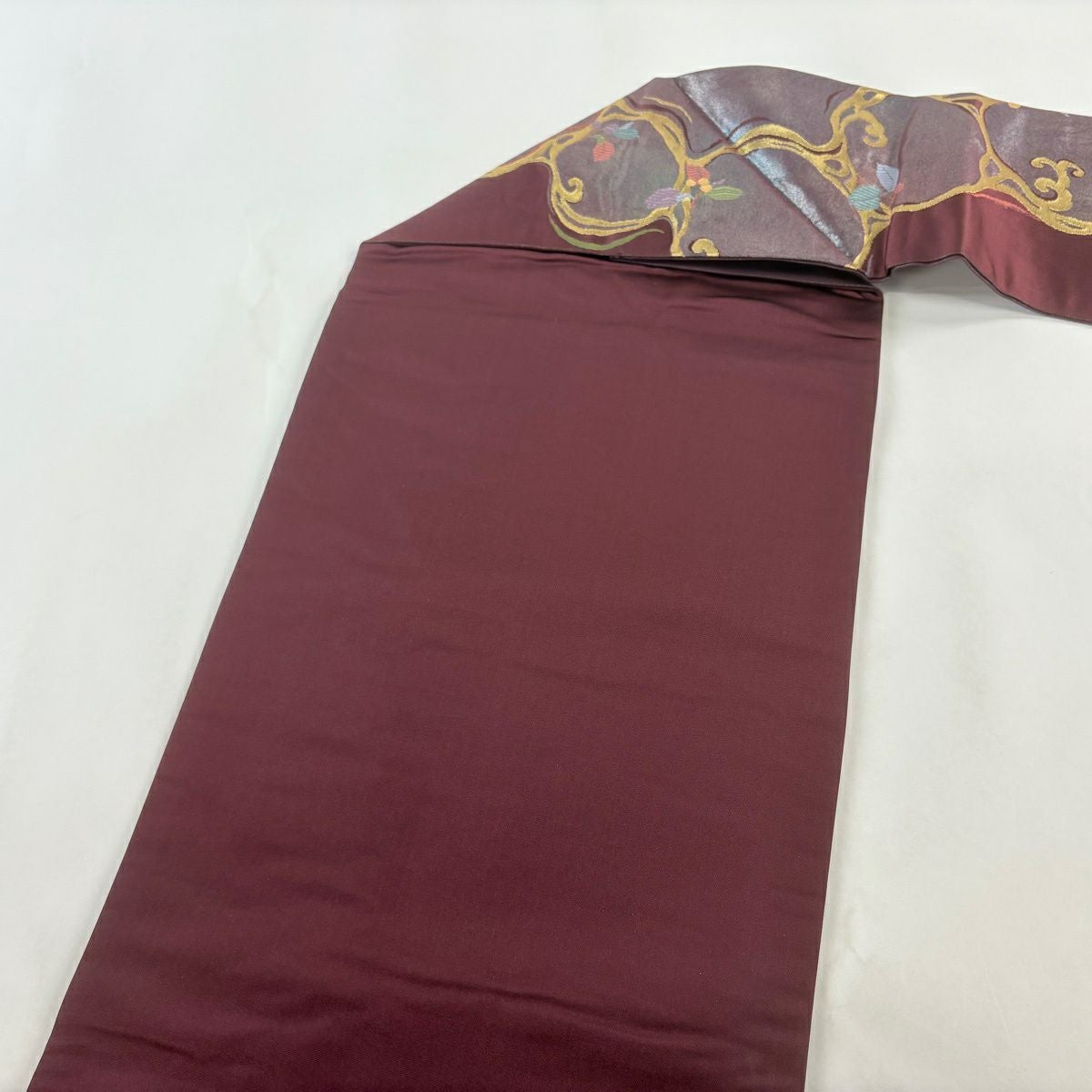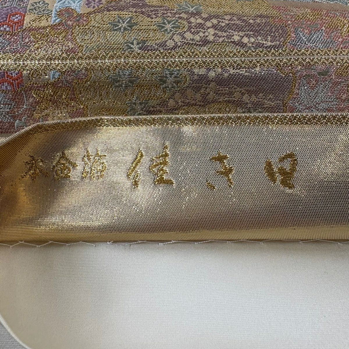 【美品】 袋帯 秀品 落款あり 花唐草 箔 金色 全通 正絹
