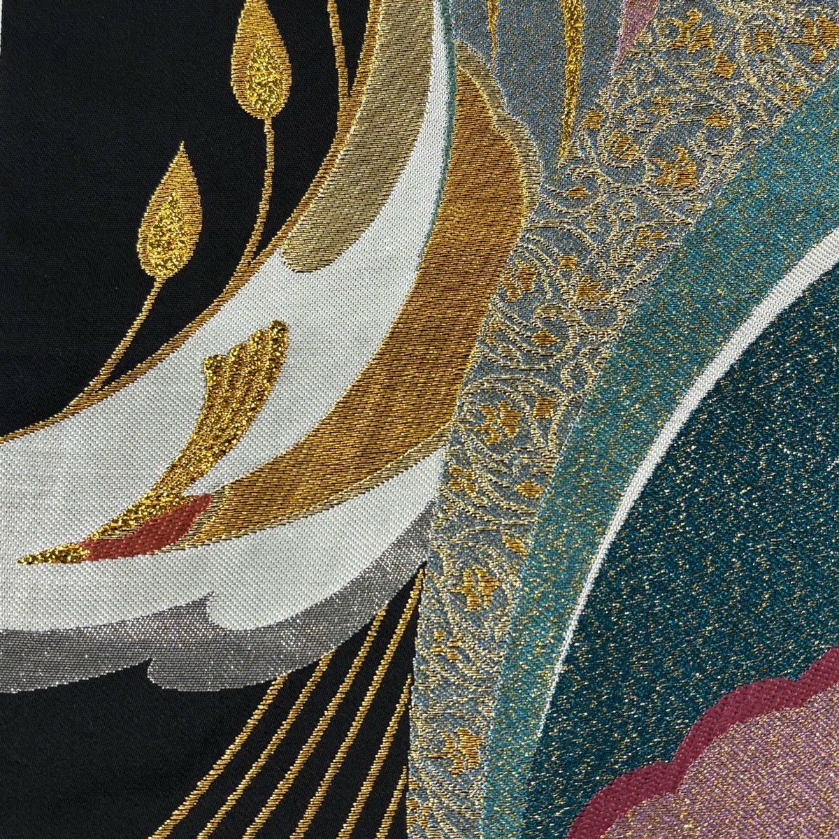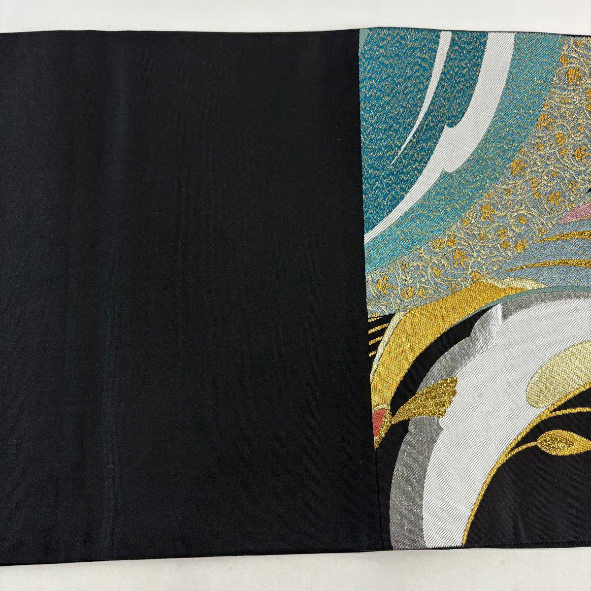 【美品】 袋帯 秀品 鳥 花唐草 金銀糸 箔 黒 六通 正絹
